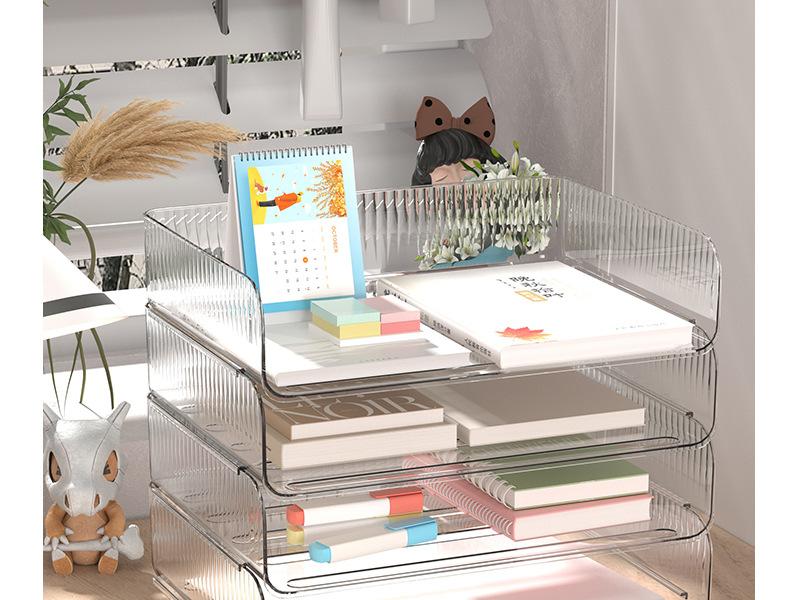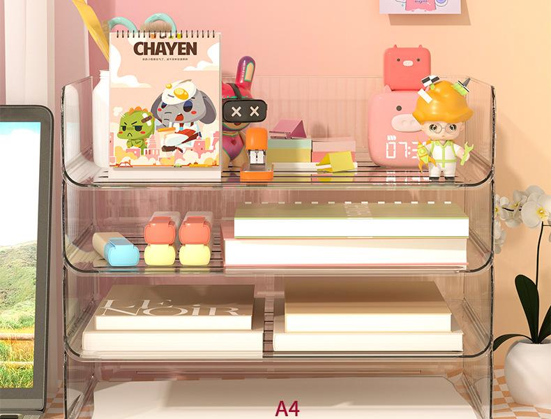 Escritorio oficina multicapa apilable acrílico transparente archivo papelería A4 papel acabado caja estación almacenamiento misceláneas
