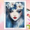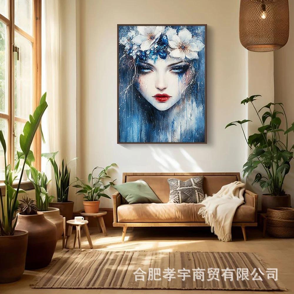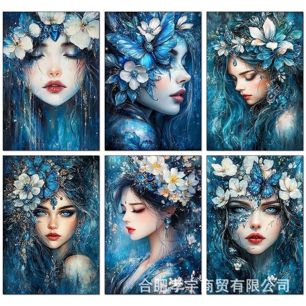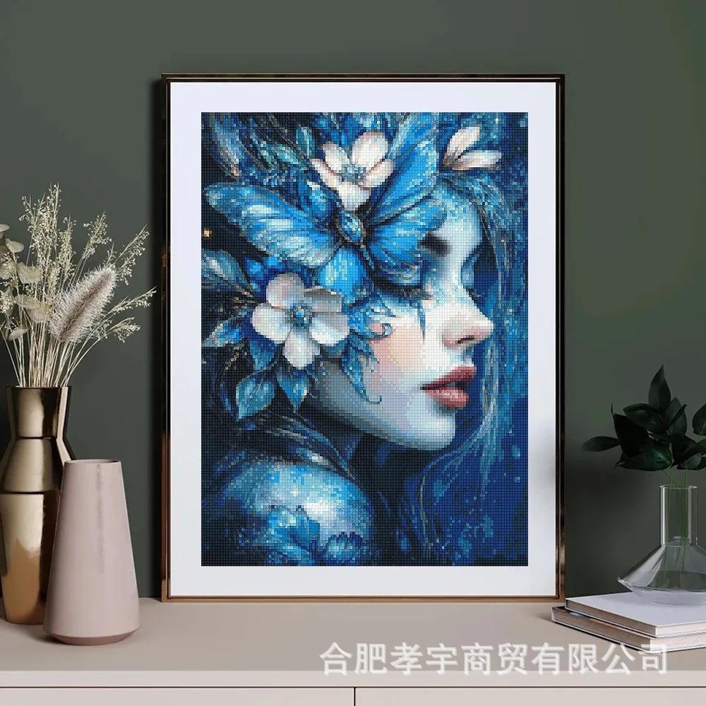 Exclusivo Transfronterizo Hecho a Mano Pegatinas de Diamantes DIY Nueva Pintura Decorativa para el Hogar de Diamante Completo Niña de las Flores Azules