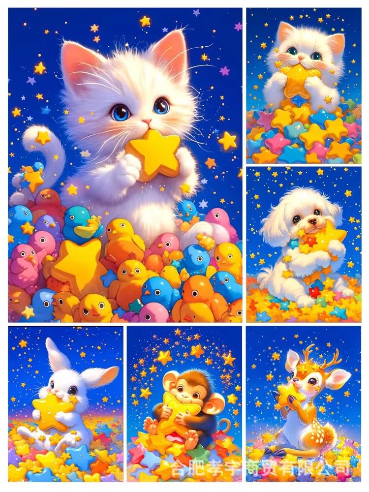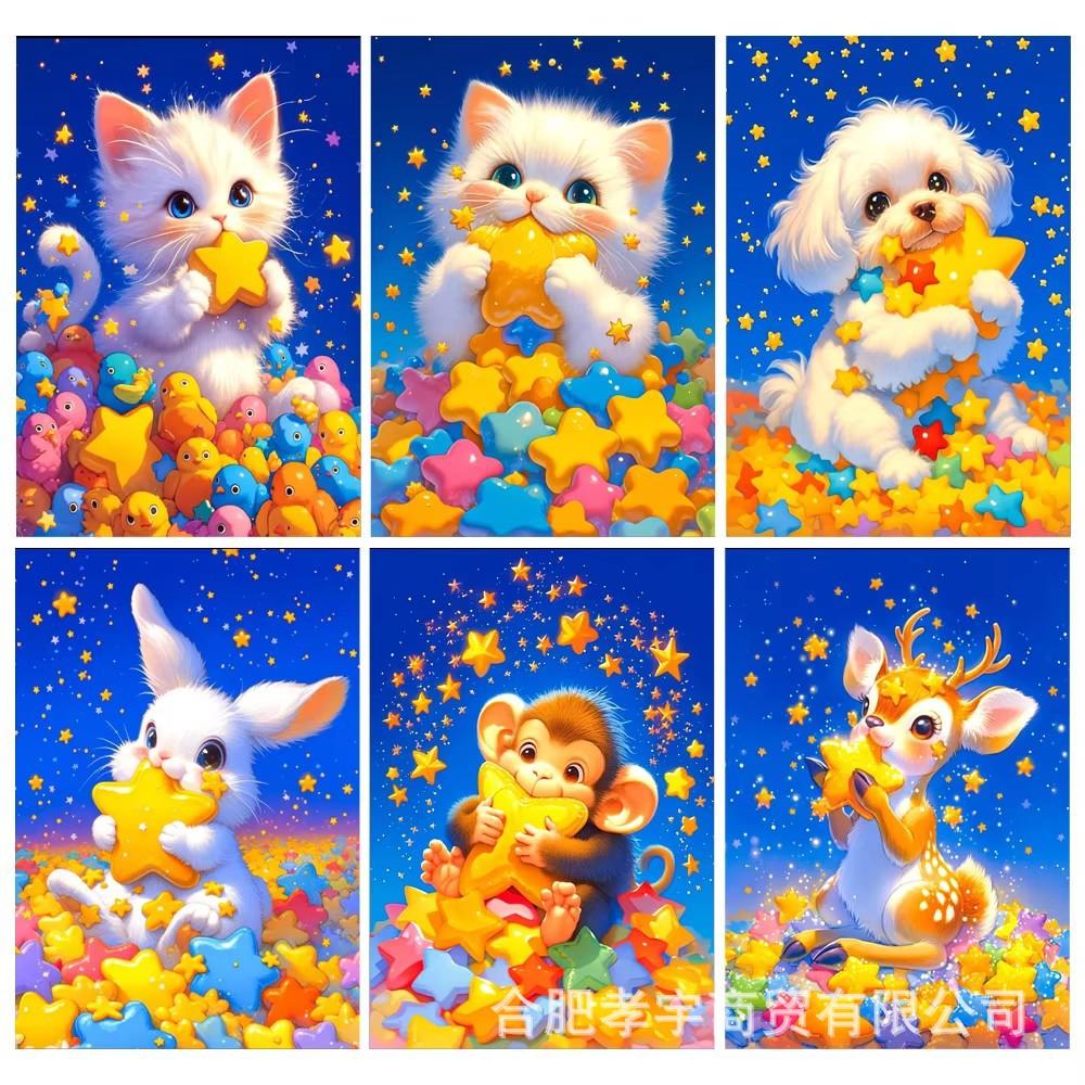 Set de Pintura de Diamantes 5D DIY de Venta Caliente Transfronteriza Lindo Animal Estrella Diamante Completo Punto de Cruz Pintura de Diamantes Hecha a Mano