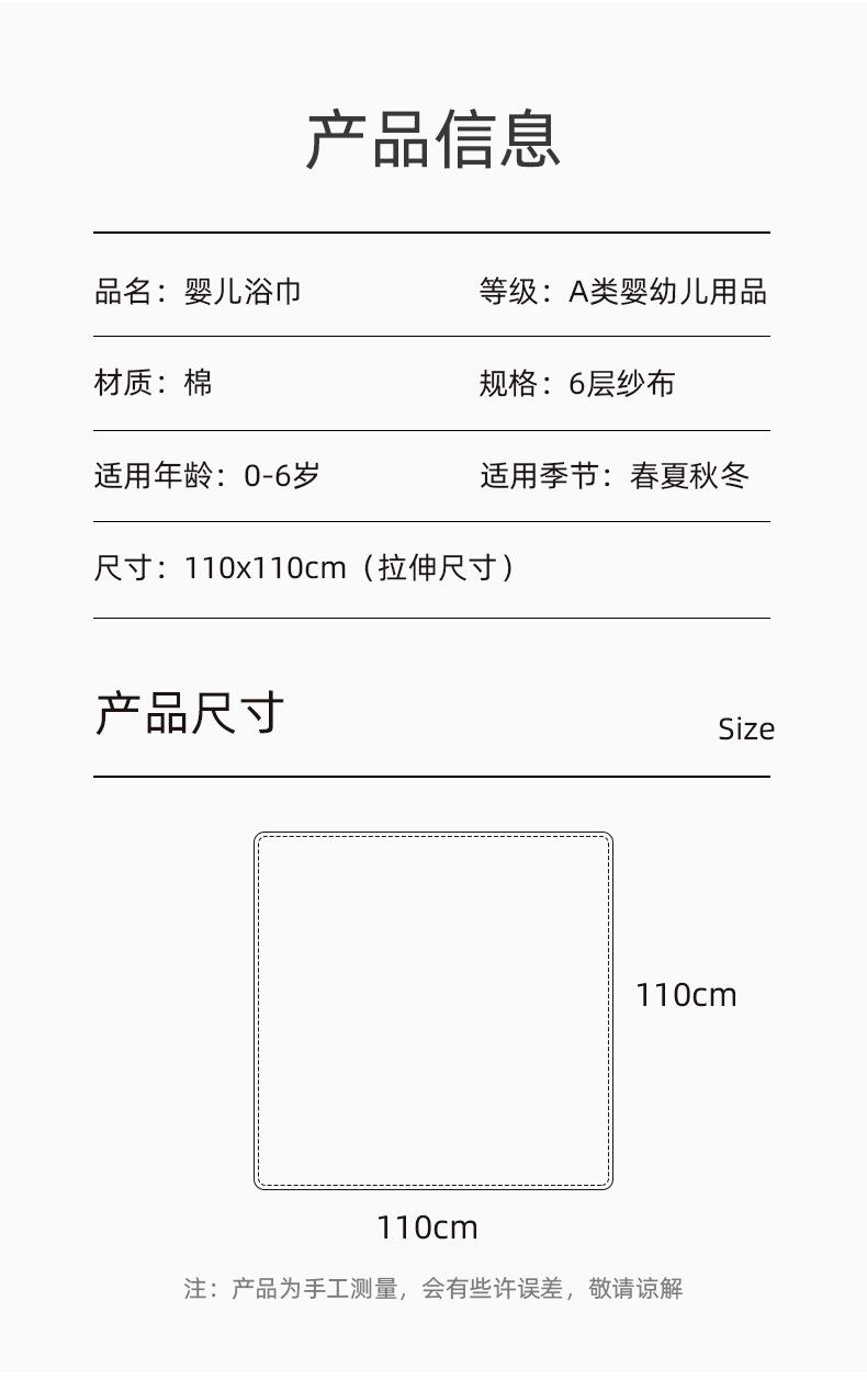 Toalla de Baño de Gasa para Recién Nacido 6 Capas