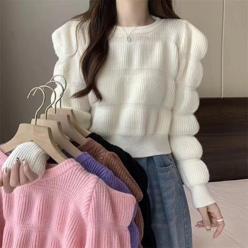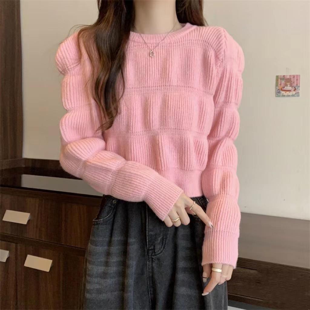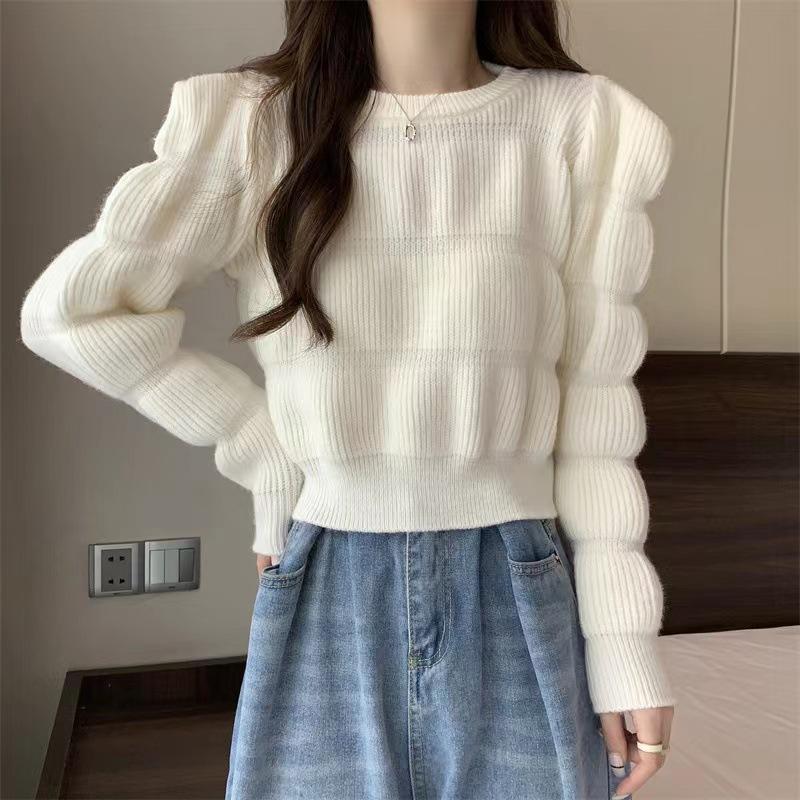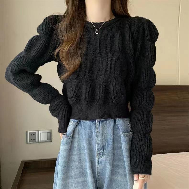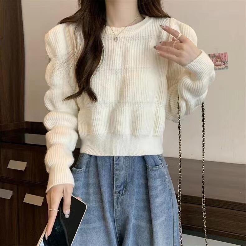 Suéter de Moda Coreana 2025 Otoño Nuevo Ropa de Mujer Temperamento Ajustado Más Fácil de Combinar Top Corto Tejido de Color Sólido
