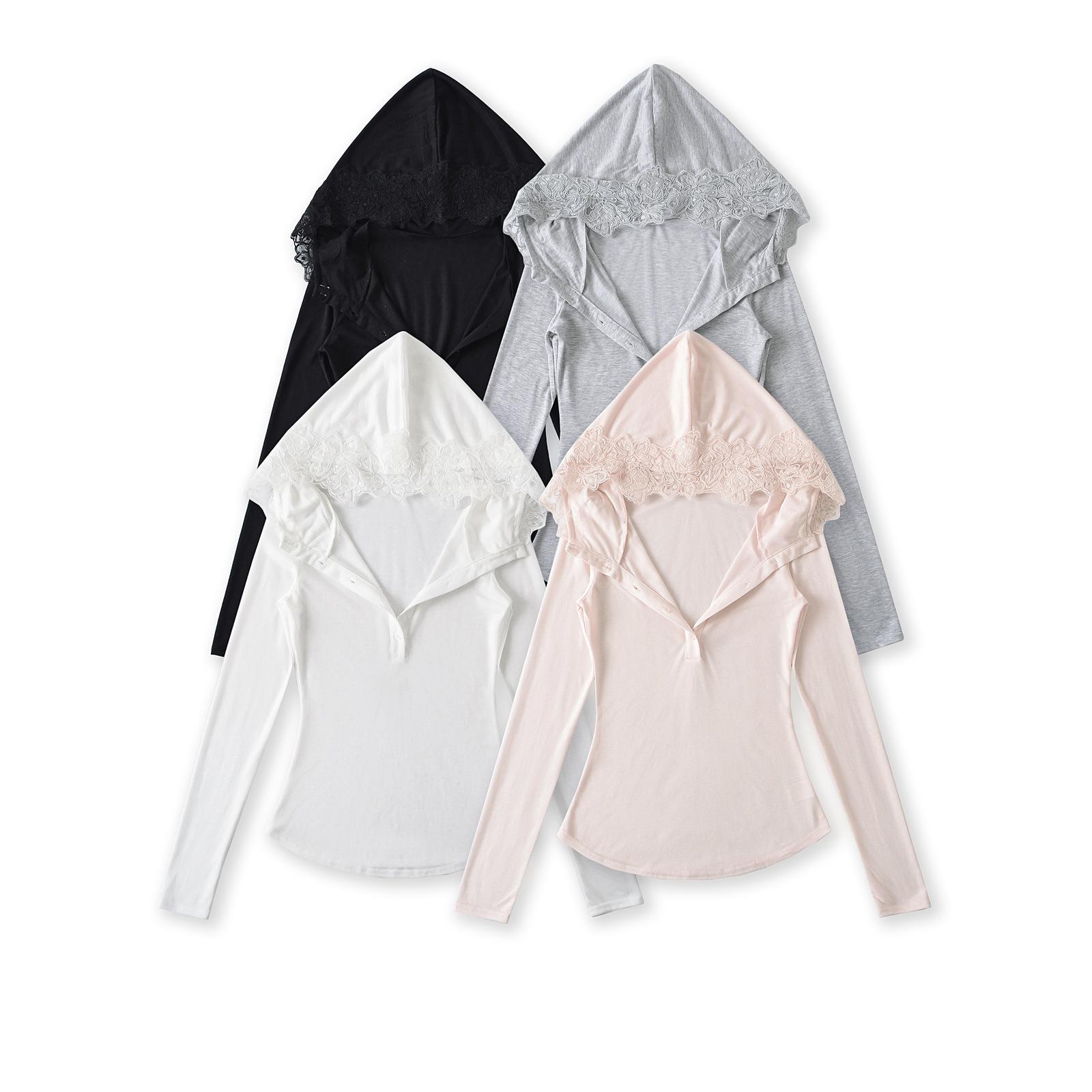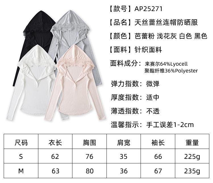 2025 Nuevos Tops para Mujer, Elegantes y Favorecedores de la Figura, Tencel Encaje con Capucha Protector Solar, Versátiles y Puro Deseo