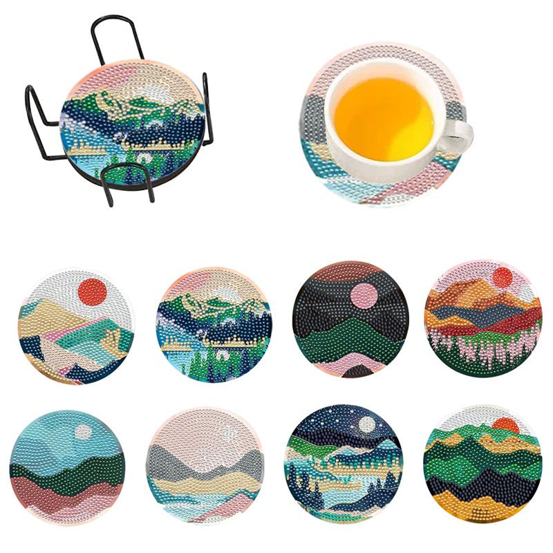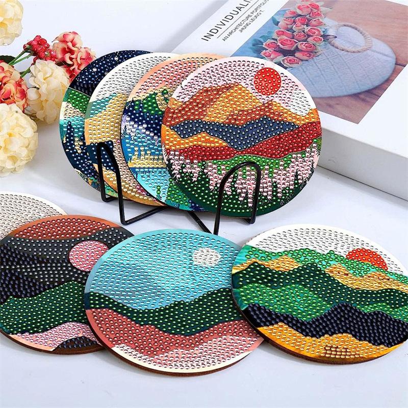 Posavasos de Pintura de Diamantes Transfronterizo Diamante Completo Paisaje Amazónico Tapete Aislante del Calor Mantel de Mesa de Comedor DIY Niños Redondo Estante Autotraído