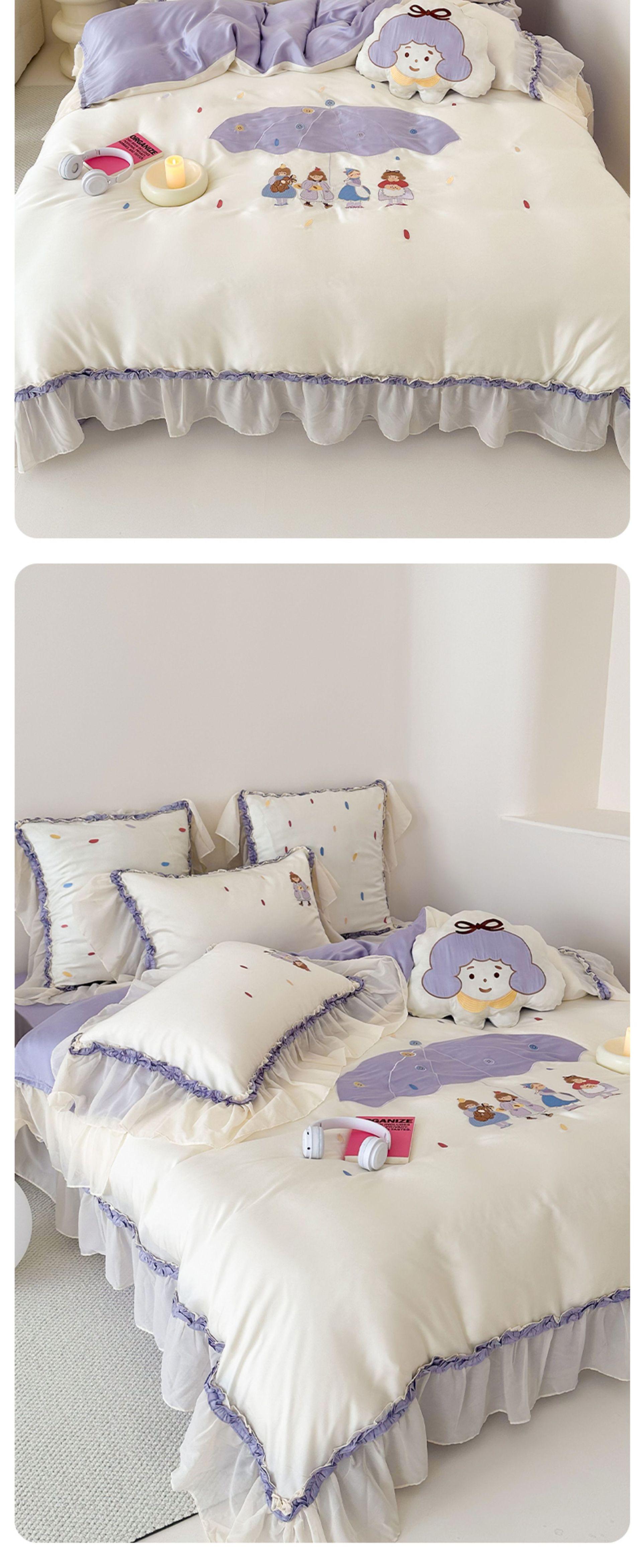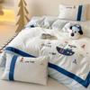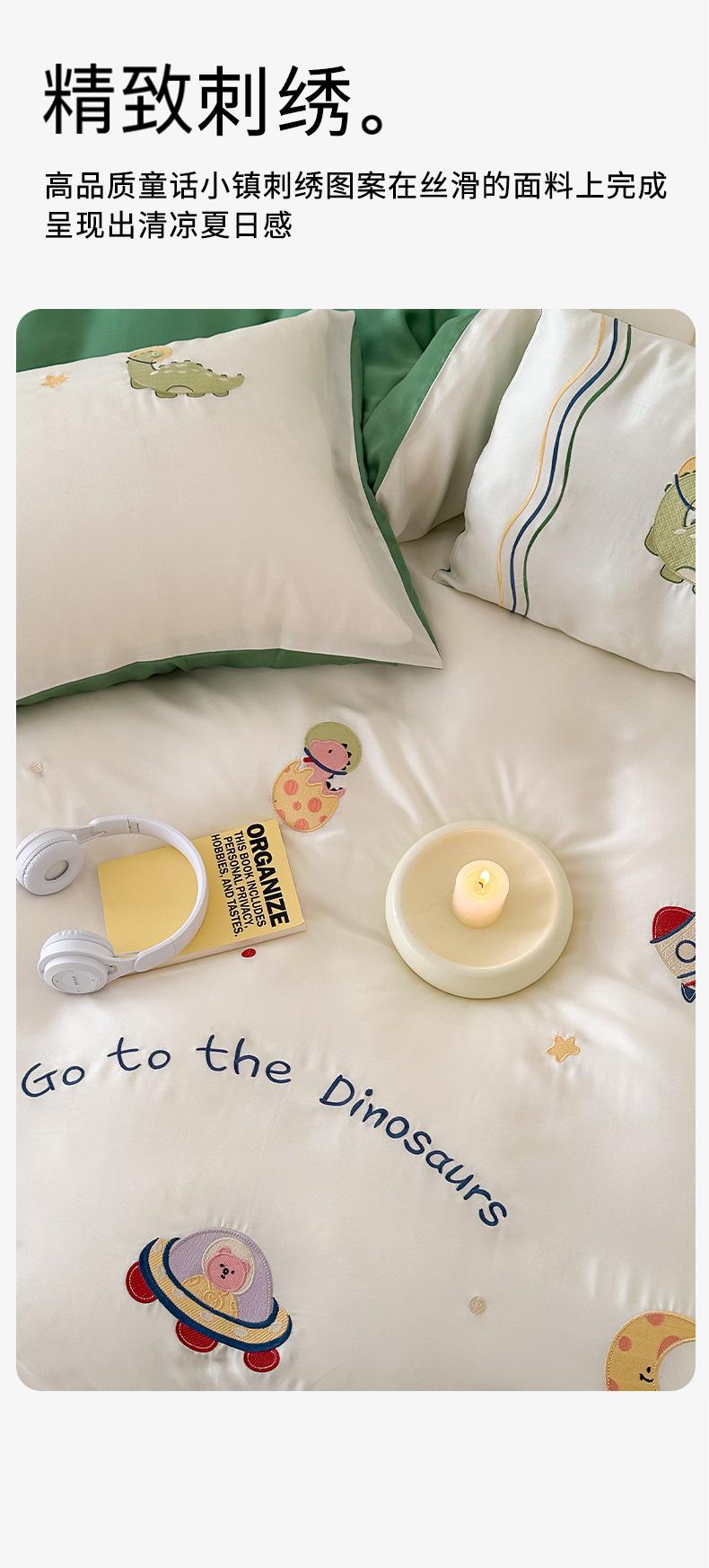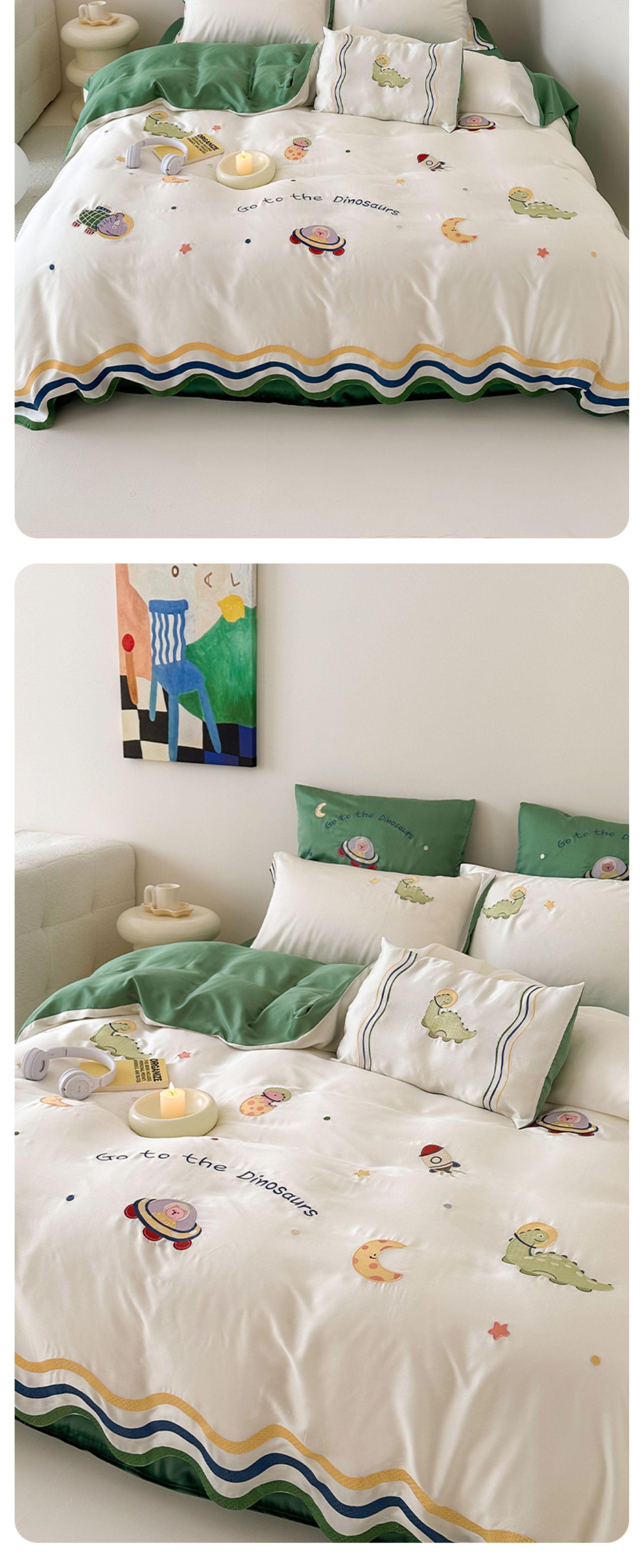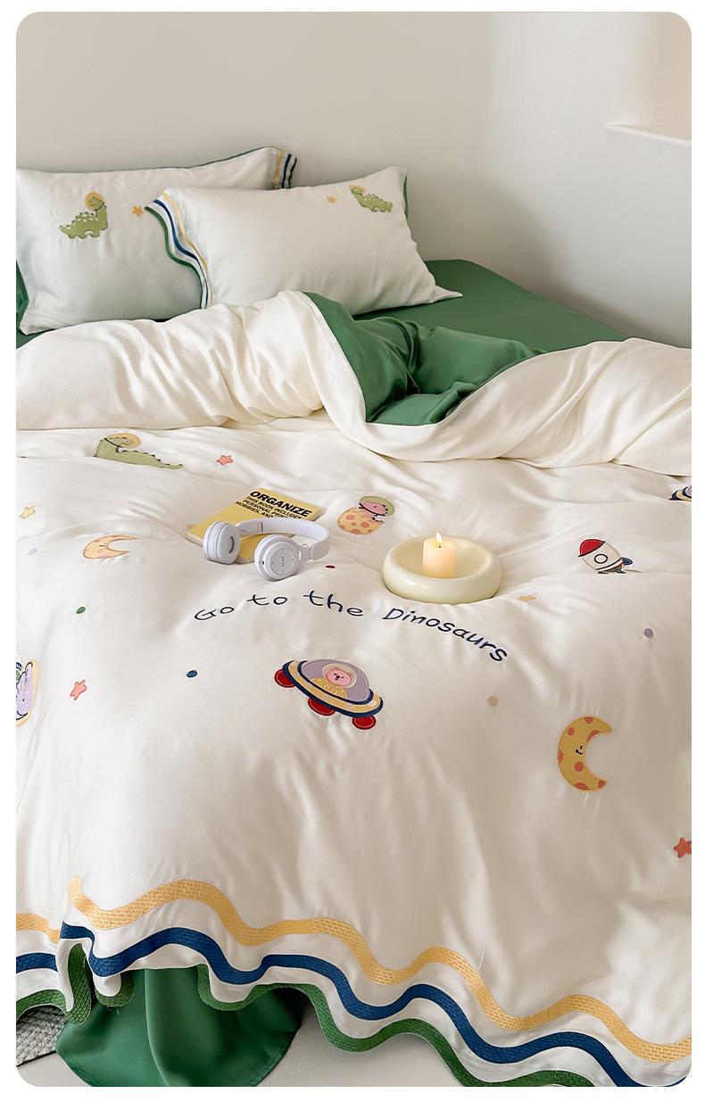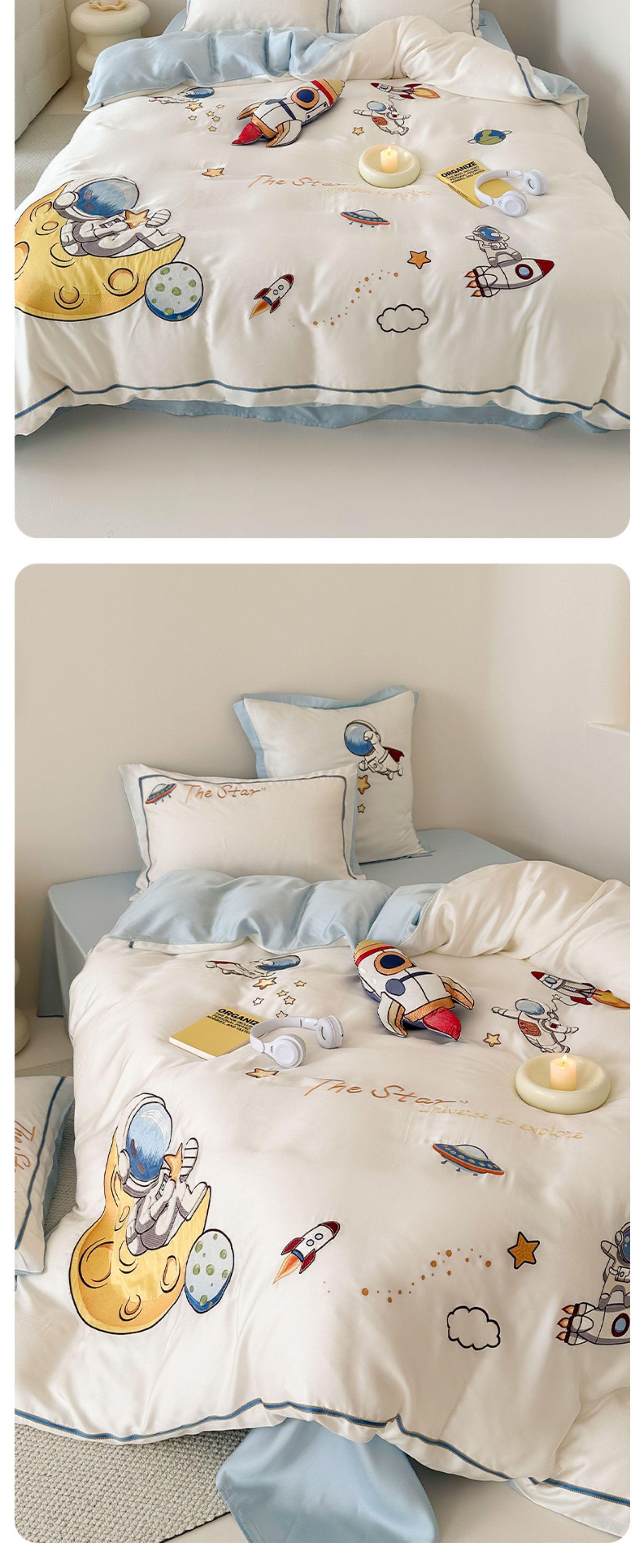 Juego de cuatro piezas de Tencel de doble cara de dibujos animados Primavera y Verano 60S Lindo Bordado Fresco Ropa de Cama Cubre Edredón Infantil 1.8