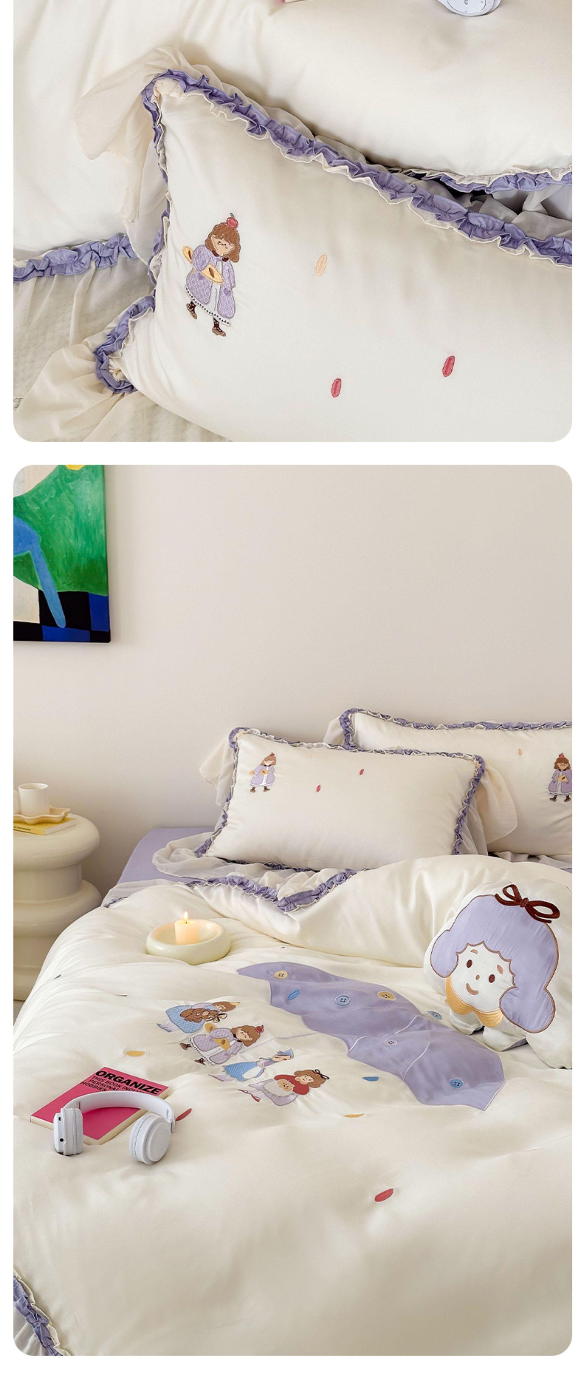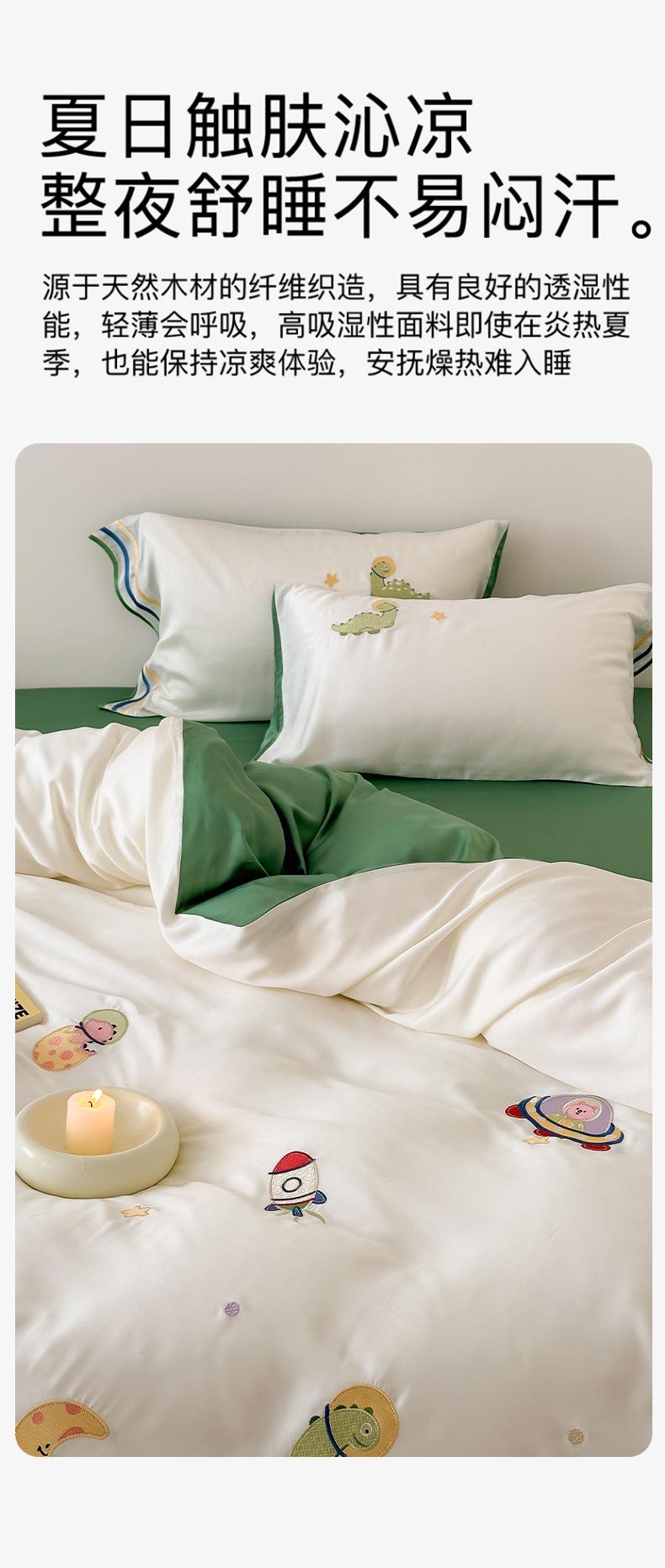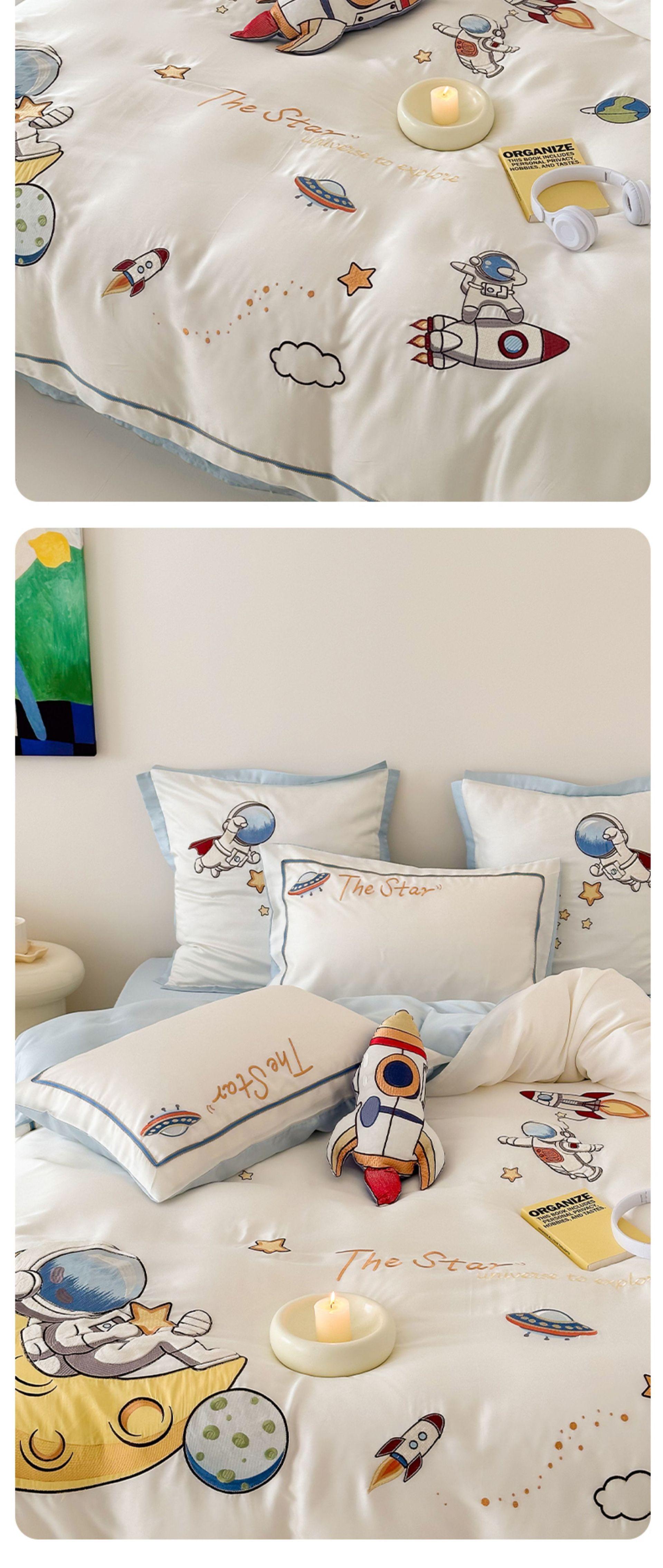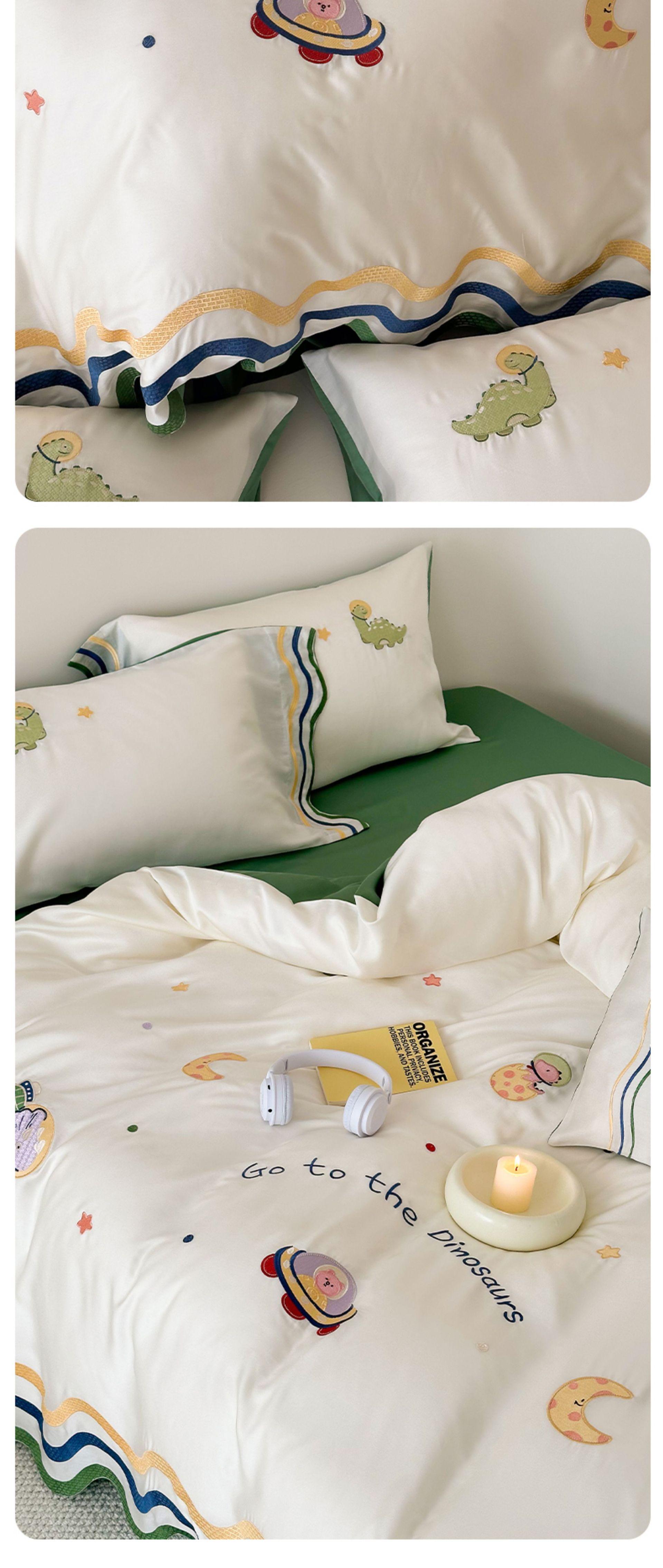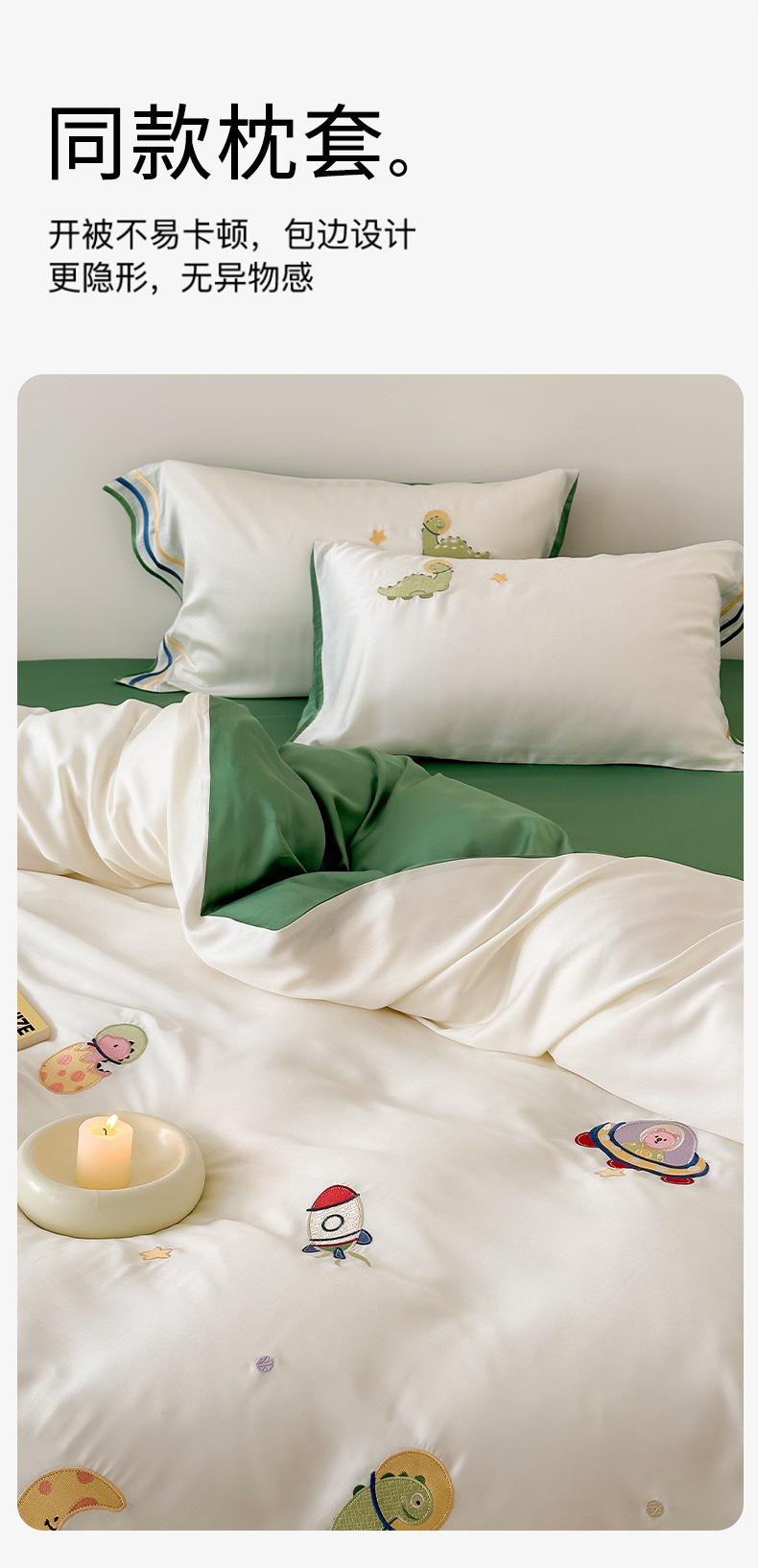 Juego de cuatro piezas de Tencel de doble cara de dibujos animados Primavera y Verano 60S Lindo Bordado Fresco Ropa de Cama Cubre Edredón Infantil 1.8