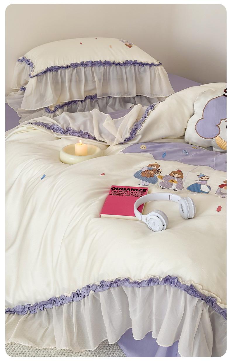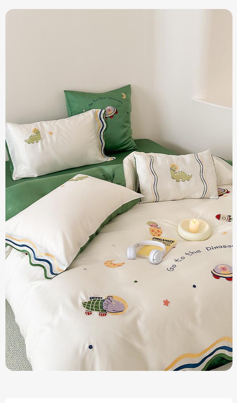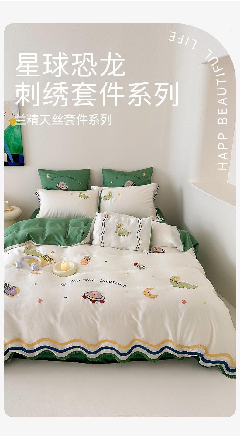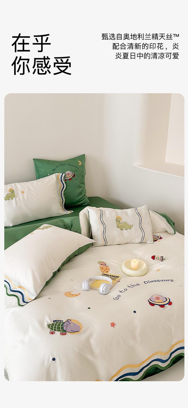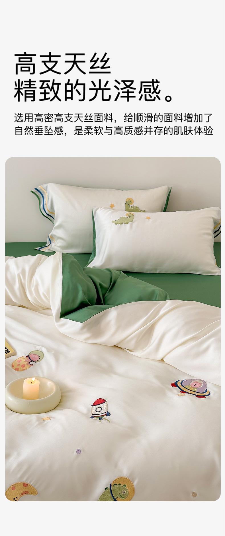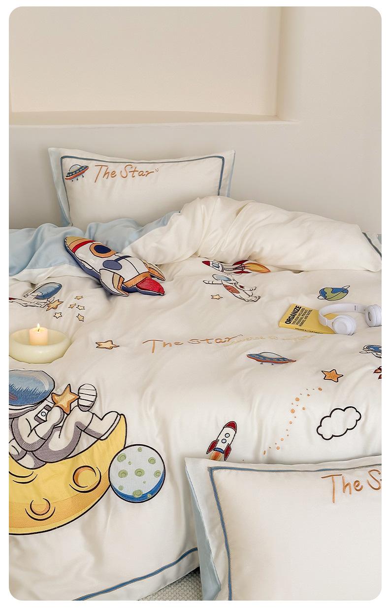 Juego de cuatro piezas de Tencel de doble cara de dibujos animados Primavera y Verano 60S Lindo Bordado Fresco Ropa de Cama Cubre Edredón Infantil 1.8