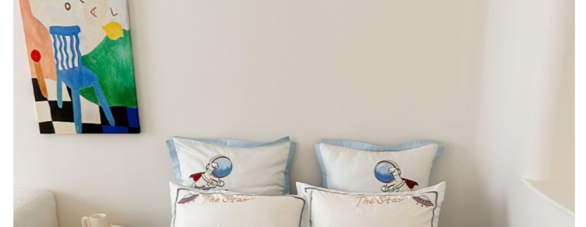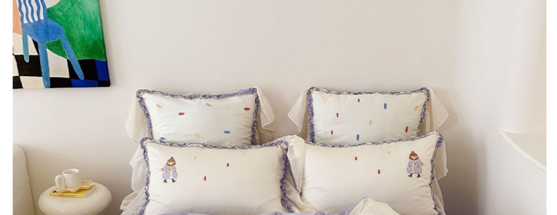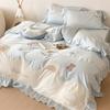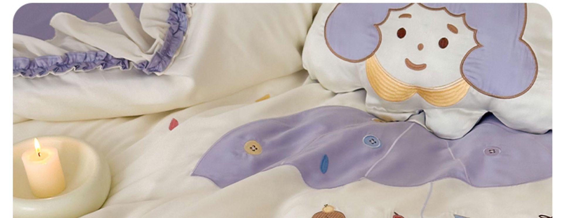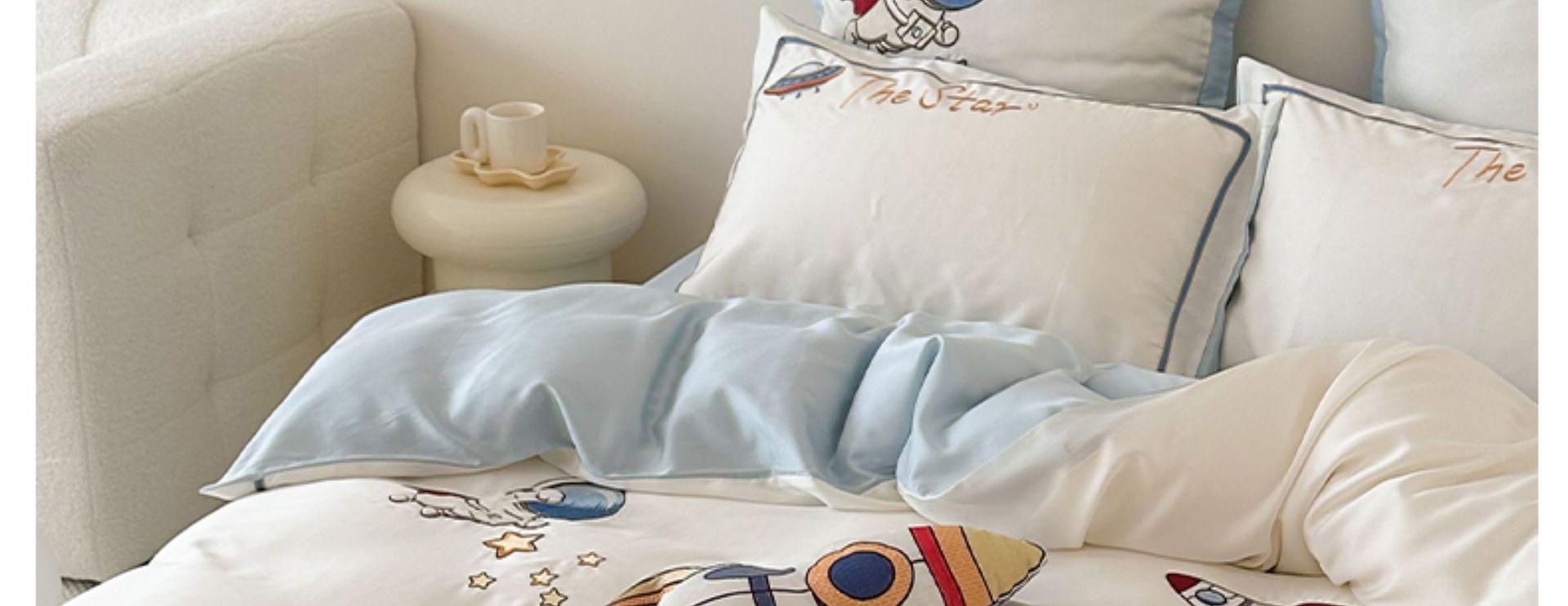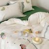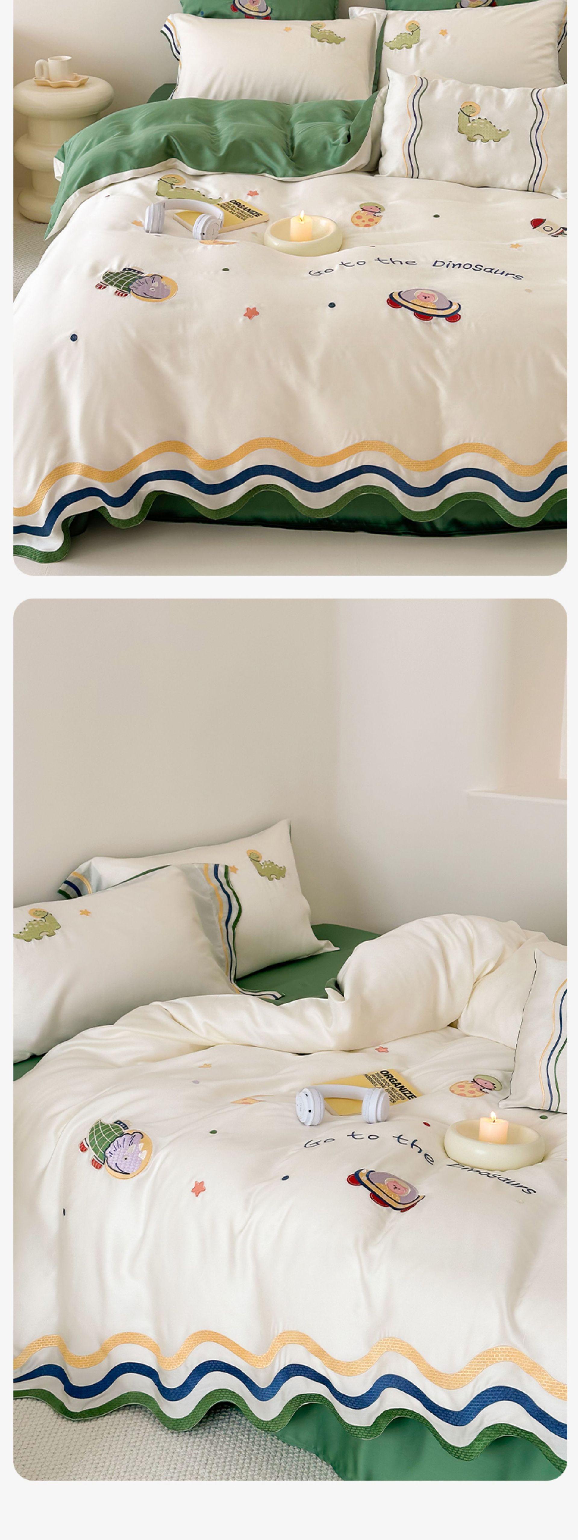 Juego de cuatro piezas de Tencel de doble cara de dibujos animados Primavera y Verano 60S Lindo Bordado Fresco Ropa de Cama Cubre Edredón Infantil 1.8