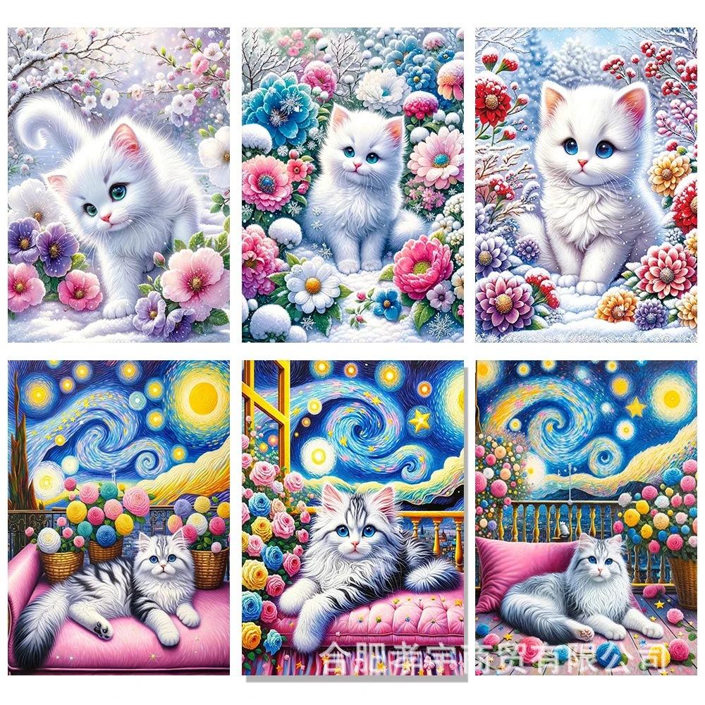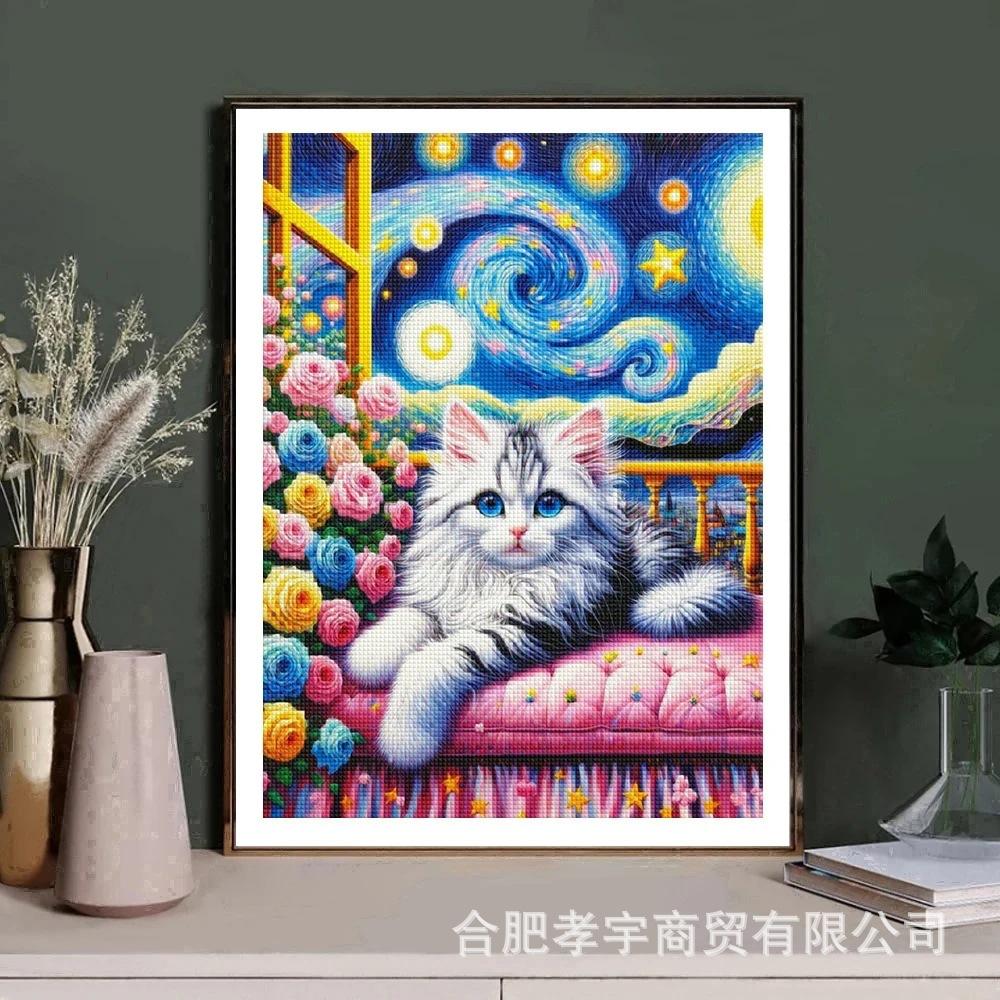 Pintura de Diamantes 5D DIY Animal de Dibujos Animados Cielo Estrellado Gato Diamante Cuadrado/Redondo Completo Bordado de Diamantes Hecho a Mano Decoración Mosaico