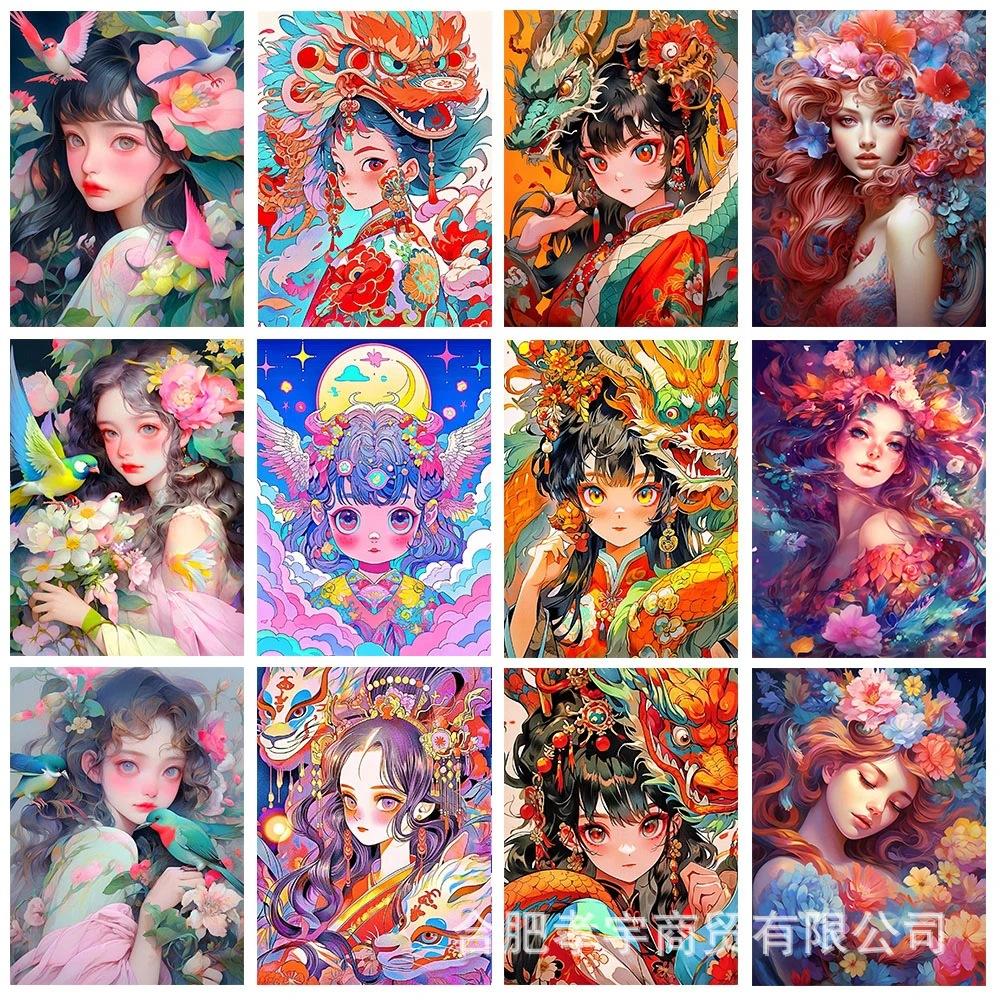 Pintura de Diamantes DIY Estilo Cómic Niña Japonesa Pintura de Diamantes 5D Diamante Cuadrado/Redondo Completo Hecho a Mano Bordado de Diamantes Mosaico