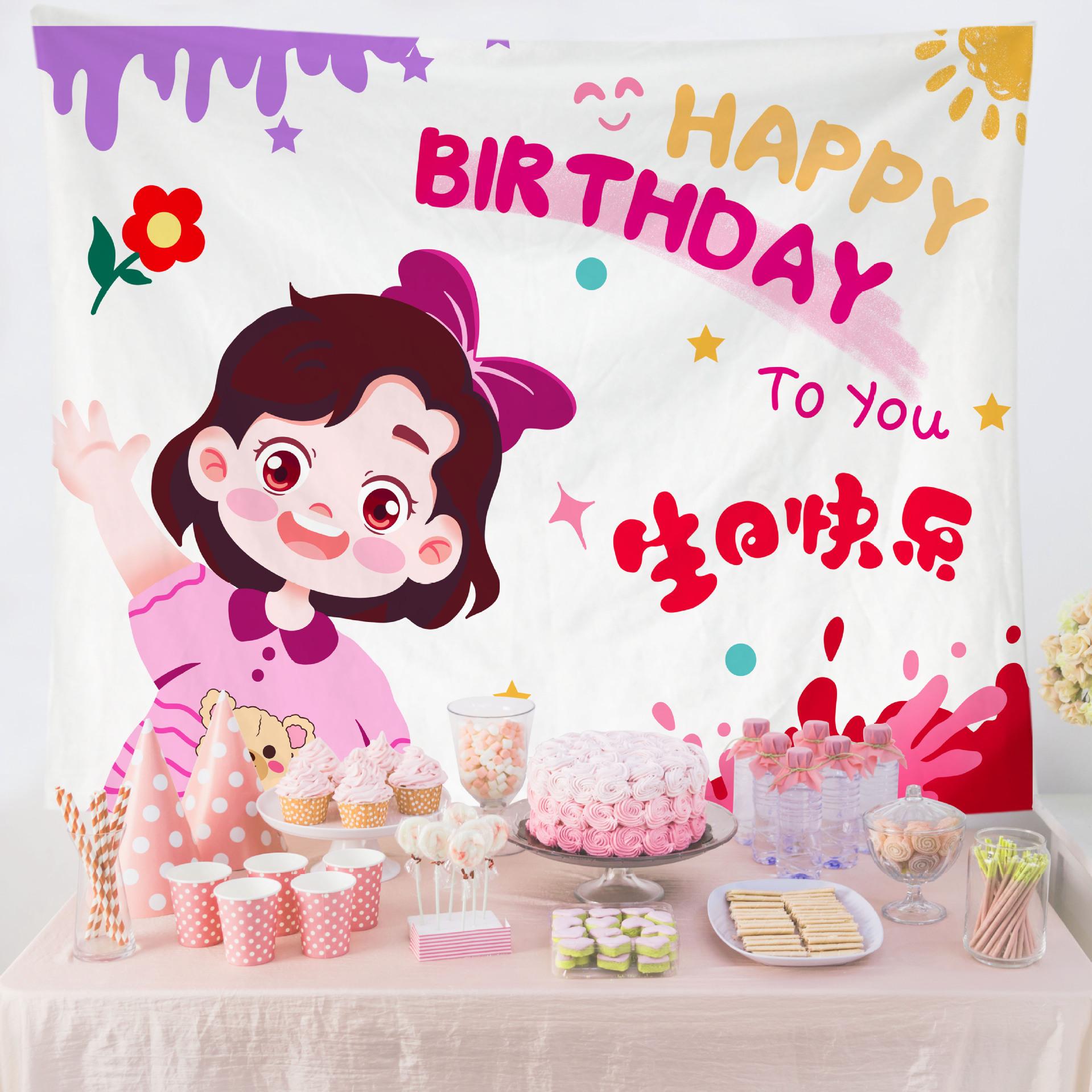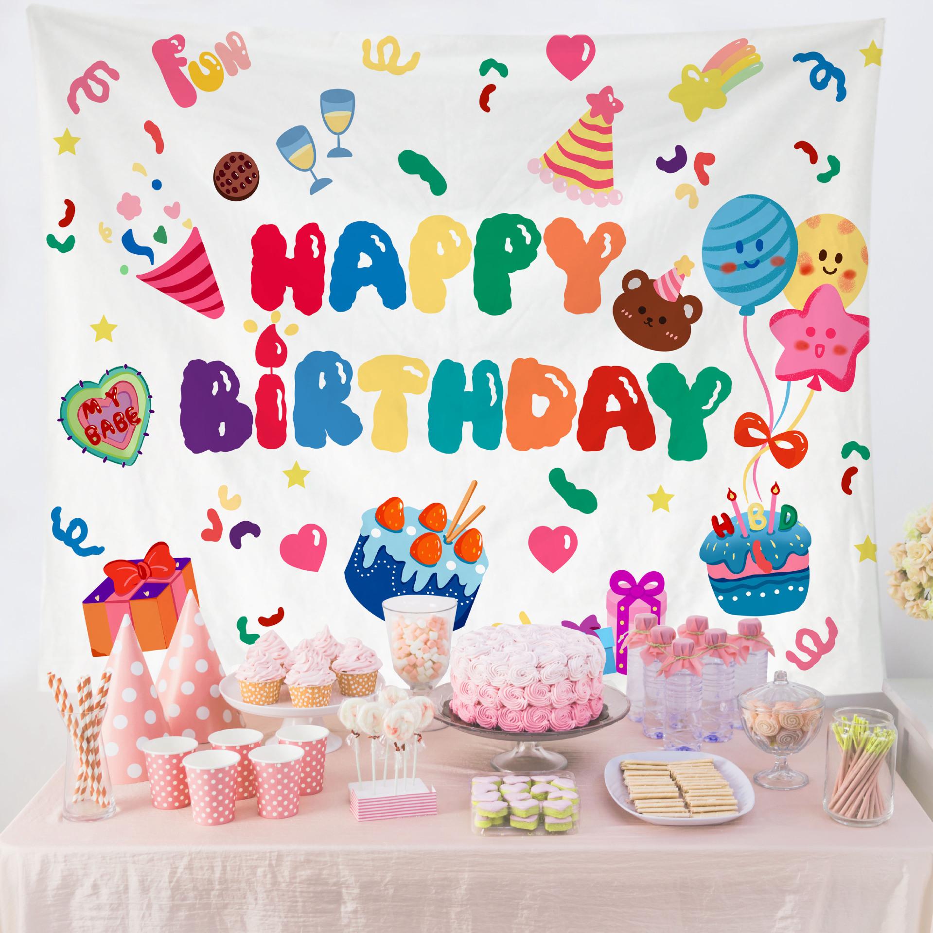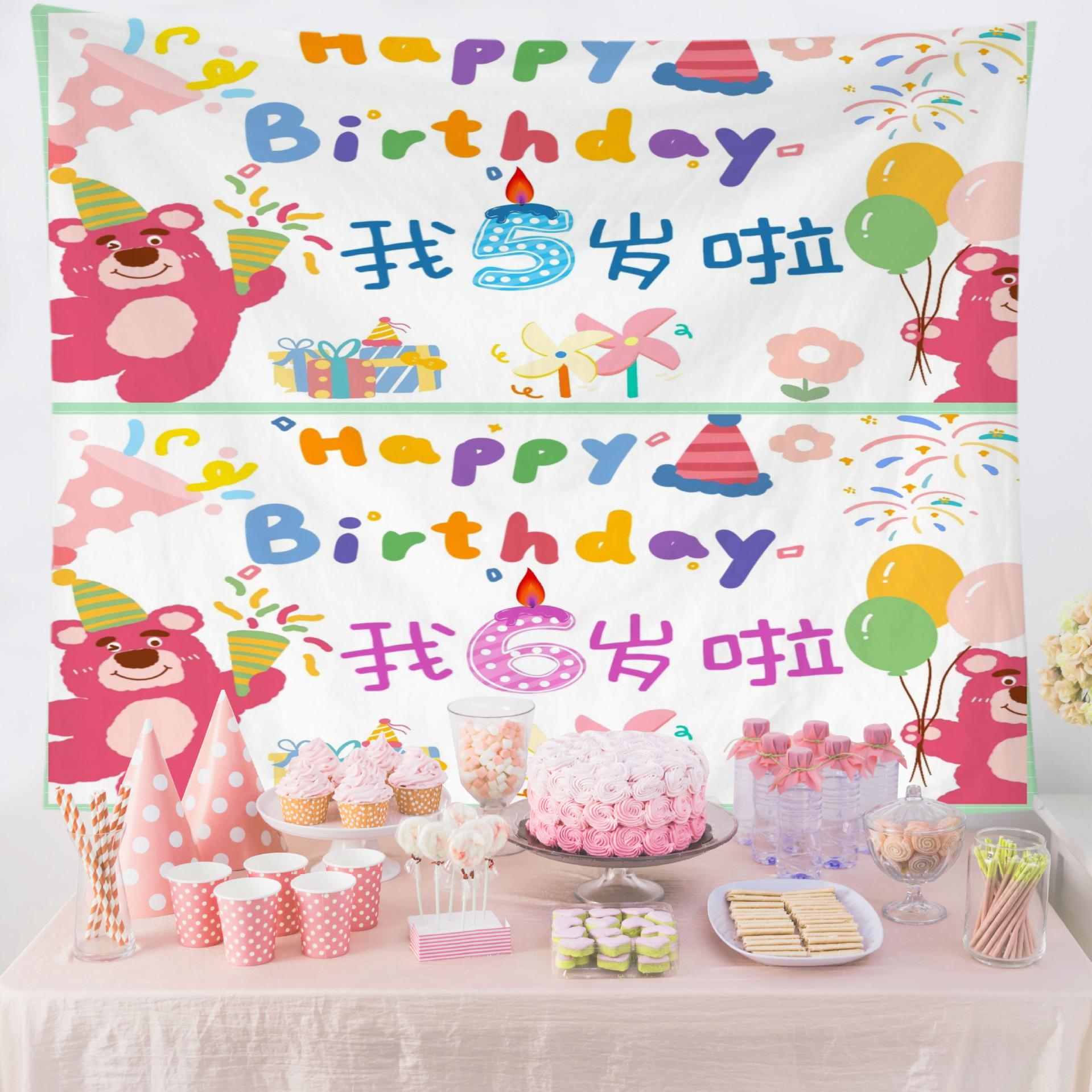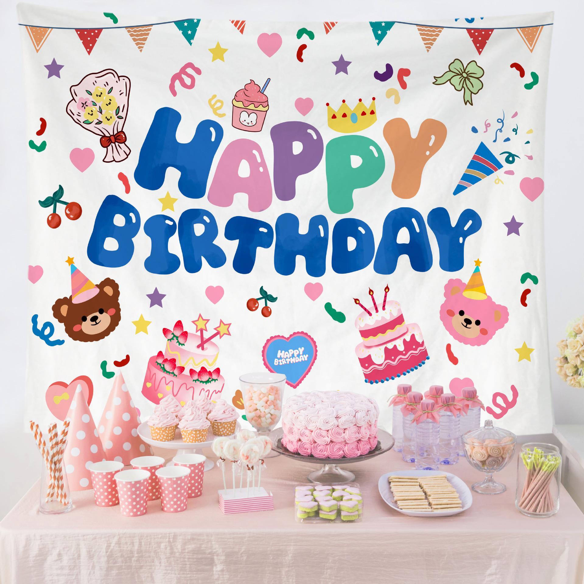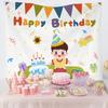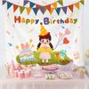Tela de Fondo de Feliz Cumpleaños Nueva Decoración de Fiesta Infantil Tela Colgante Dibujos Animados Lindo Niño Niña Cumpleaños Tela de Pared