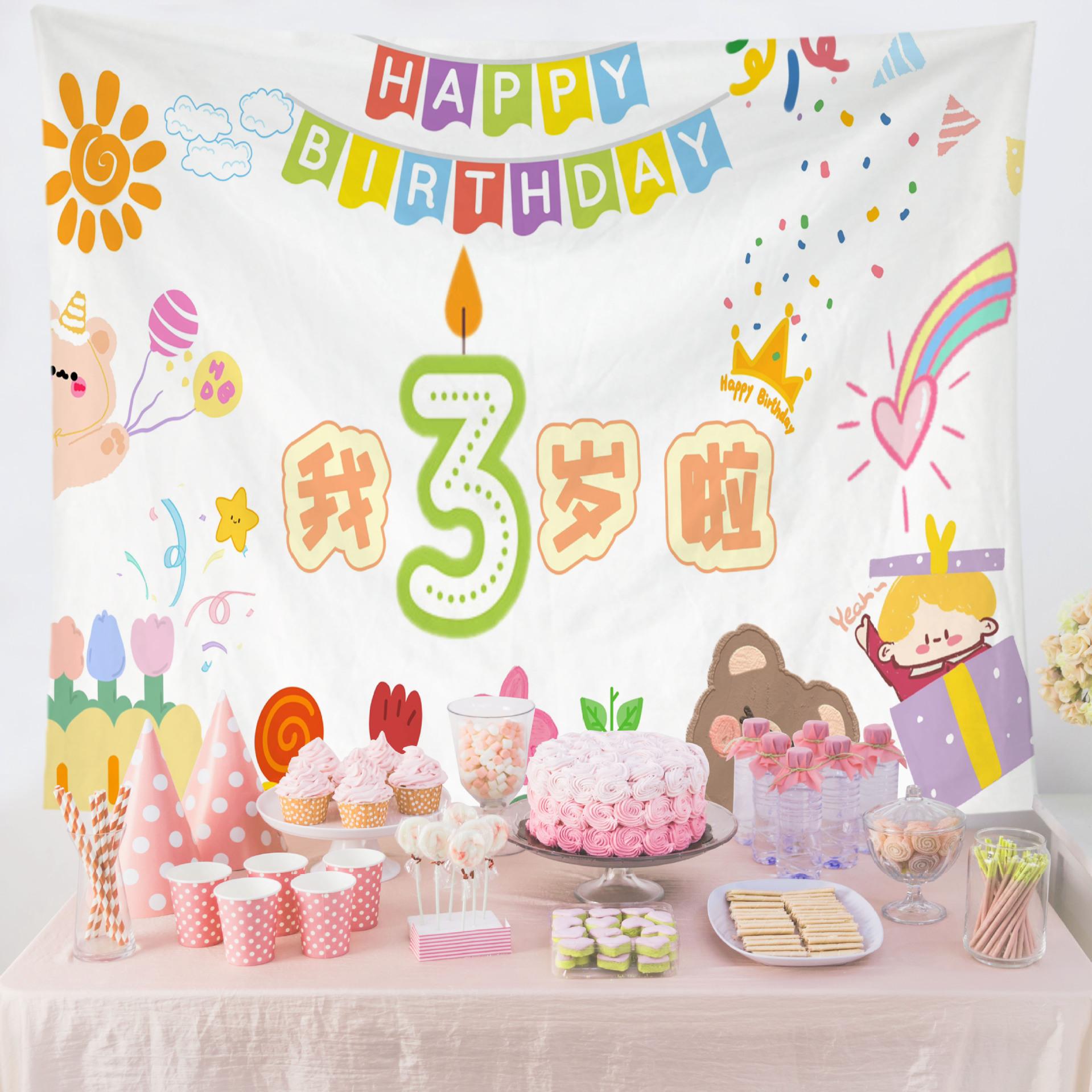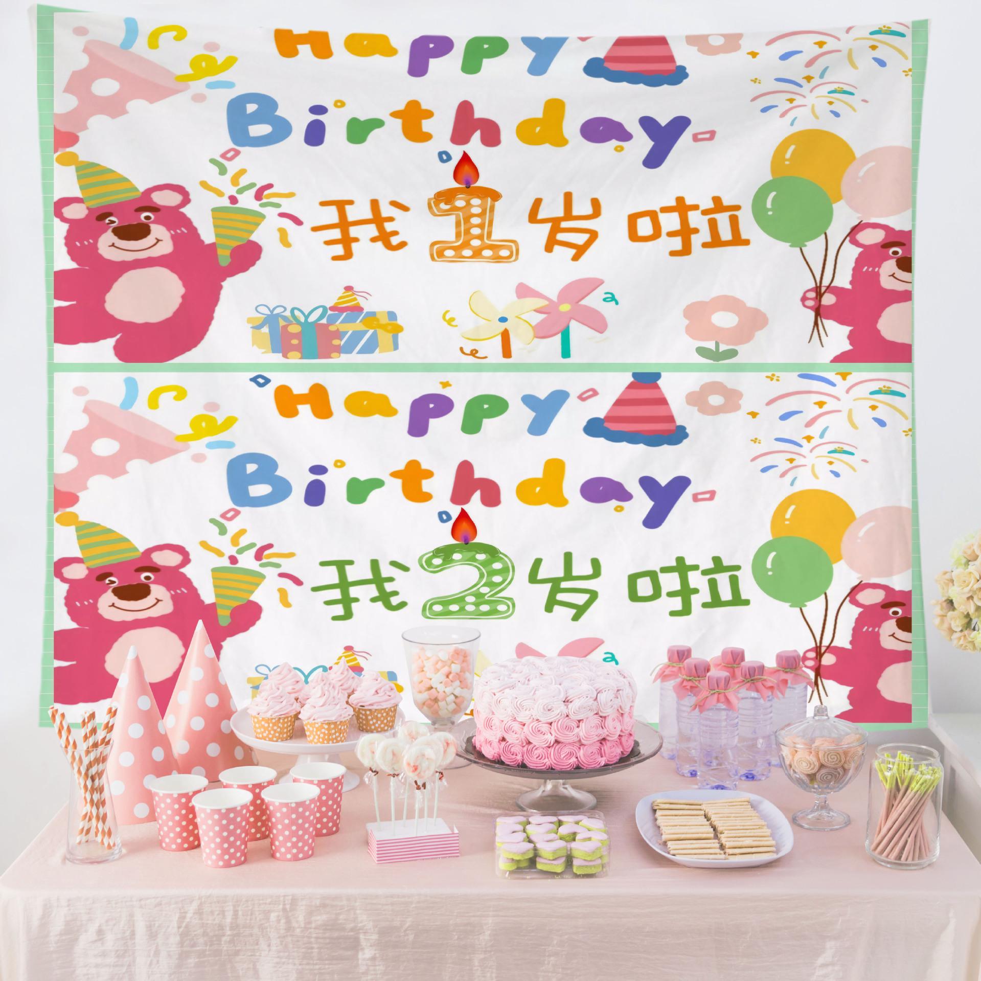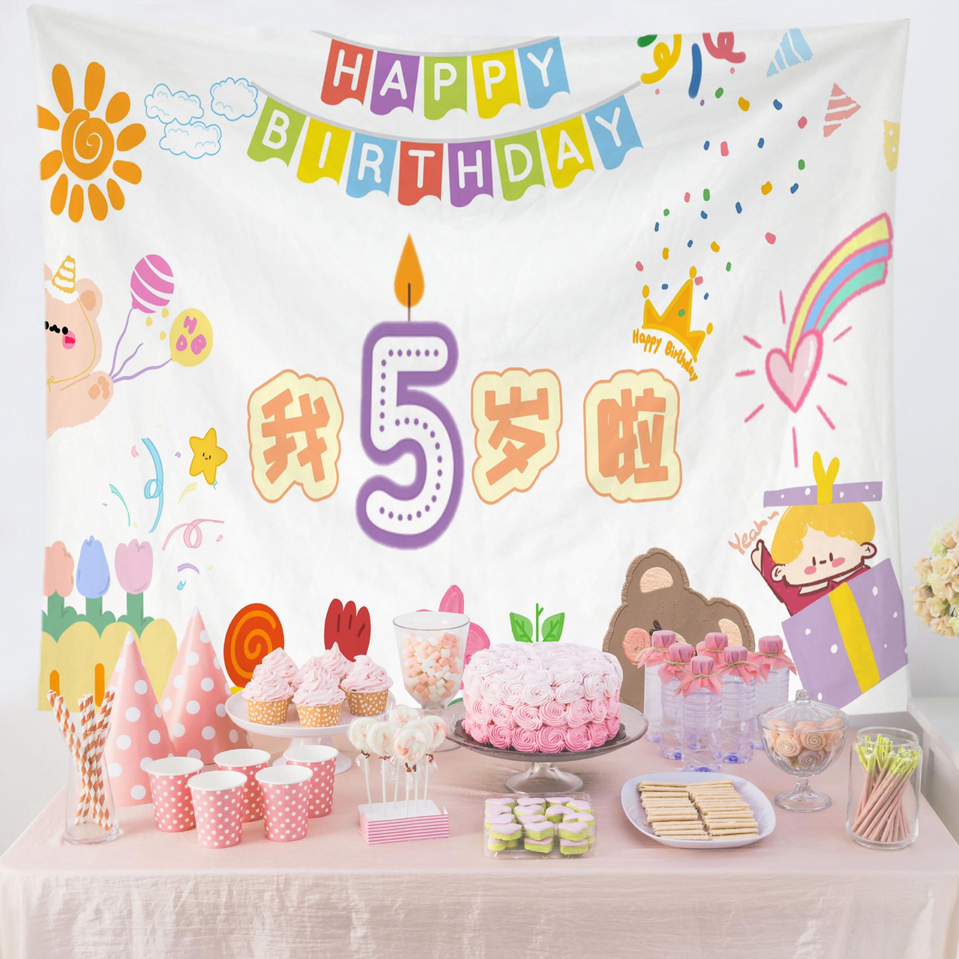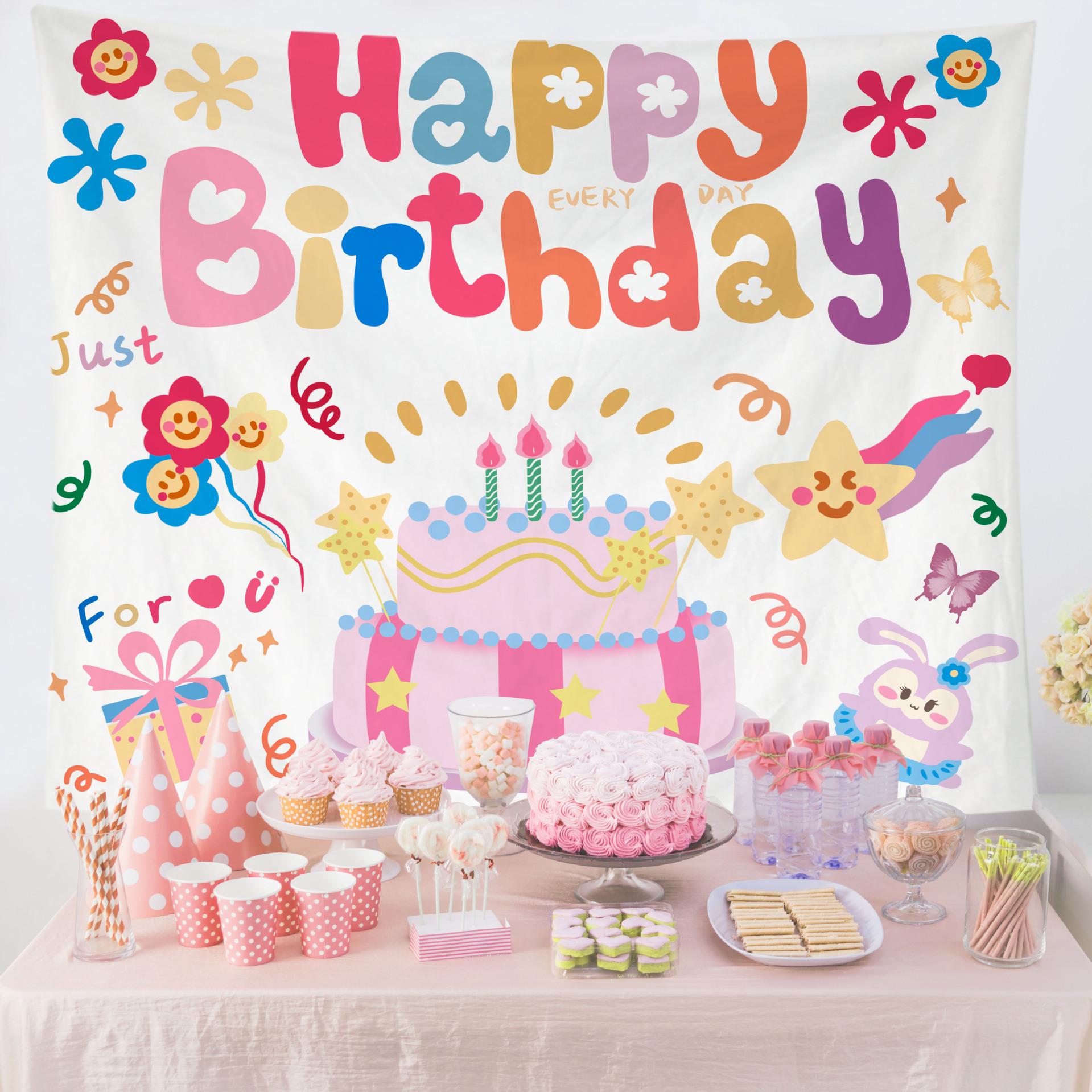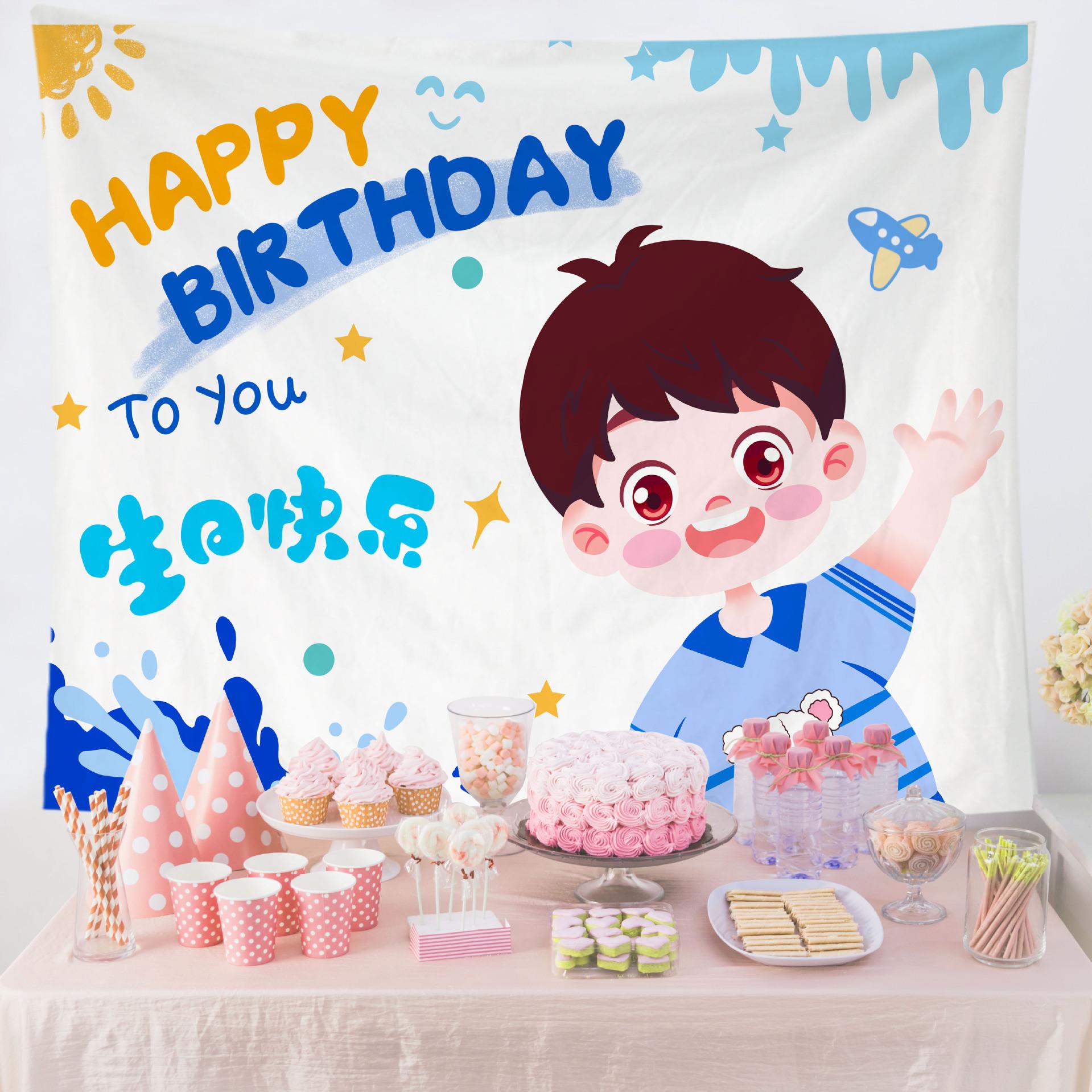 Tela de Fondo de Feliz Cumpleaños Nueva Decoración de Fiesta Infantil Tela Colgante Dibujos Animados Lindo Niño Niña Cumpleaños Tela de Pared