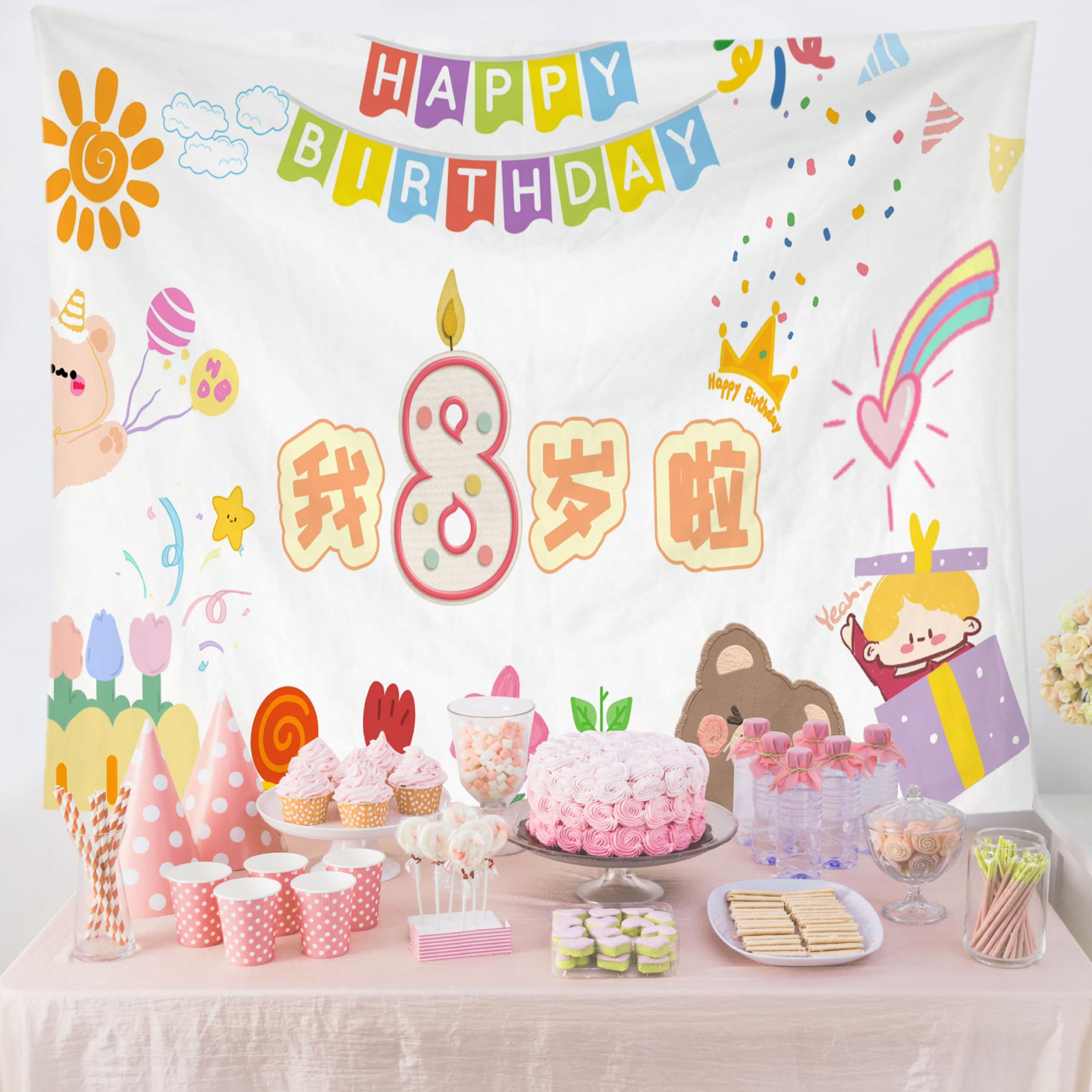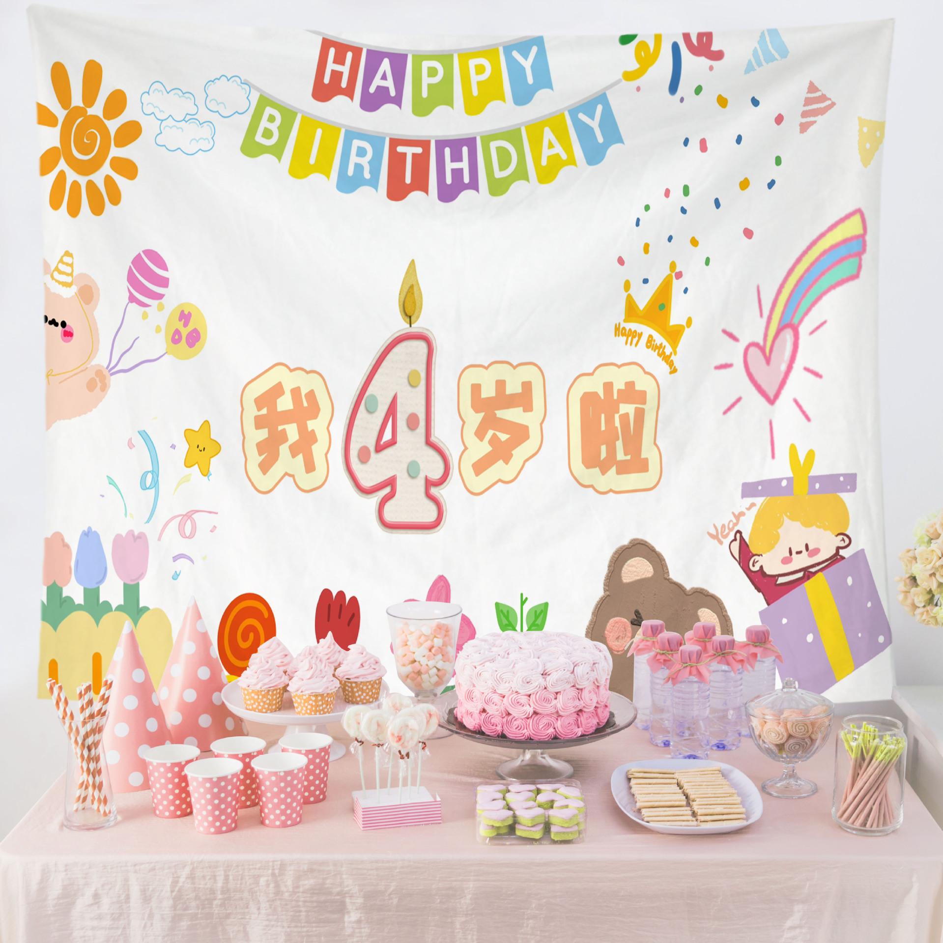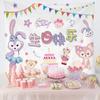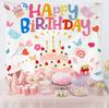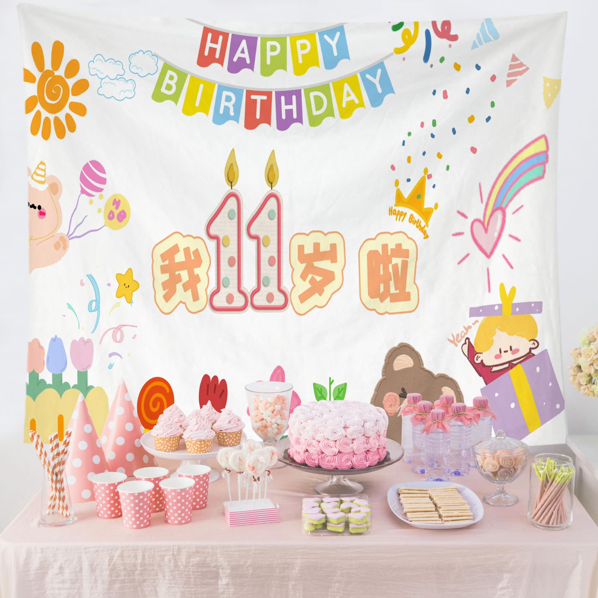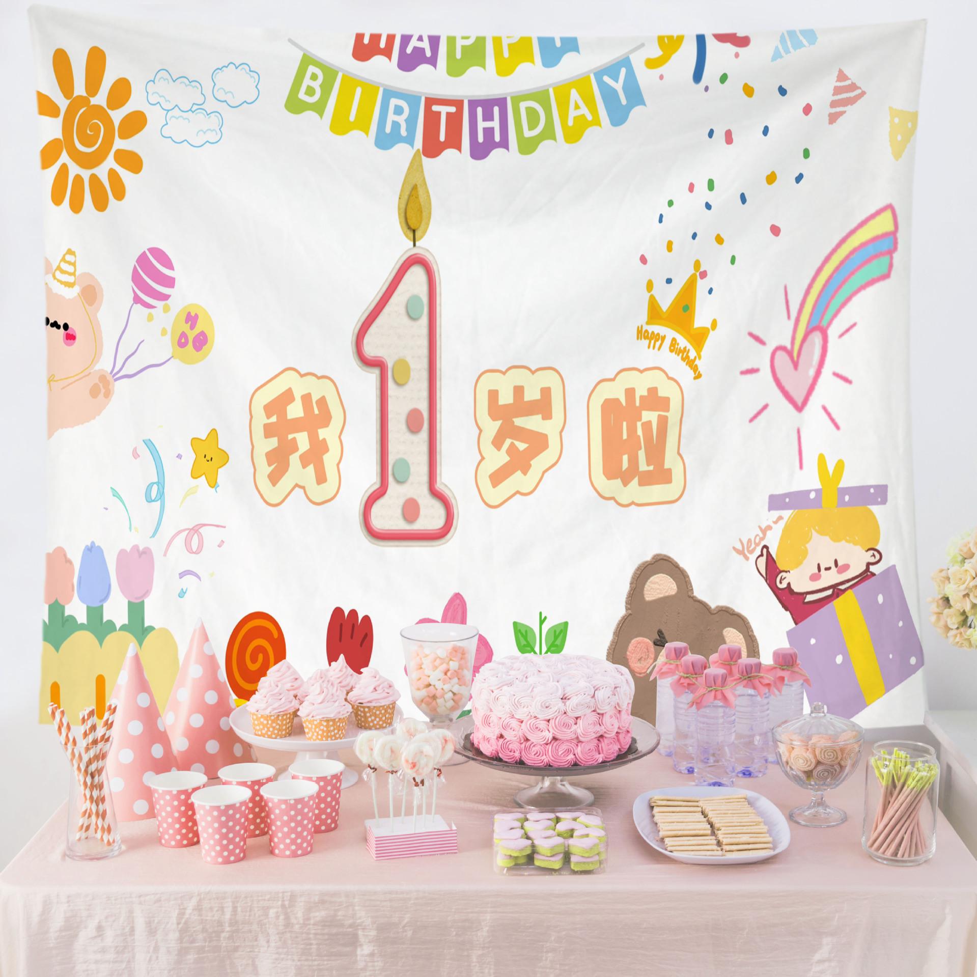 Tela de Fondo de Feliz Cumpleaños Nueva Decoración de Fiesta Infantil Tela Colgante Dibujos Animados Lindo Niño Niña Cumpleaños Tela de Pared