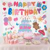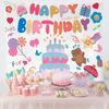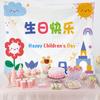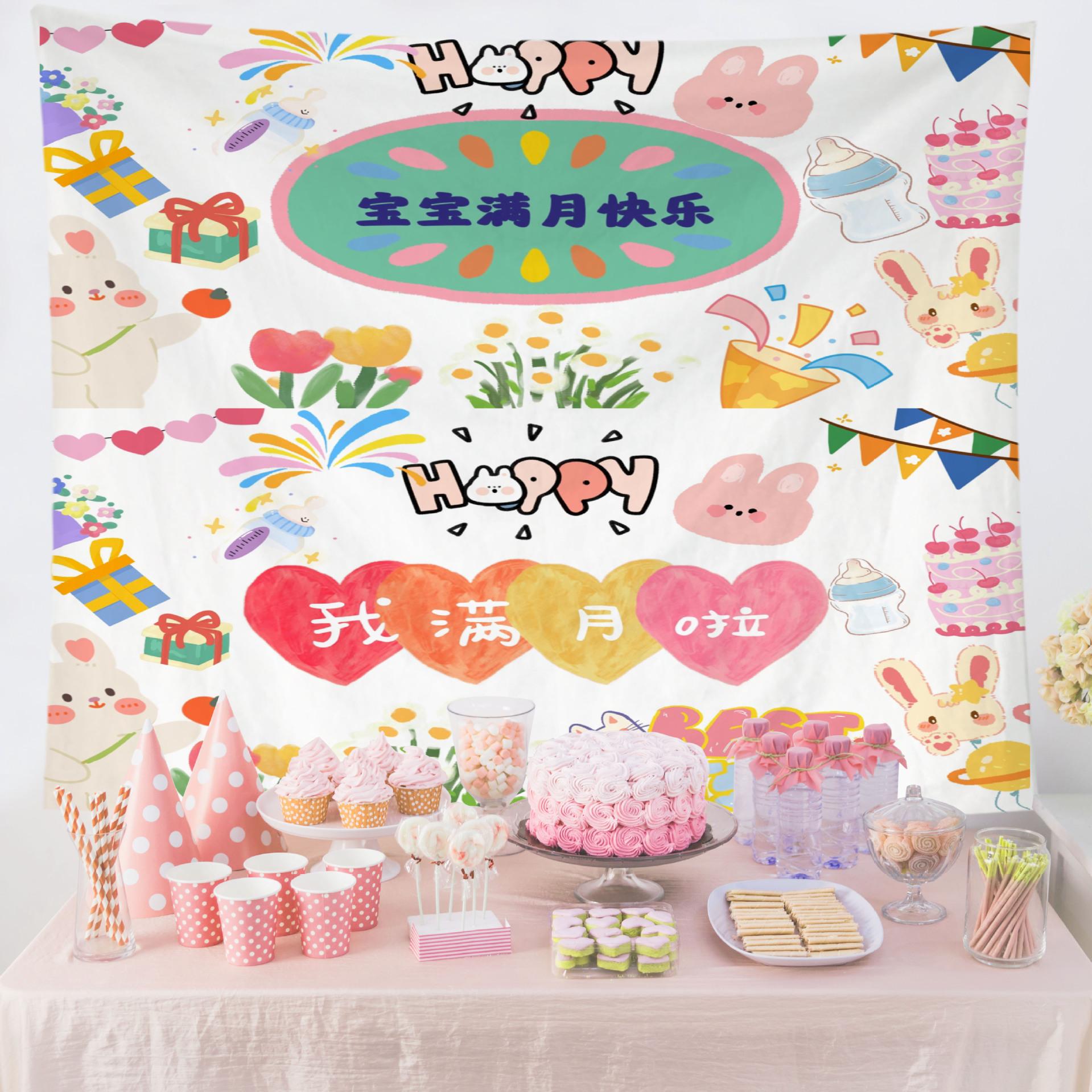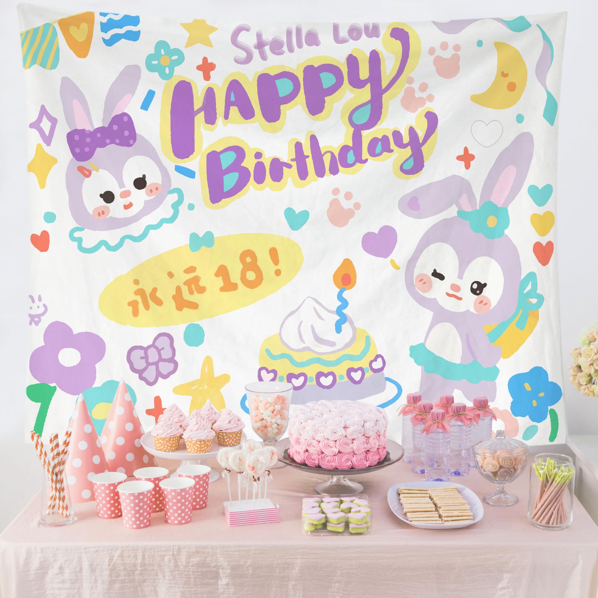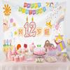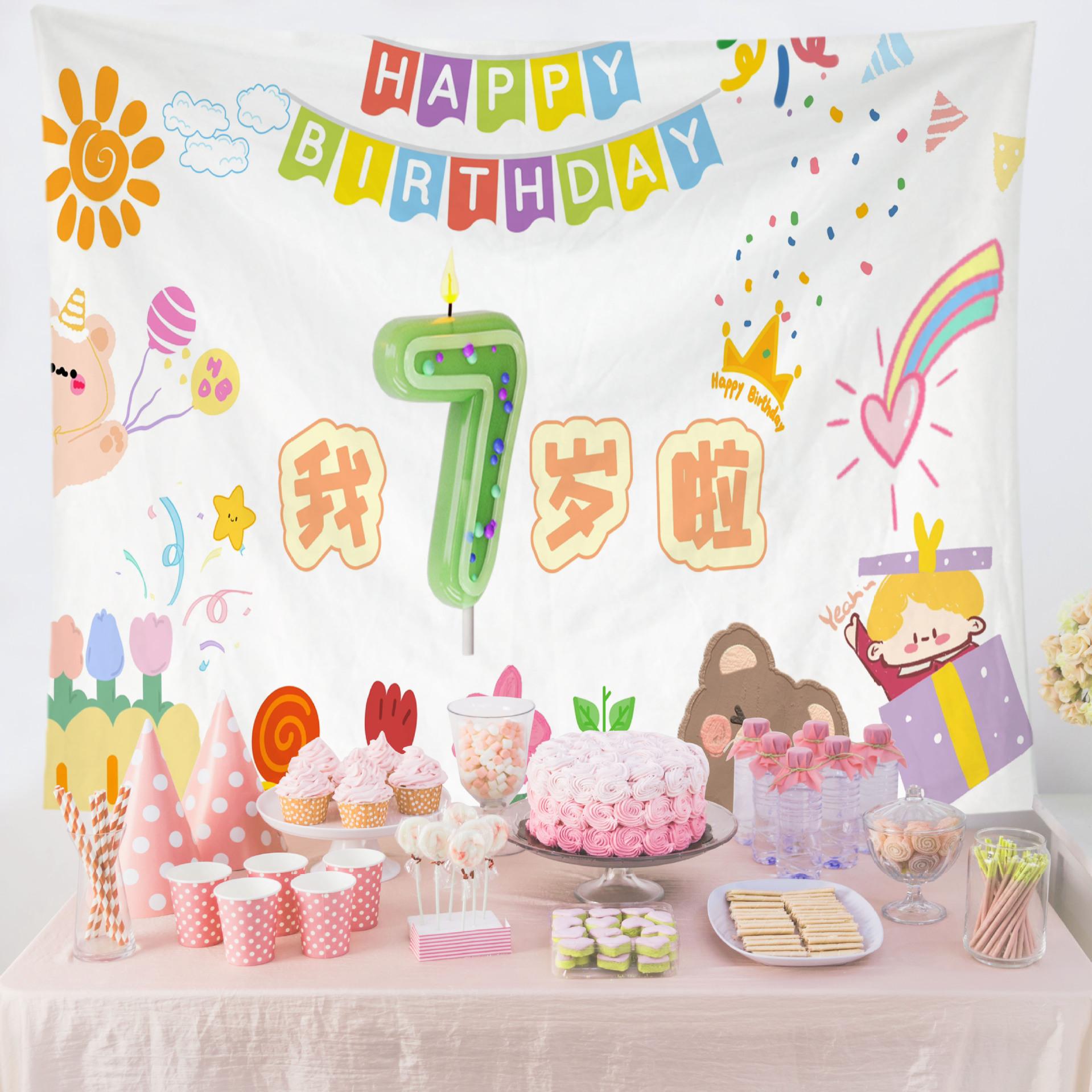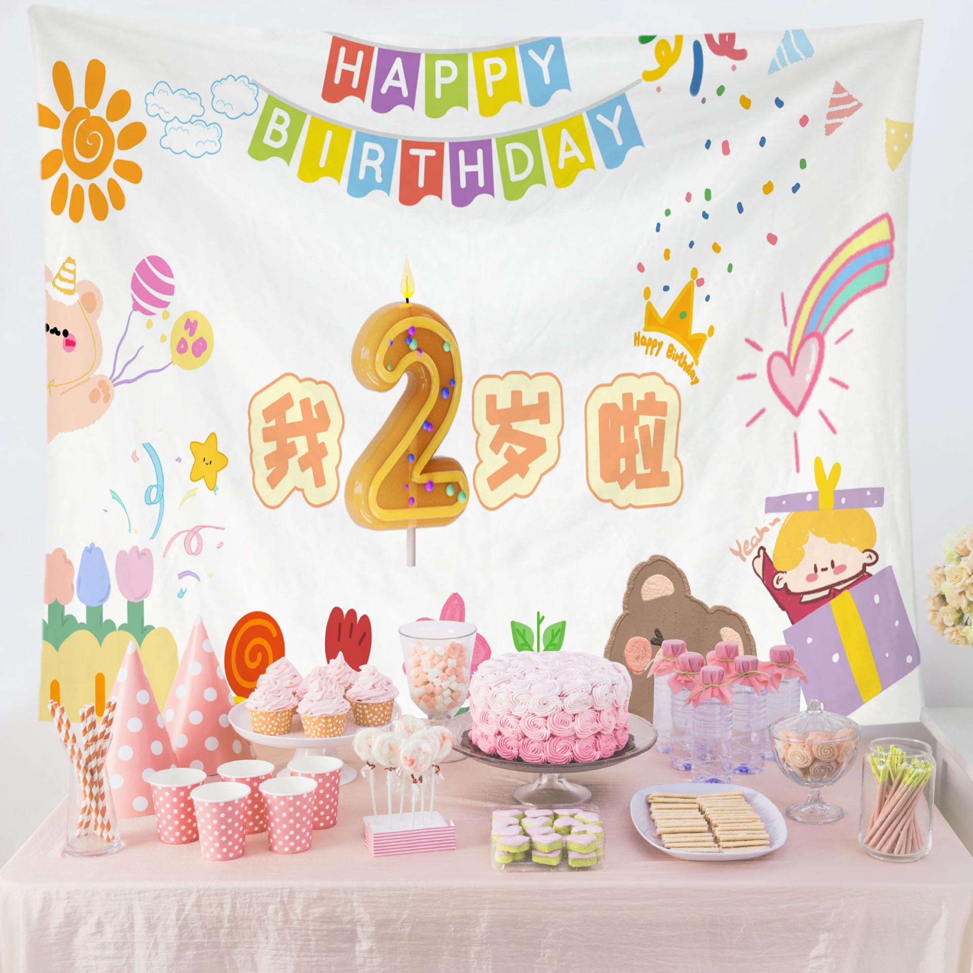Tela de Fondo de Feliz Cumpleaños Nueva Decoración de Fiesta Infantil Tela Colgante Dibujos Animados Lindo Niño Niña Cumpleaños Tela de Pared