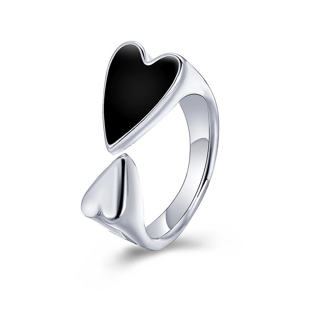 Corea del Sur Anillo de Amor Negro Simple Estilo Dulce Cool Sentido del Diseño Nicho Forma de Corazón Corazón de Durazno Anillo para el Dedo Índice Accesorios