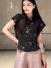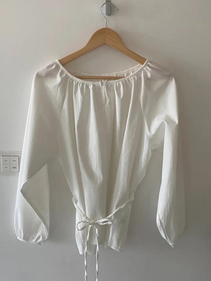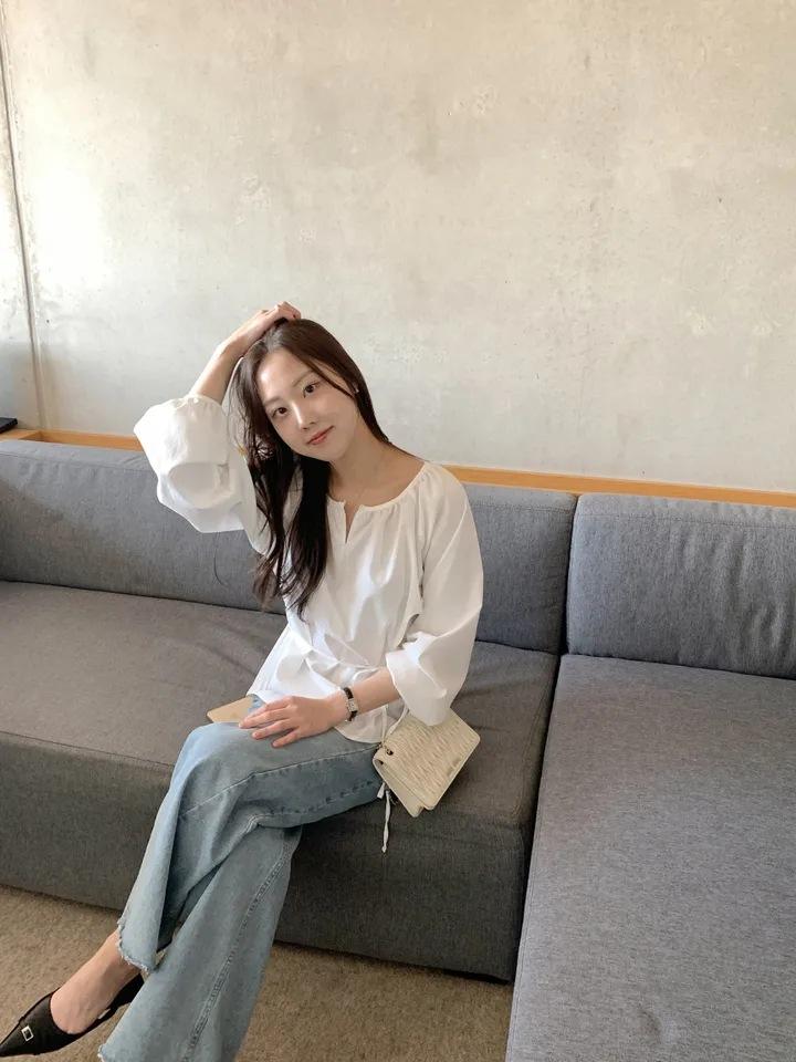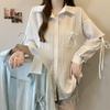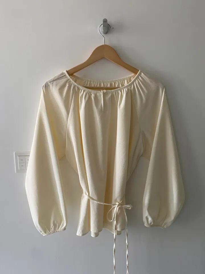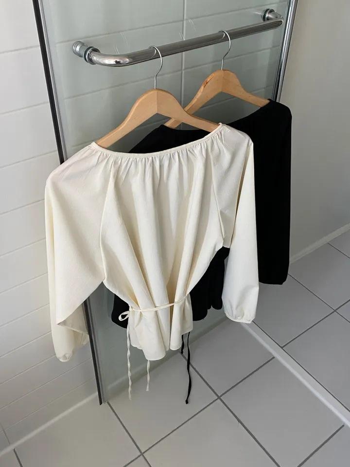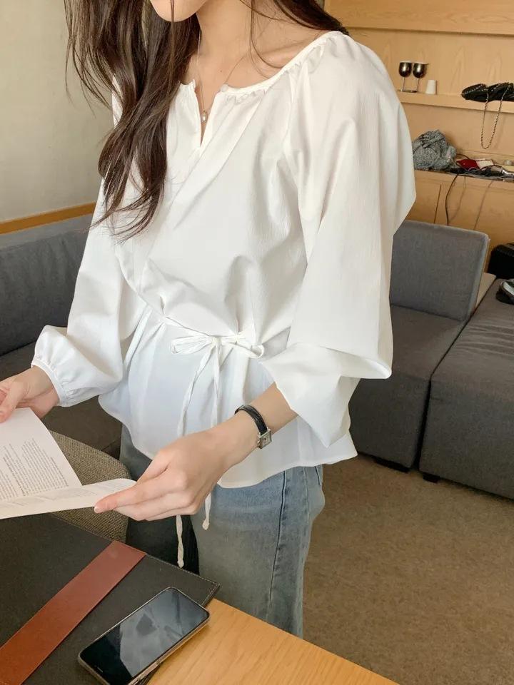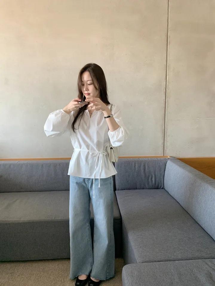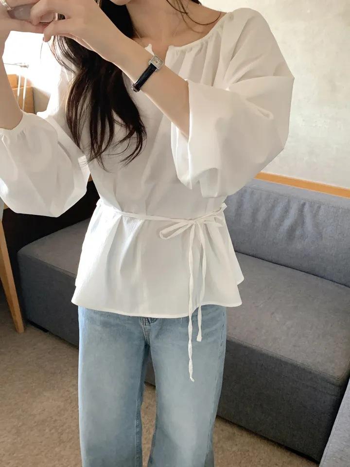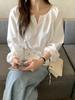 Chic Coreano Nicho Retro Cuello en V Cordón Cintura Holgado Look Adelgazante Casual Versátil Camisa Top