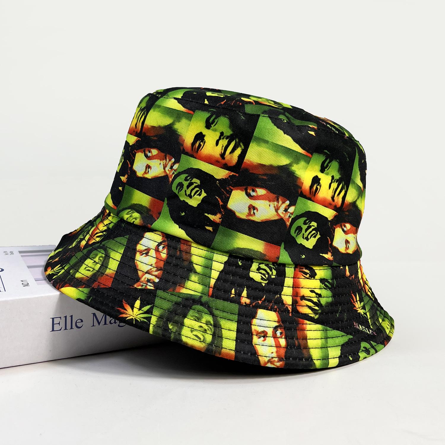 Sombrero de Pescador de Doble Cara con Estampado de Retrato Transfronterizo para Hombres y Mujeres, Sombrero Versátil de Ocio al Aire Libre para Primavera y Verano con Protección Solar y Sombrilla, Sombrero de Cubeta de Moda