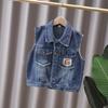 2025 Nuevo Chaleco de Mezclilla para Niños Abrigo de Primavera para Niños y Otoño Top de Estilo Occidental para Niños Chaleco para Bebé