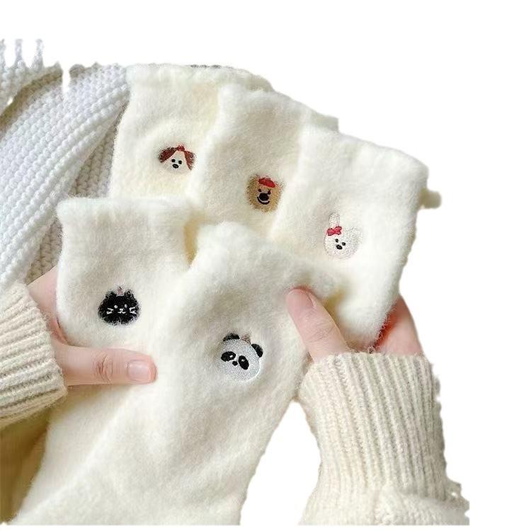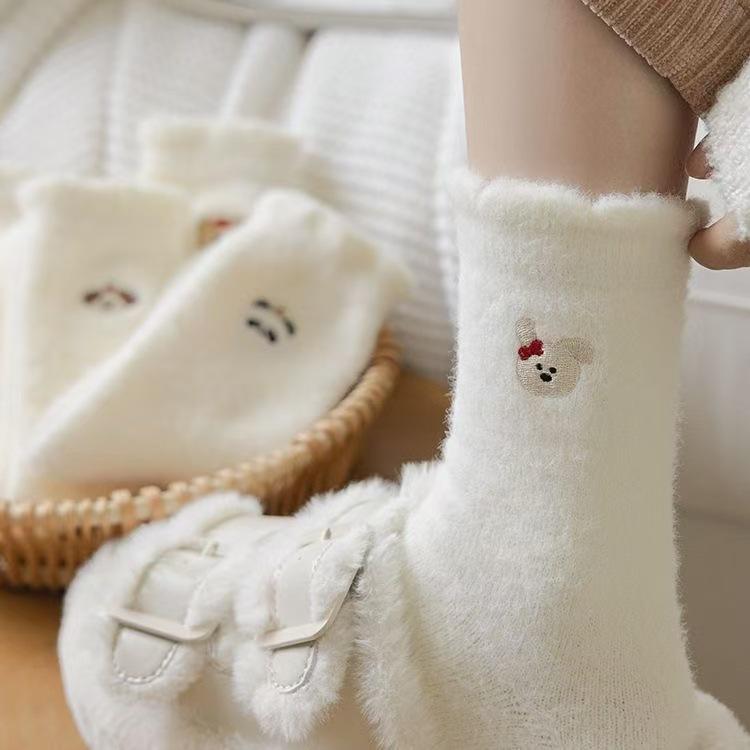 Otoño e Invierno Calcetines Gruesos de Terciopelo Cálidos hasta Media Pantorrilla Dibujos Animados Lindo Invierno Blanco Felpa Calcetines Gruesos Calcetines para Dormir de Mujer Venta al por Mayor