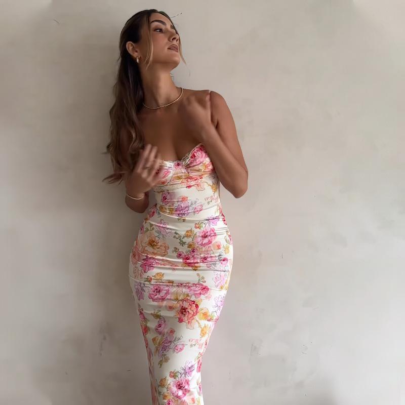 Ropa de Mujer Transfronteriza de Estilo Europeo y Americano 2024 Verano Moda Nueva Moda Estampado Ajustado Sexy Espalda Descubierta Vestido de Tirantes