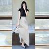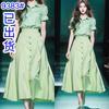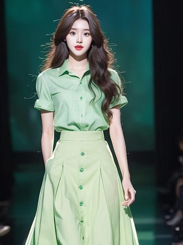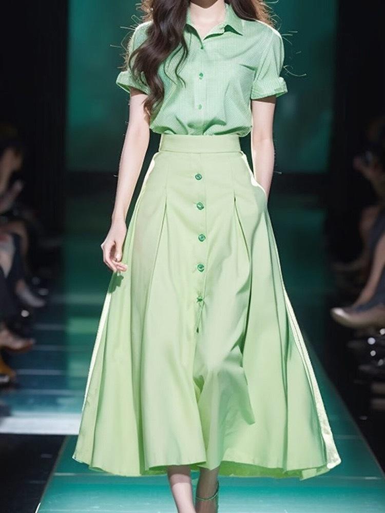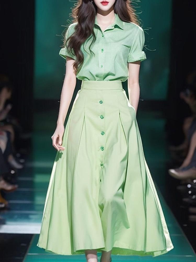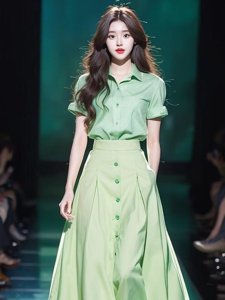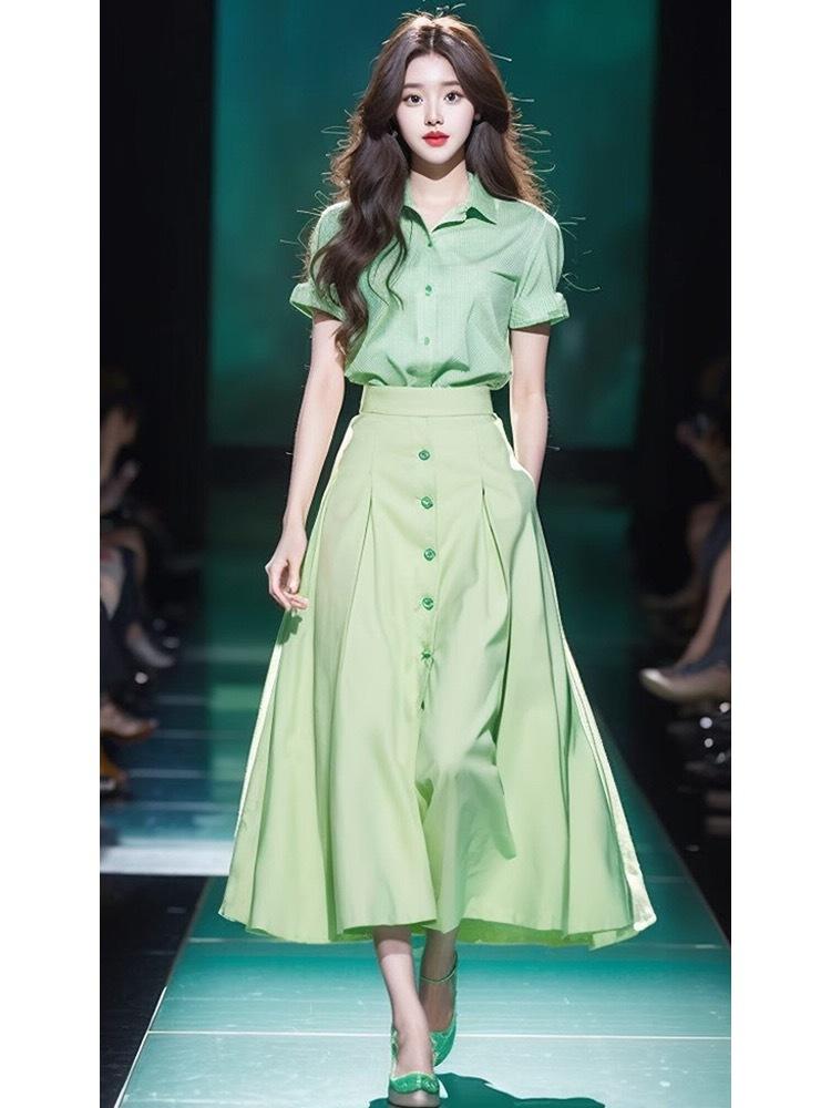 Falda de Traje Callejero Hermosa y Gentil Popular de Este Año para Mujer 2025 Verano Nuevo Set de Dos Piezas de Falda y Camisa Verde Coreana