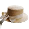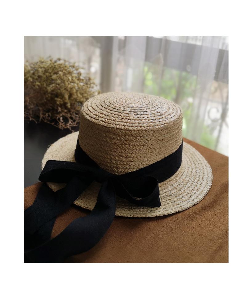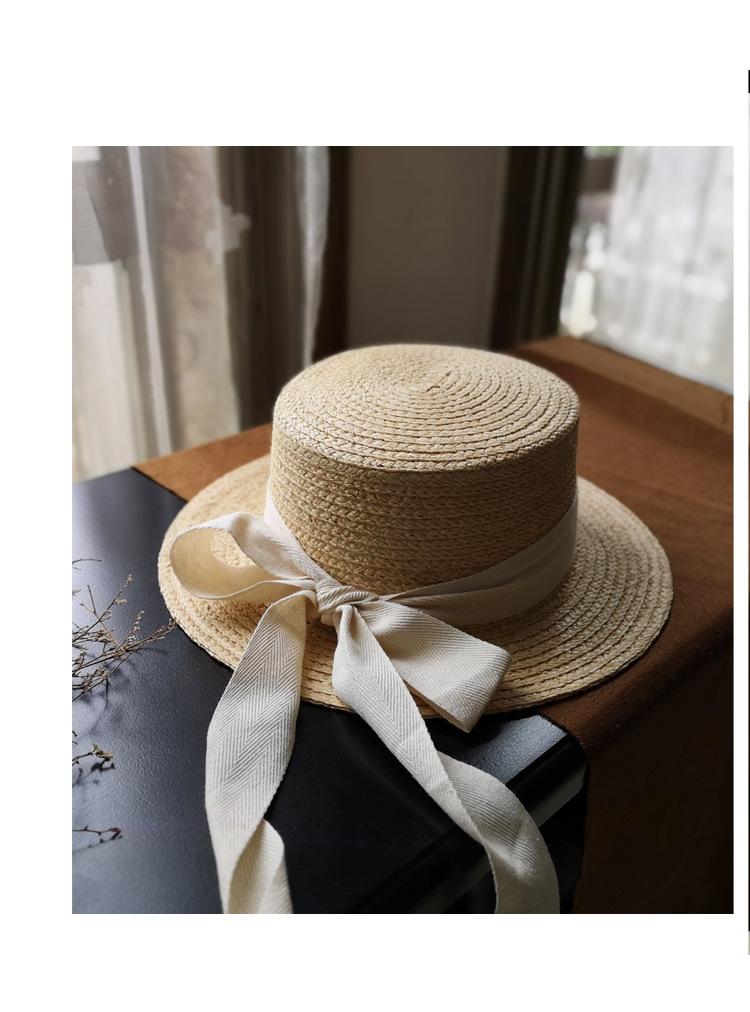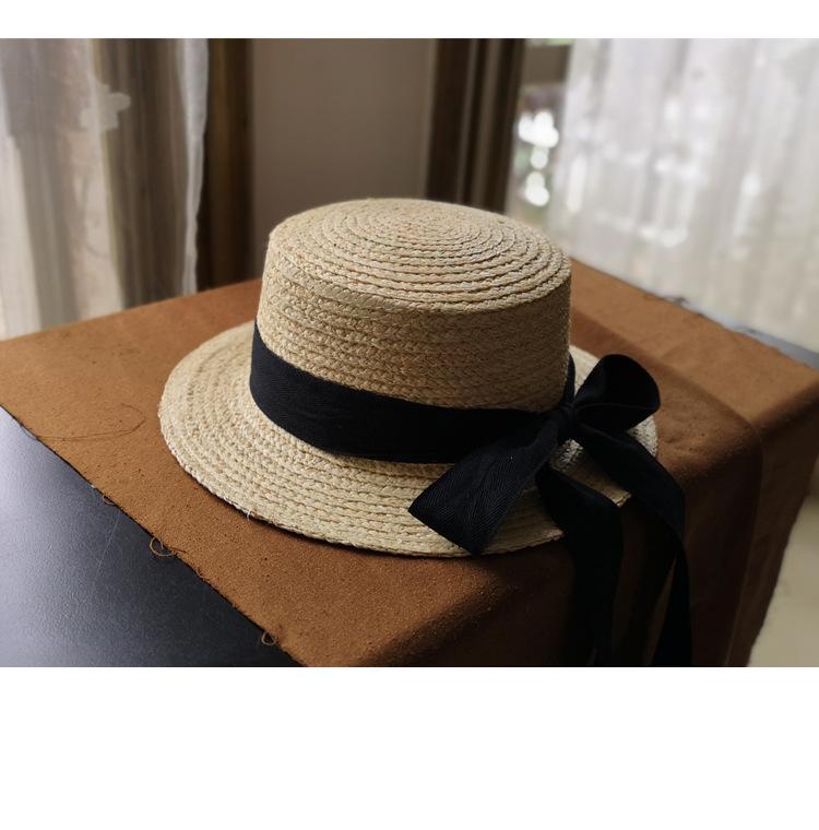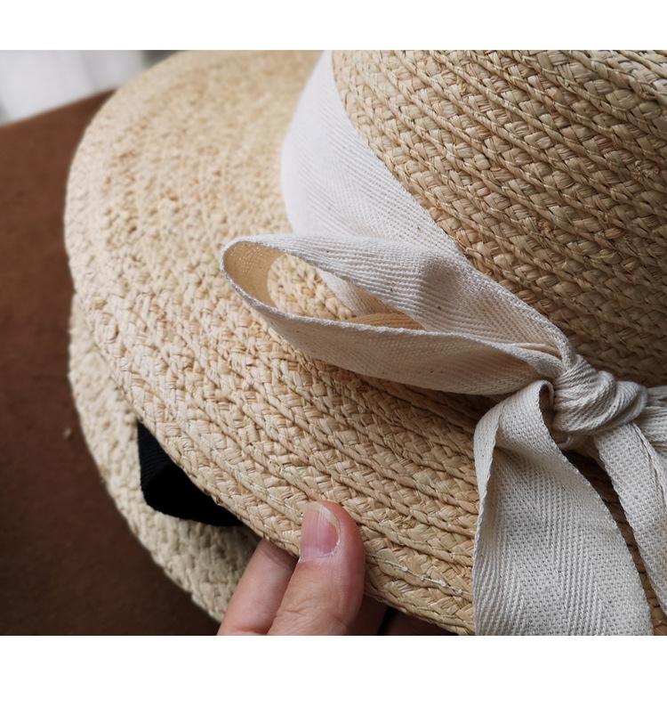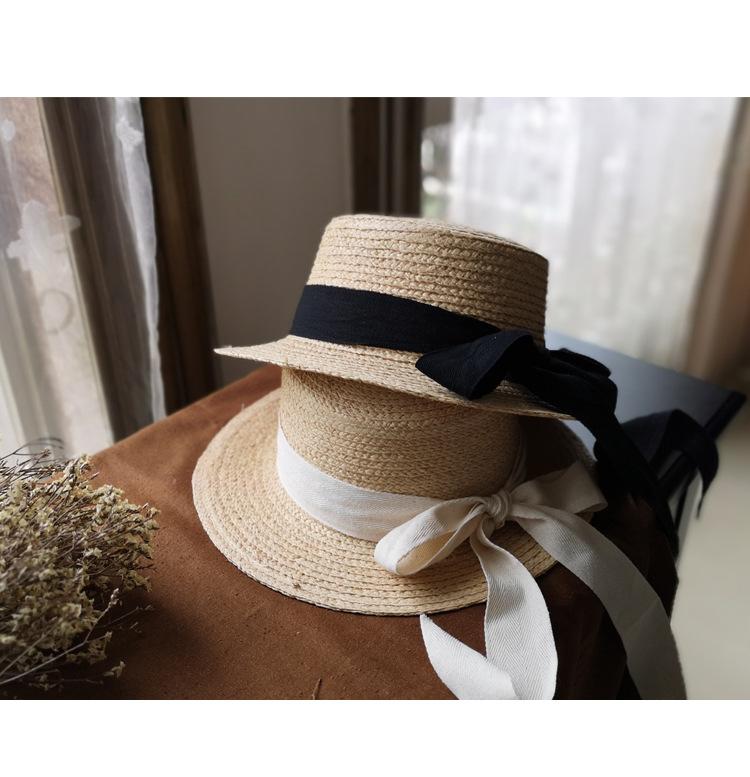 Sombrero de Paja Rafi Top Plano para Mujer 2019 Nuevo Estilo Sombrero de Paja Fresco Artístico Lazo Sombrero para el Sol Vacaciones de Verano