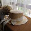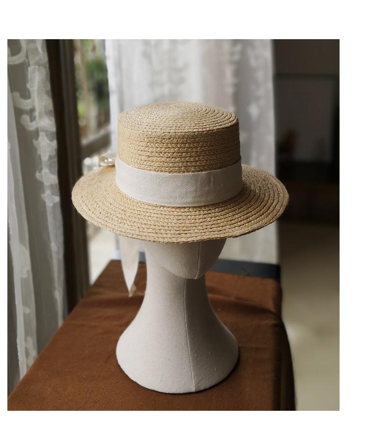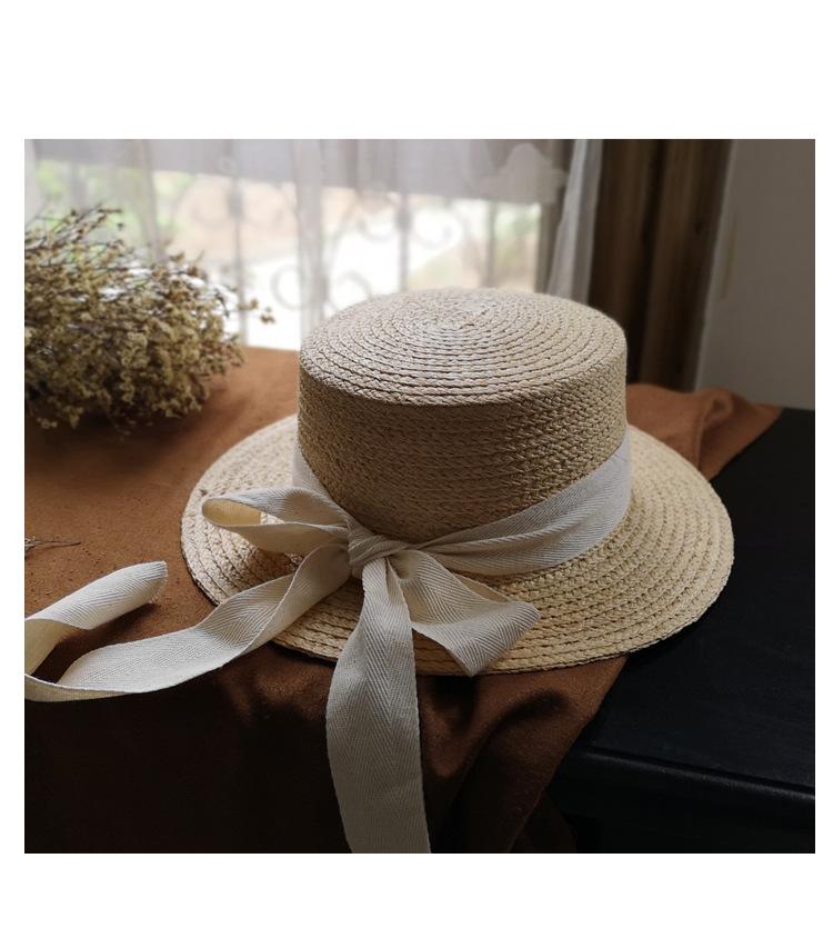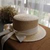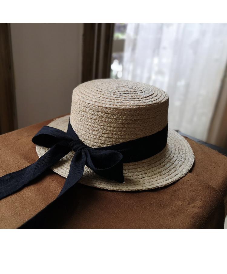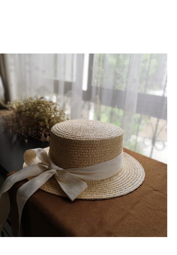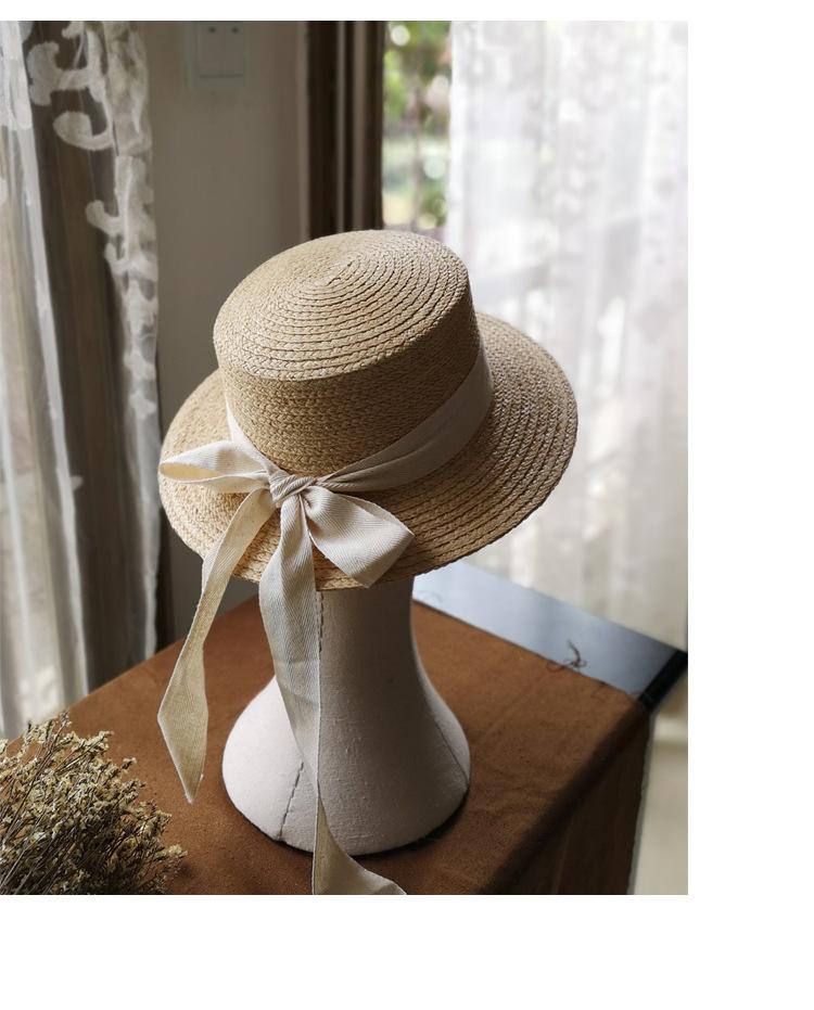 Sombrero de Paja Rafi Top Plano para Mujer 2019 Nuevo Estilo Sombrero de Paja Fresco Artístico Lazo Sombrero para el Sol Vacaciones de Verano