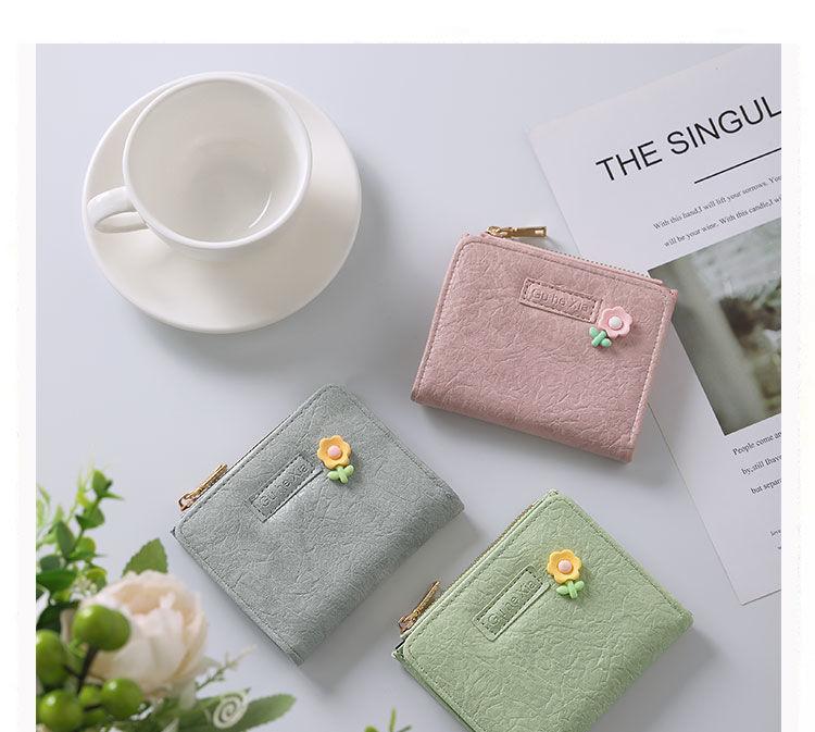 Billetera Pequeña Retro Transfronteriza Femenina Corta Estudiante Europea y Americana Fresca Plegable Simple Artística Hebilla Monedero