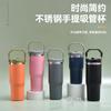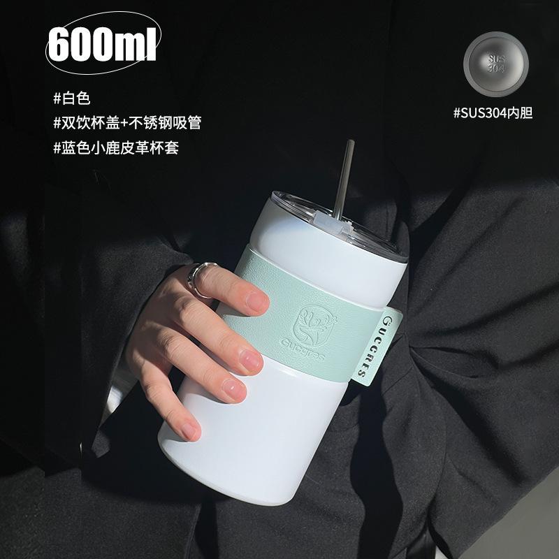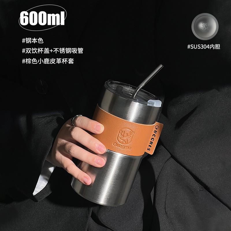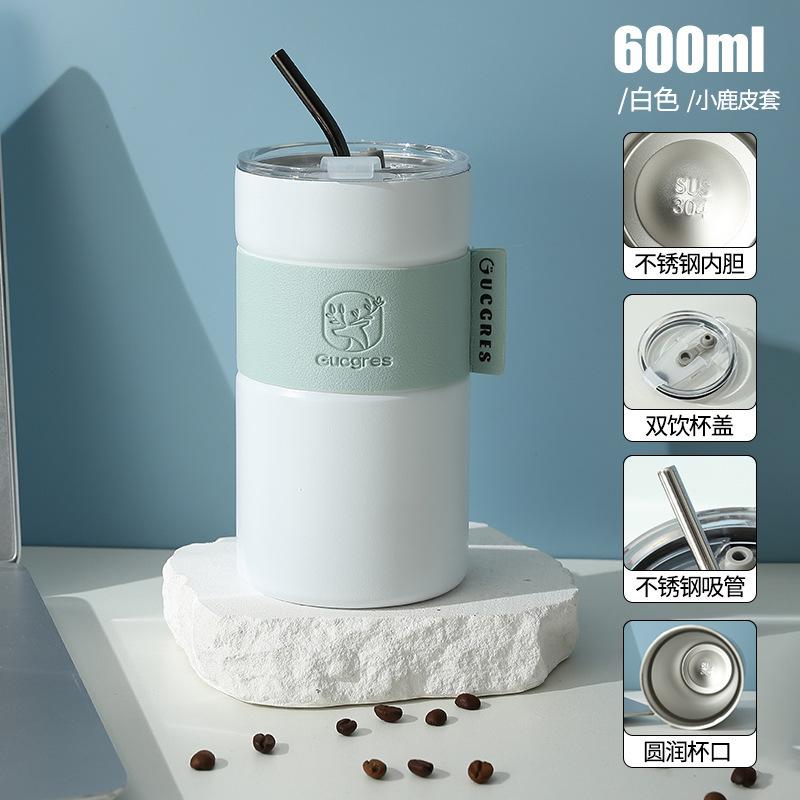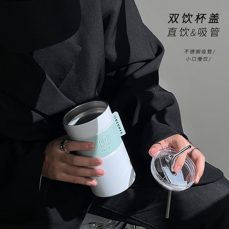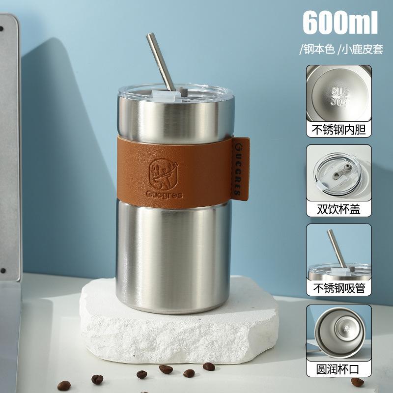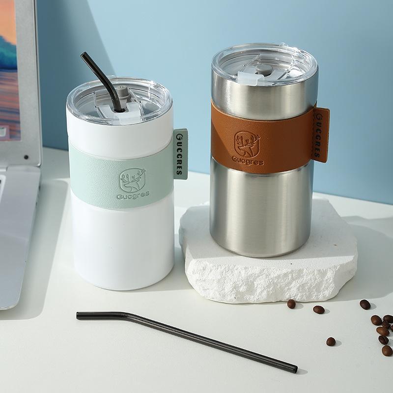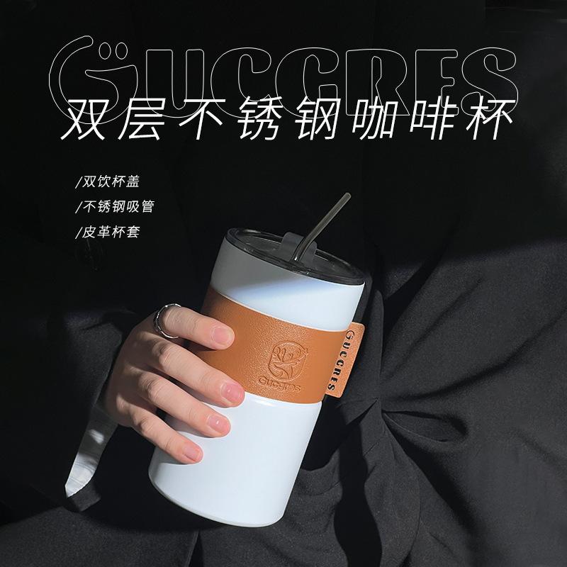Taza de Café de Acero Inoxidable Estudiante Gran Capacidad Doble Capa Taza con Pajita Portátil a Prueba de Fugas Americana Creativa Taza de Agua Aislada Venta al por Mayor