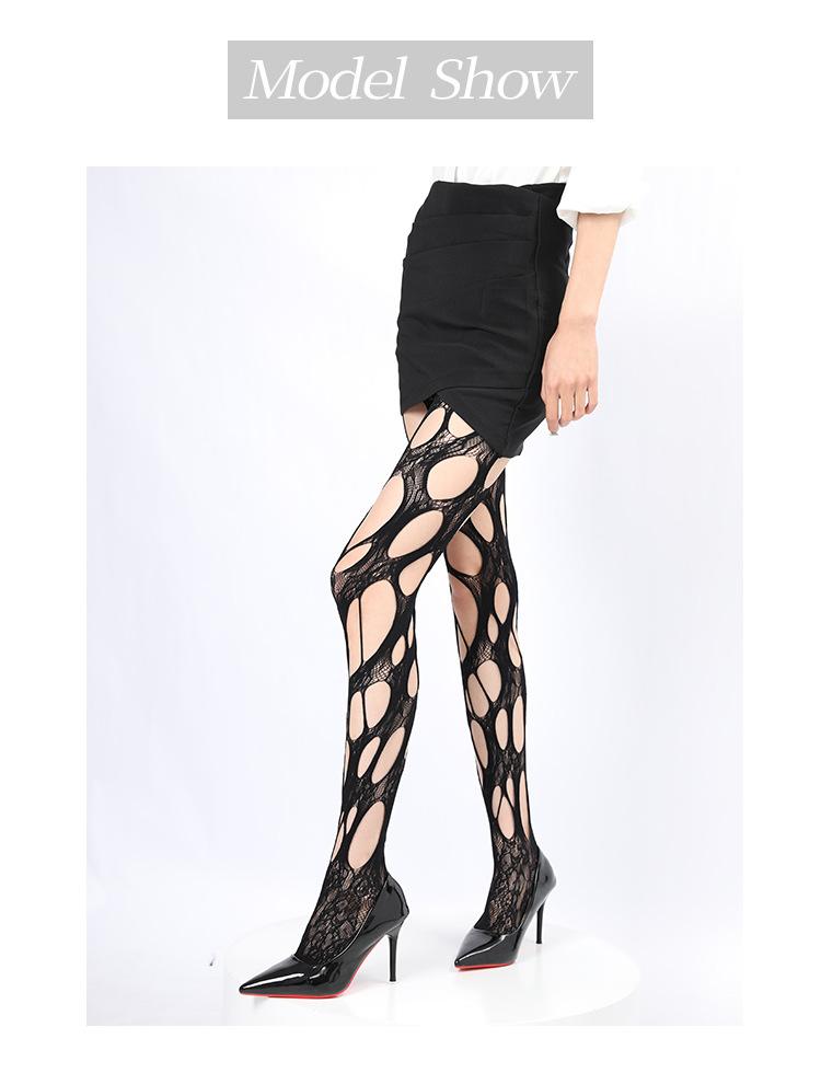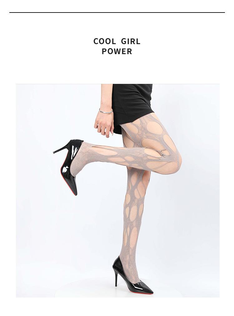 Venta al por mayor Primavera y Verano Nuevo Y2K Sexy Retro Medias Subcultura Agujero Asimétrico Encaje Red de Pesca Medias