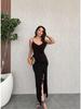 Estilo Europeo y Americano 2025 Verano Exportación Transfronteriza Vestido Sexy de Tirantes con Cuello en V Ajustado con Abertura Lateral Irregular y Espalda Descubierta