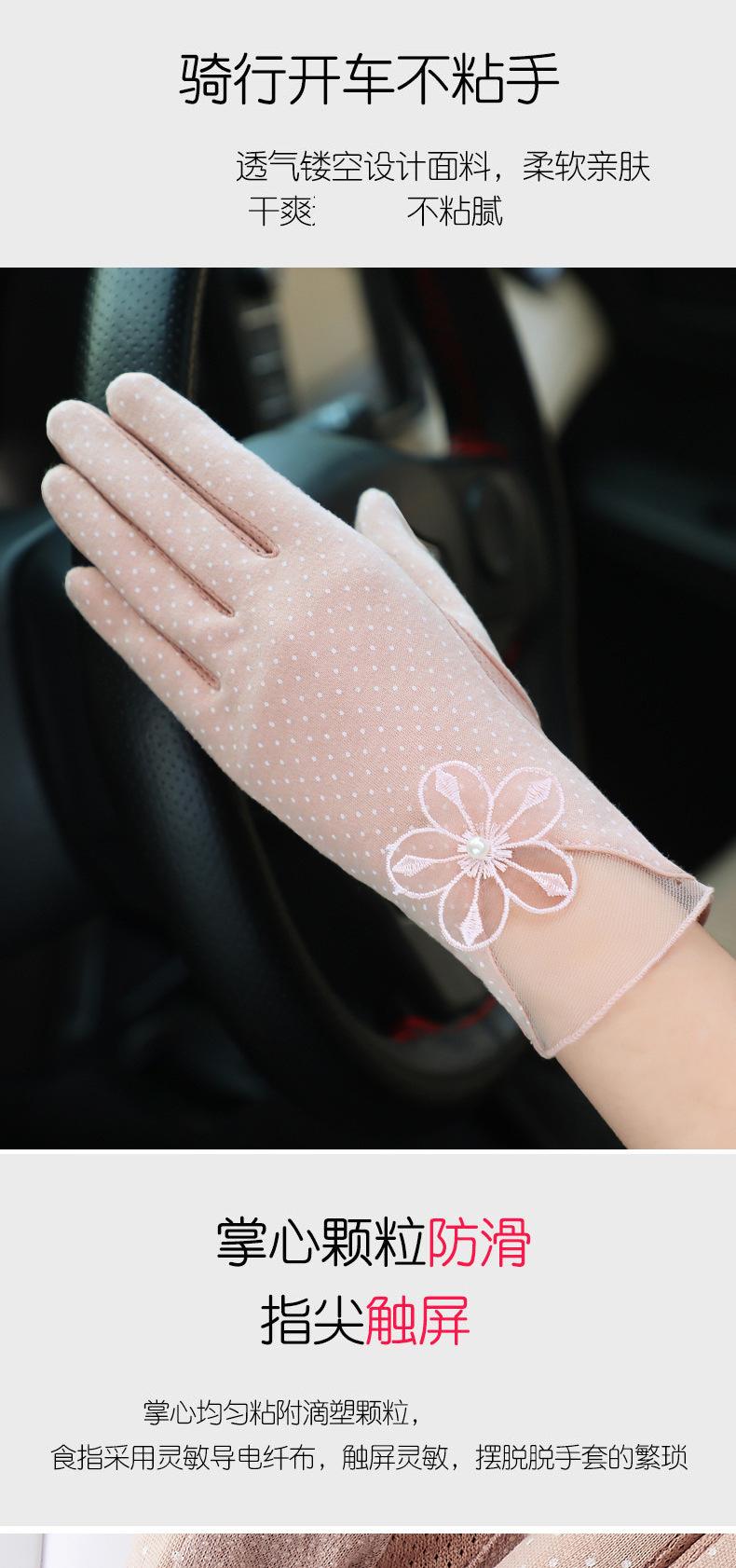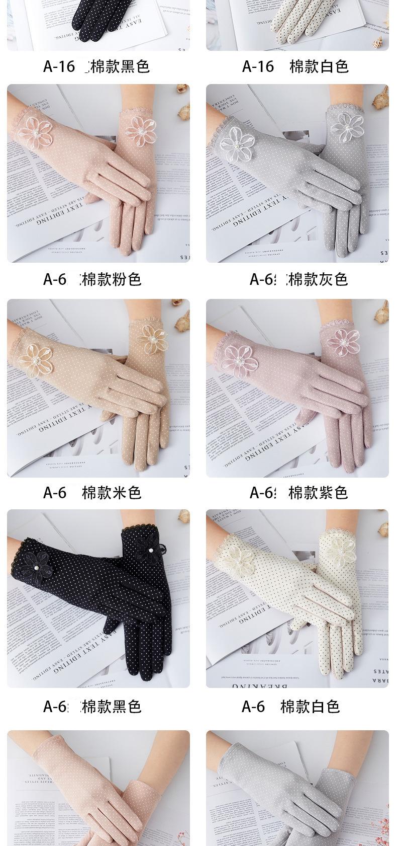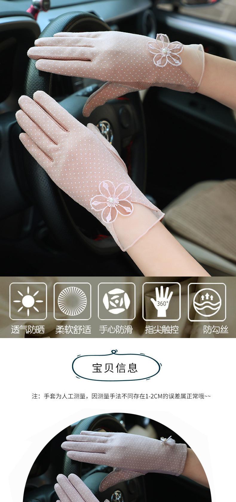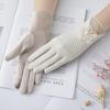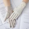Guantes de Protección Solar para Mujer, Guantes Finos de Encaje de Verano para Exterior Cómodos Transpirables con Pantalla Táctil para Conducir, Guantes Cortos de Ciclismo Antideslizantes de Imitación