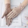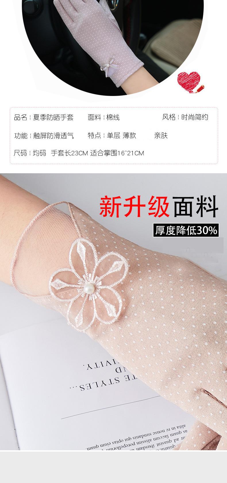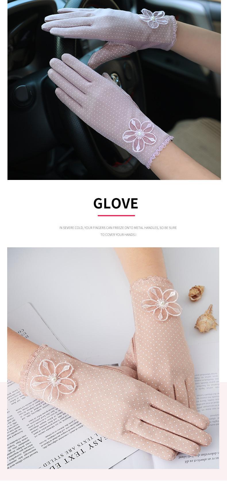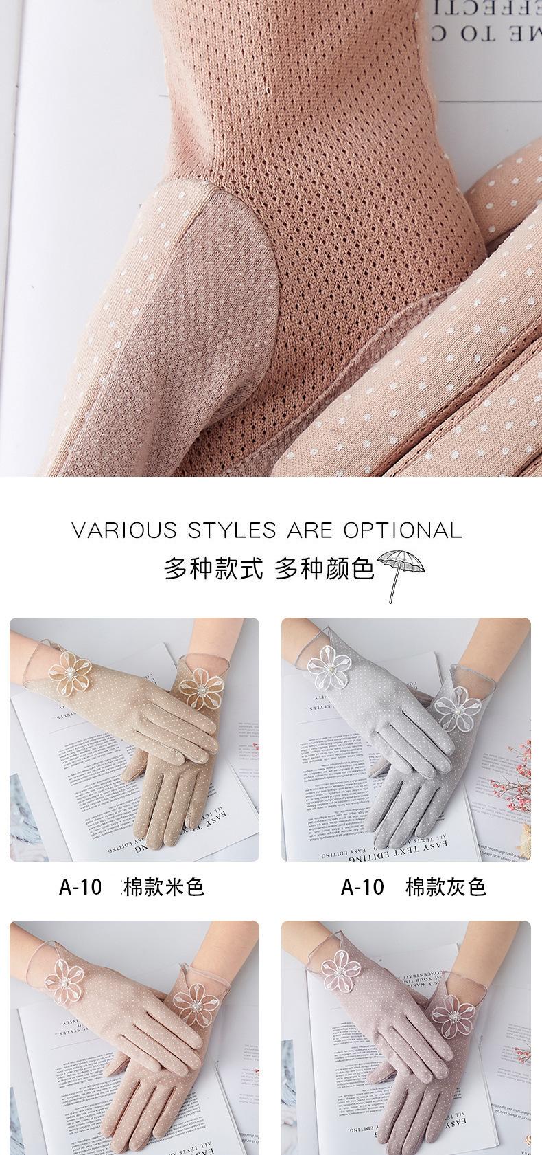 Guantes de Protección Solar para Mujer, Guantes Finos de Encaje de Verano para Exterior Cómodos Transpirables con Pantalla Táctil para Conducir, Guantes Cortos de Ciclismo Antideslizantes de Imitación