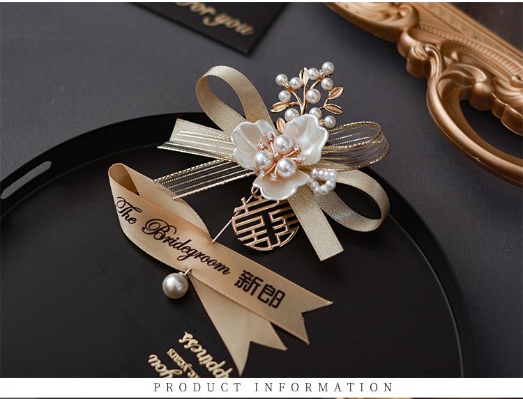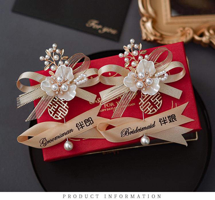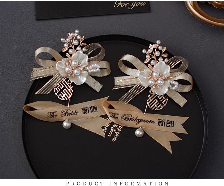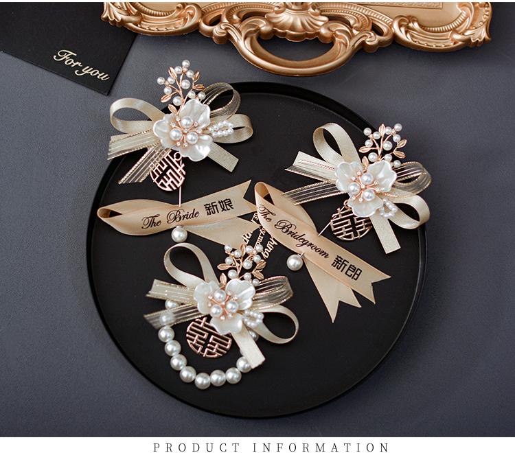 Of9D Boda Coreana Novia y Novio Ramillete de Boda Ramillete para Dama de Honor y Padrino Flor de Muñeca para Dama de Honor Padres Completo