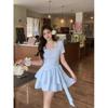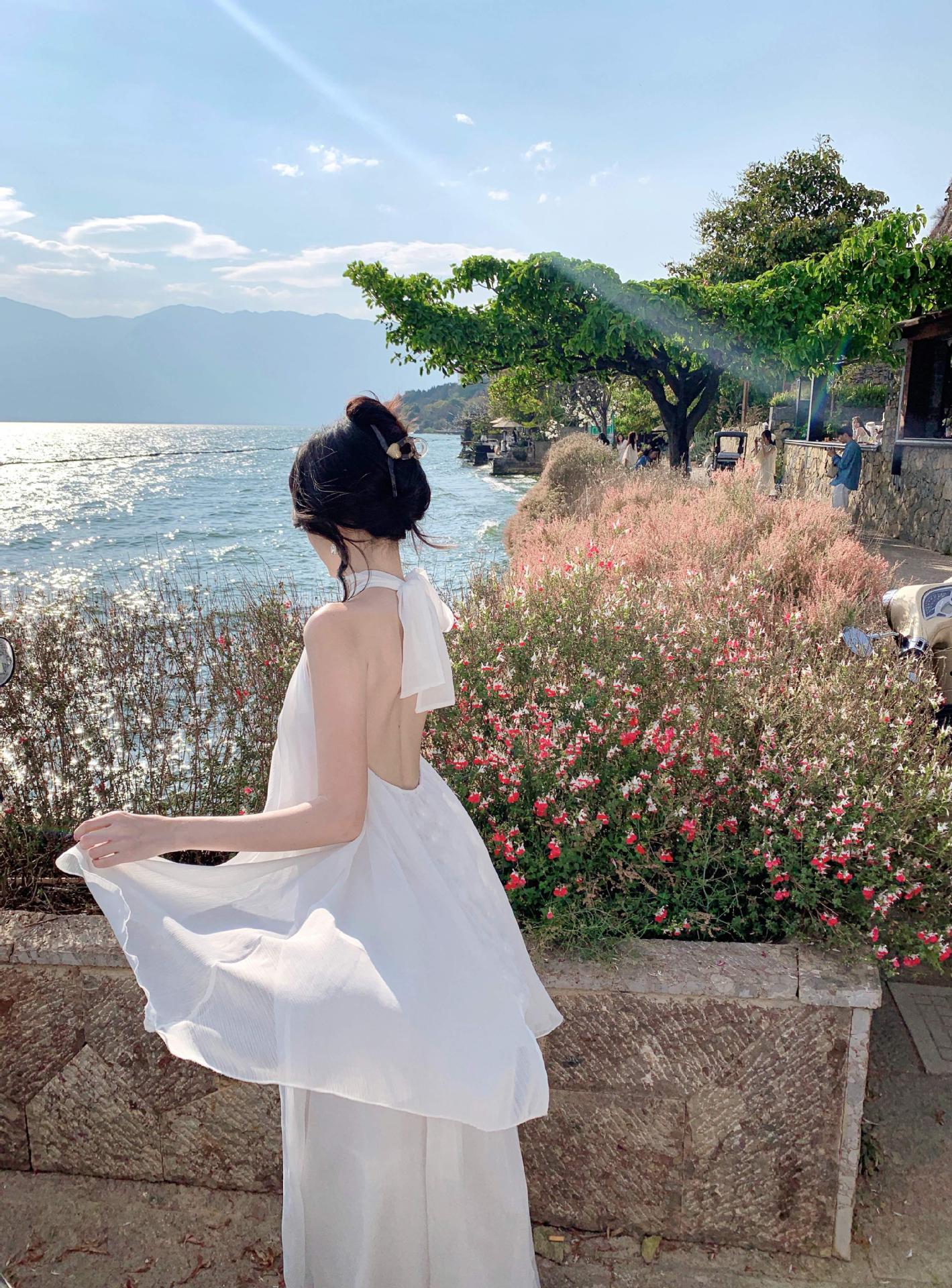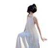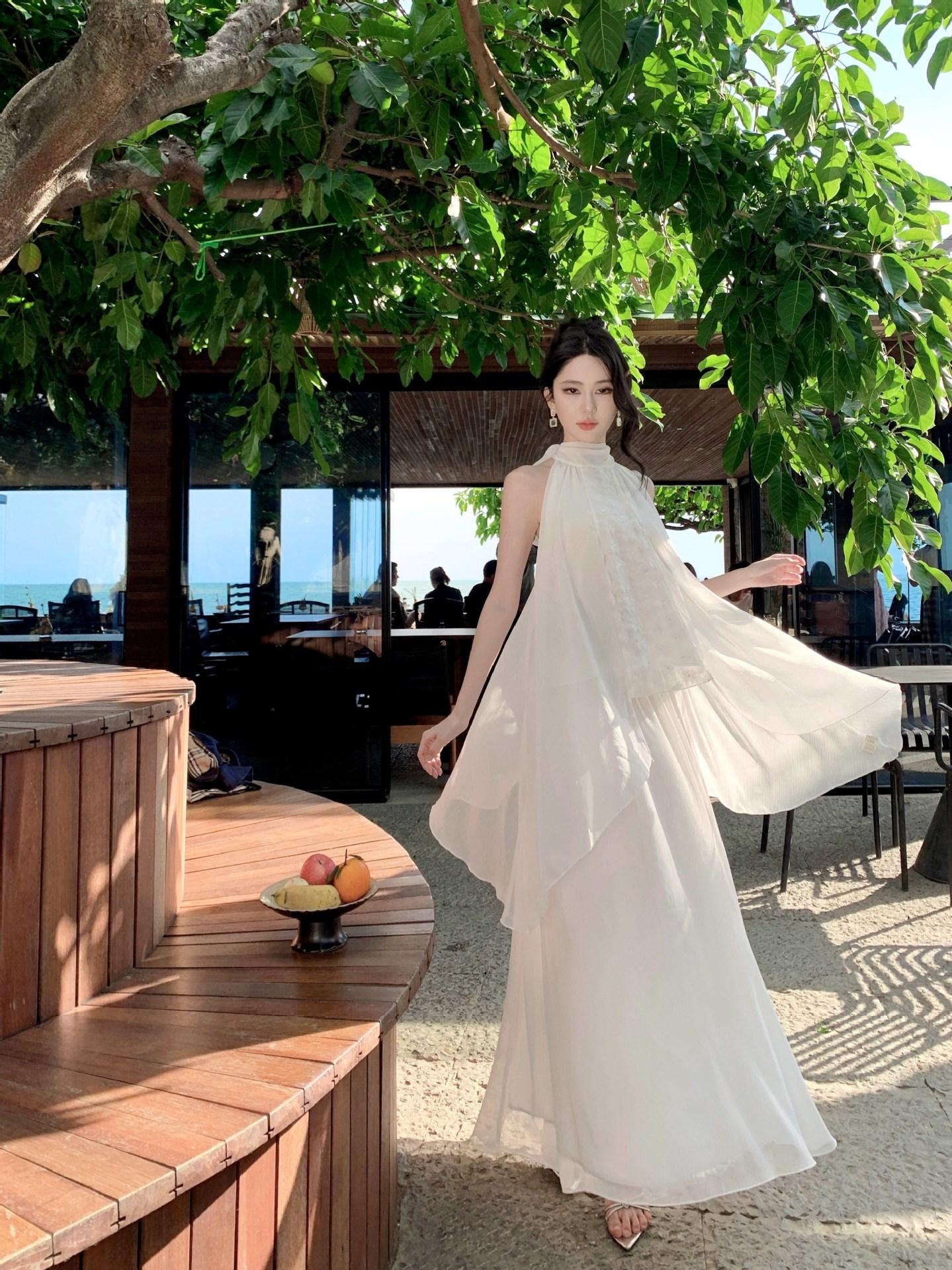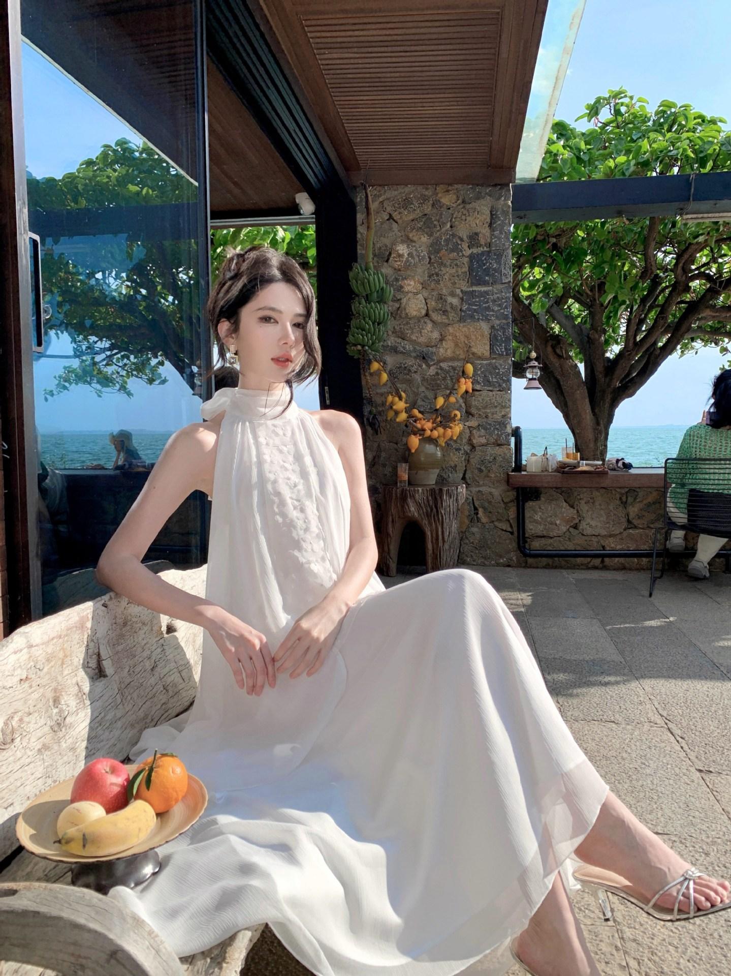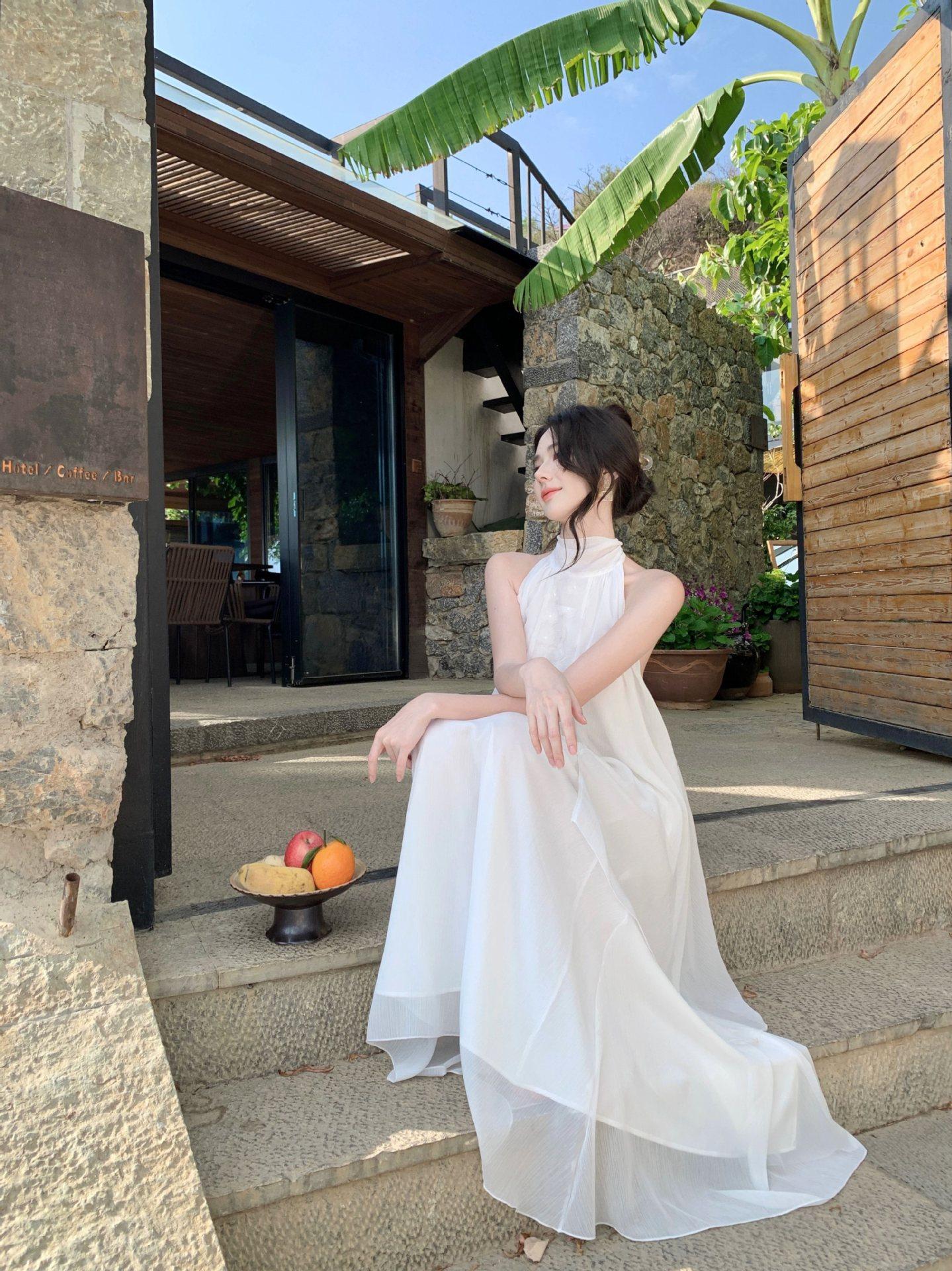 Conjunto de Verano Estilo Resort Costero, Top Halter Blanco Único y Hermoso, Falda Línea A, Conjunto de Dos Piezas para Mujer