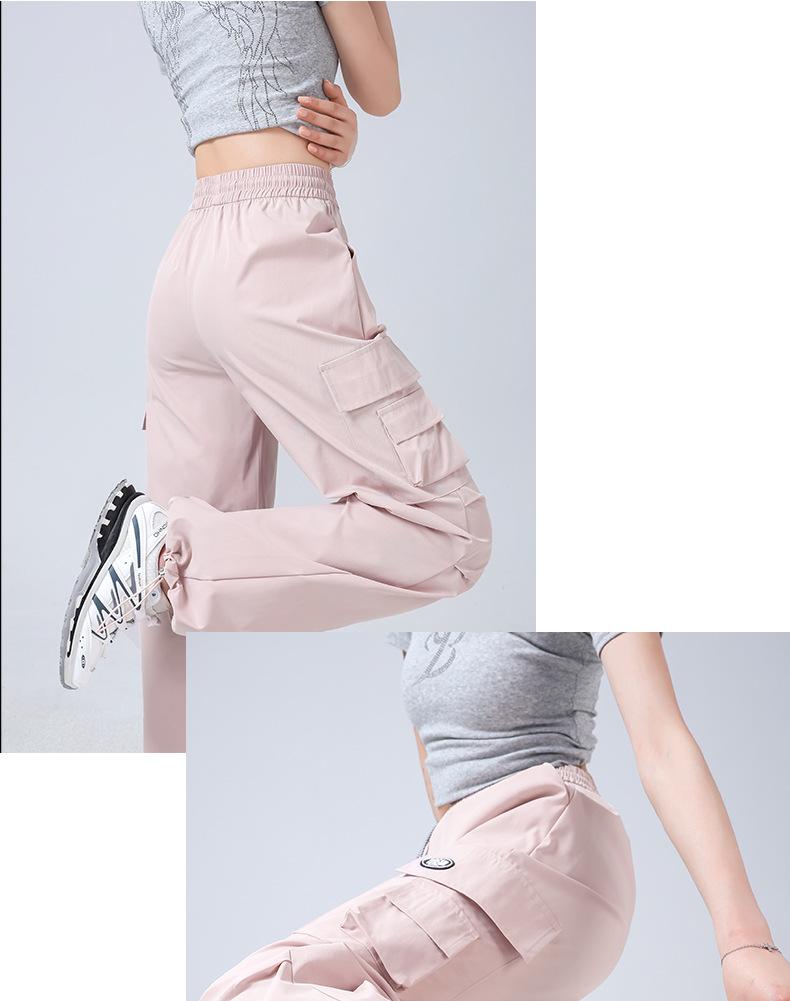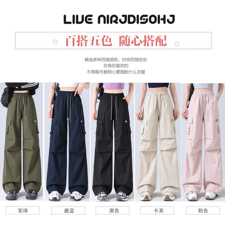 Overoles Impermeables para Mujer Primavera y Otoño Americanos Holgados Multibolsillos Estilo Casual Cintura Alta Montañismo al Aire Libre Secado Rápido Pantalones Deportivos de Pierna Ancha