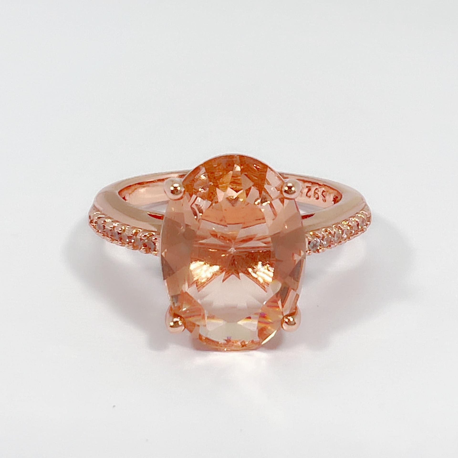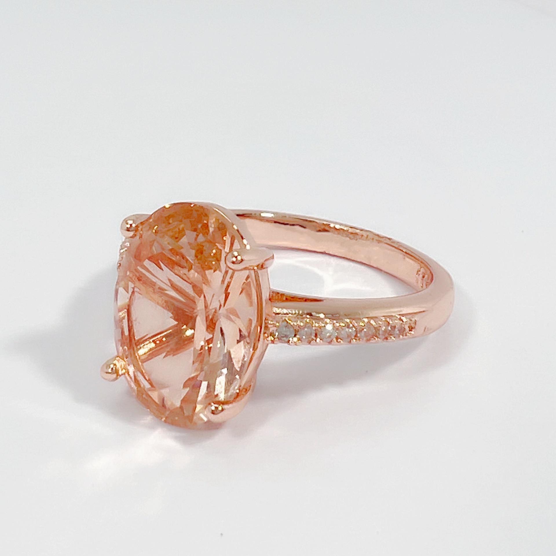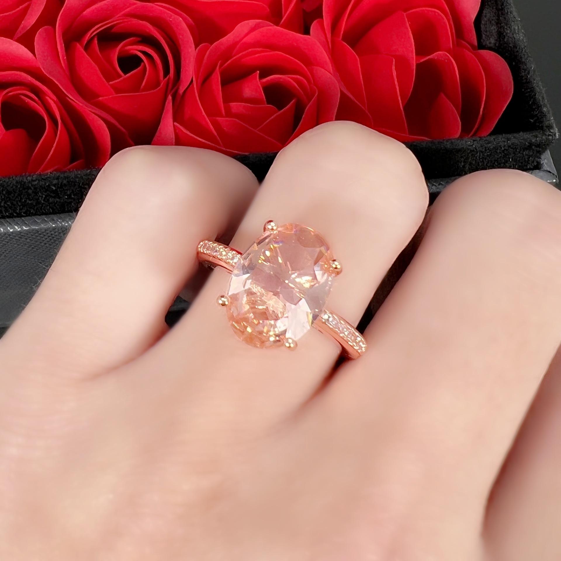 Venta caliente anillo simple de diamante artificial piedra natural morganita temperamento popular oro 18K color diamante rosa anaranjado anillo tesoro