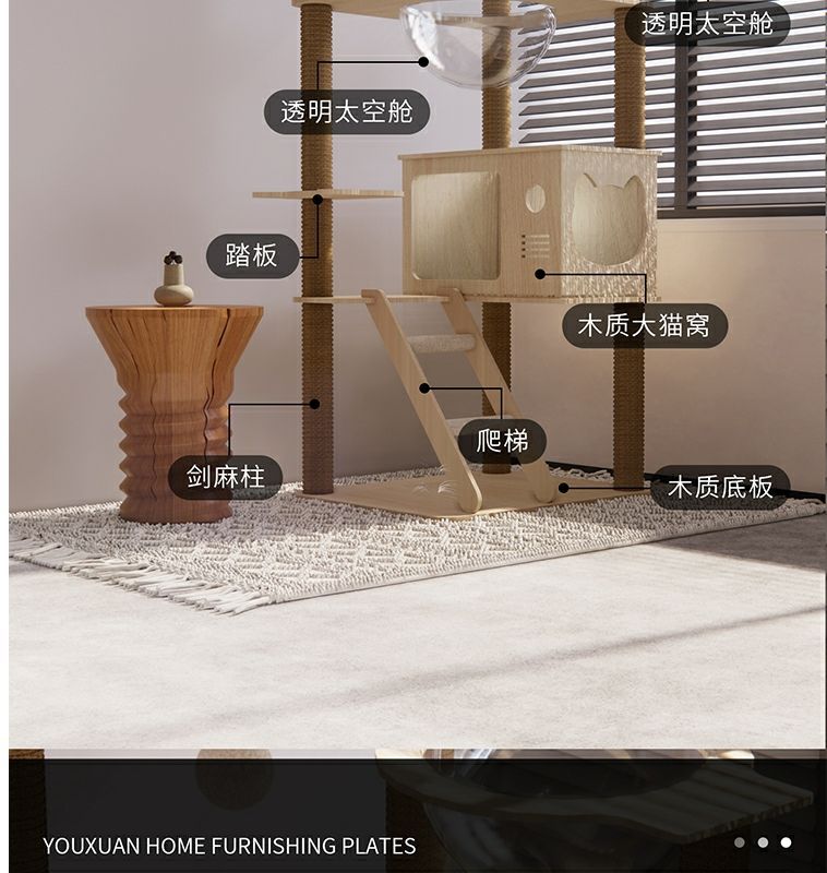 Marco para Gatos Trepadores, Nido para Gatos, Árbol para Gatos, Cápsula Espacial Multicapa de Madera Sólida de una Pieza, Plataforma para Saltar Gatos, Estante para Gatos, Juguete de Sisal, Suministros para Gatos
