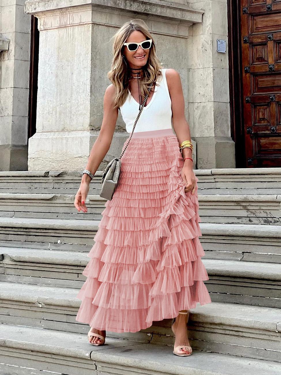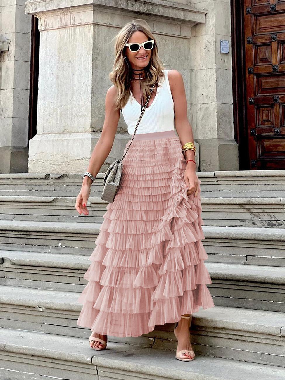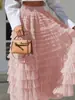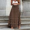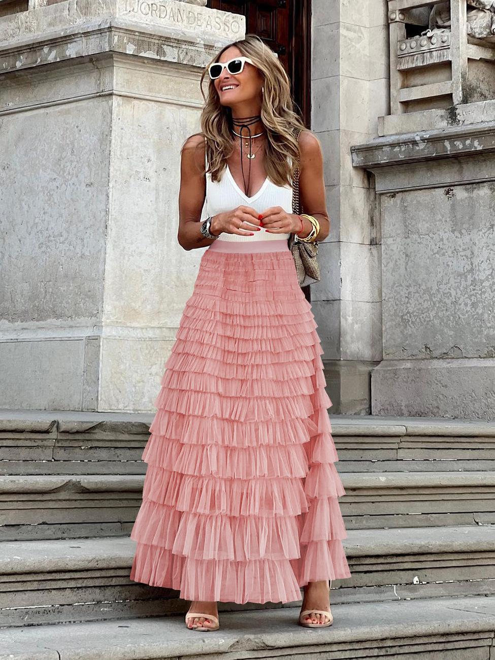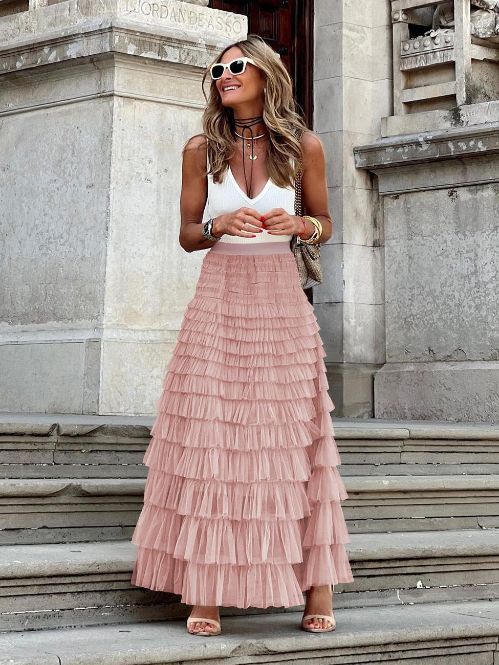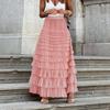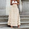 Vestido Transfronterizo Estilo Francés Nuevo para Mujer Elegante Elegante Color Sólido Cintura Alta Falda de Pastel de Malla