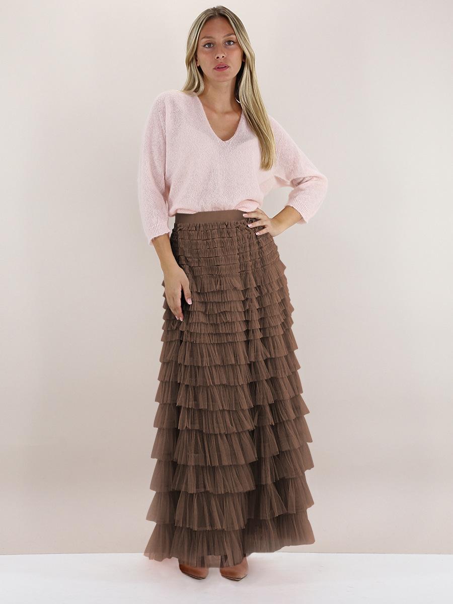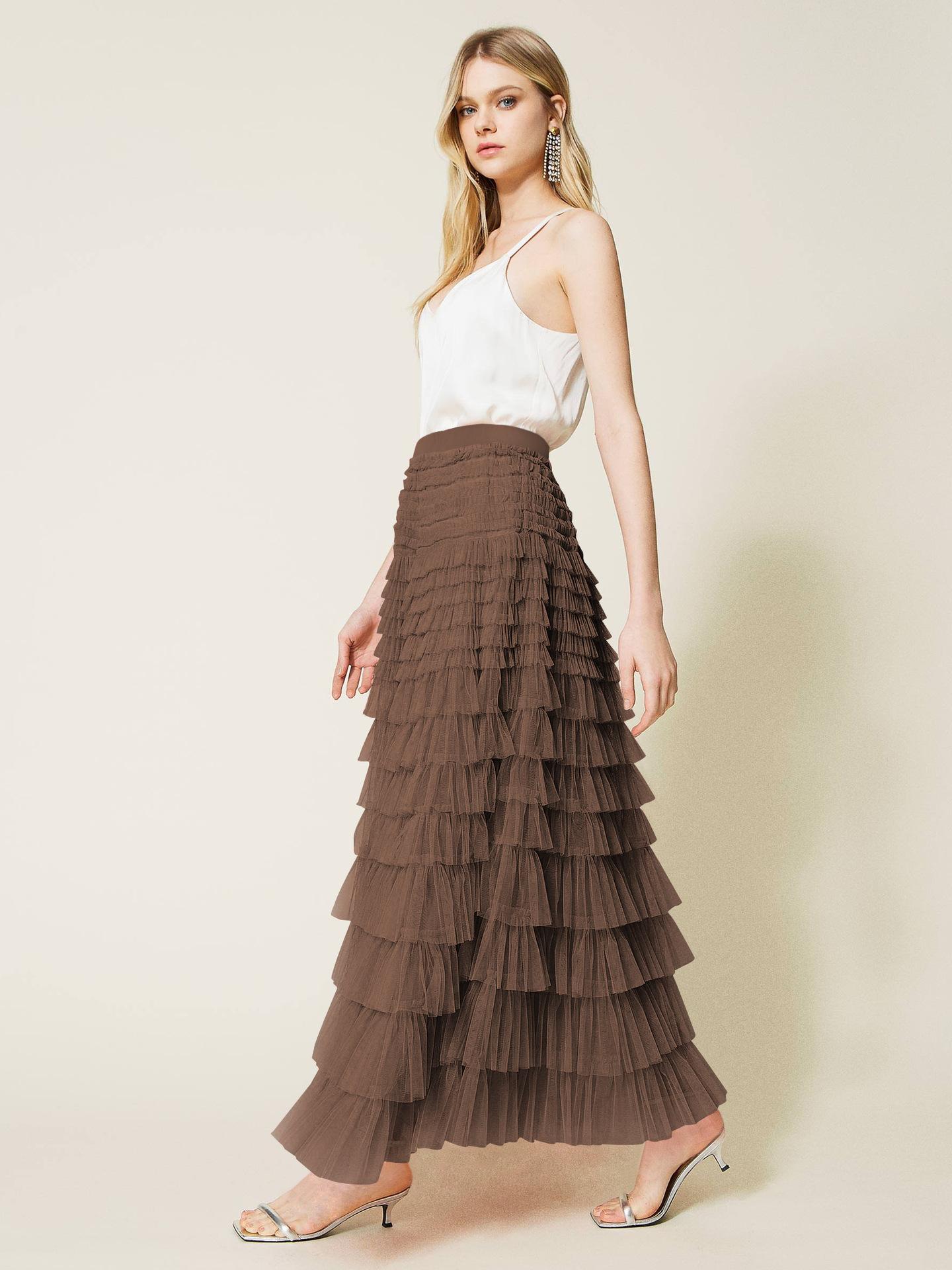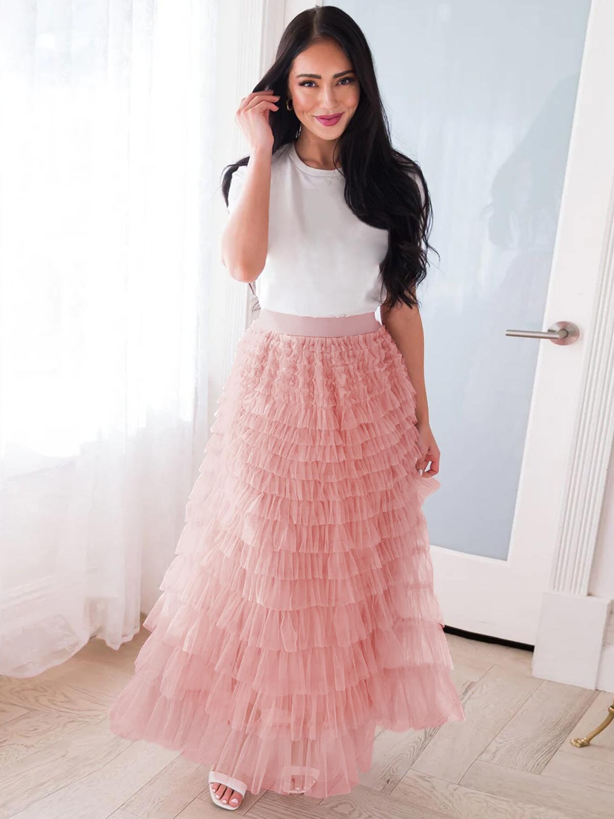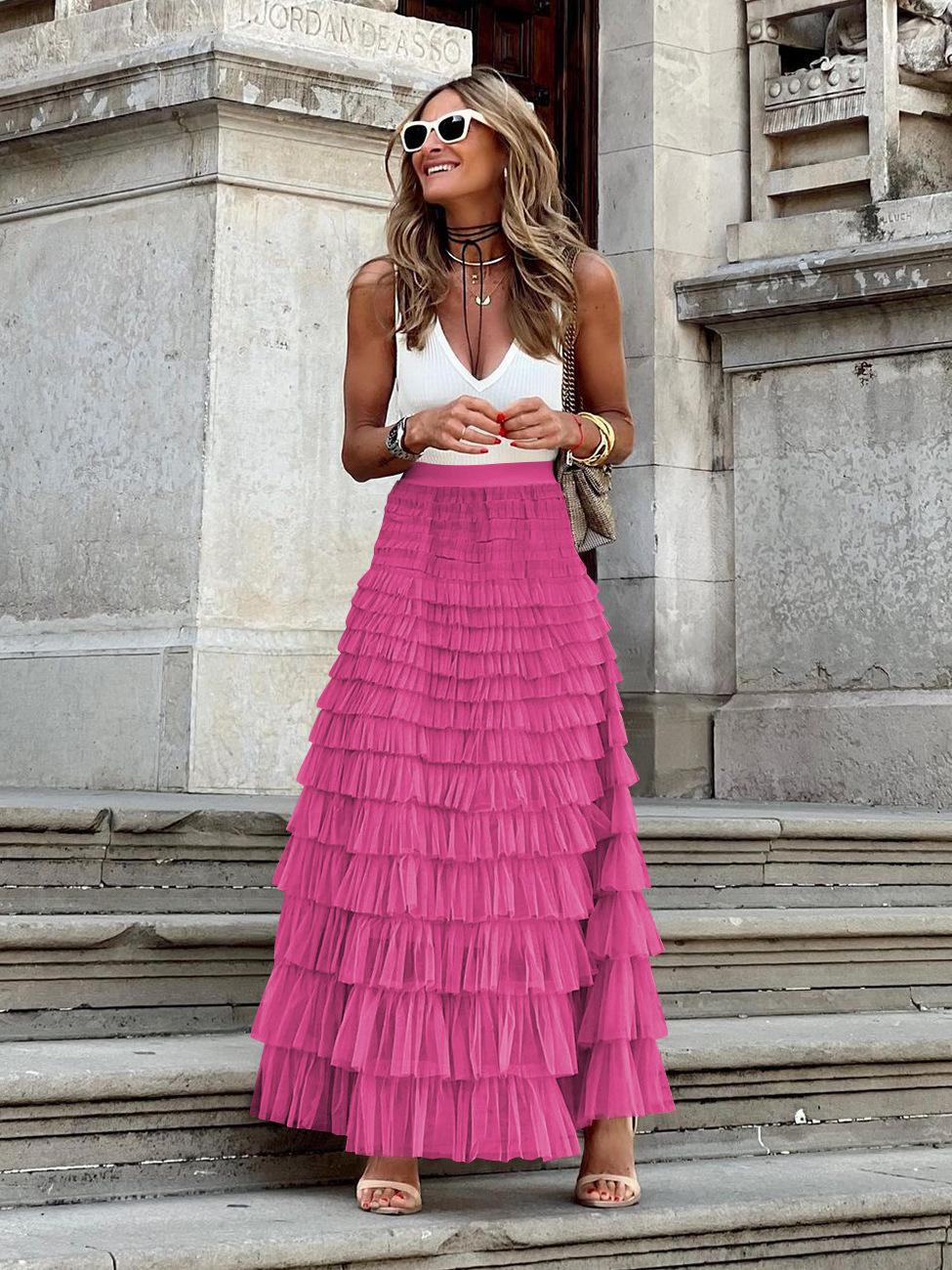 Vestido Transfronterizo Estilo Francés Nuevo para Mujer Elegante Elegante Color Sólido Cintura Alta Falda de Pastel de Malla