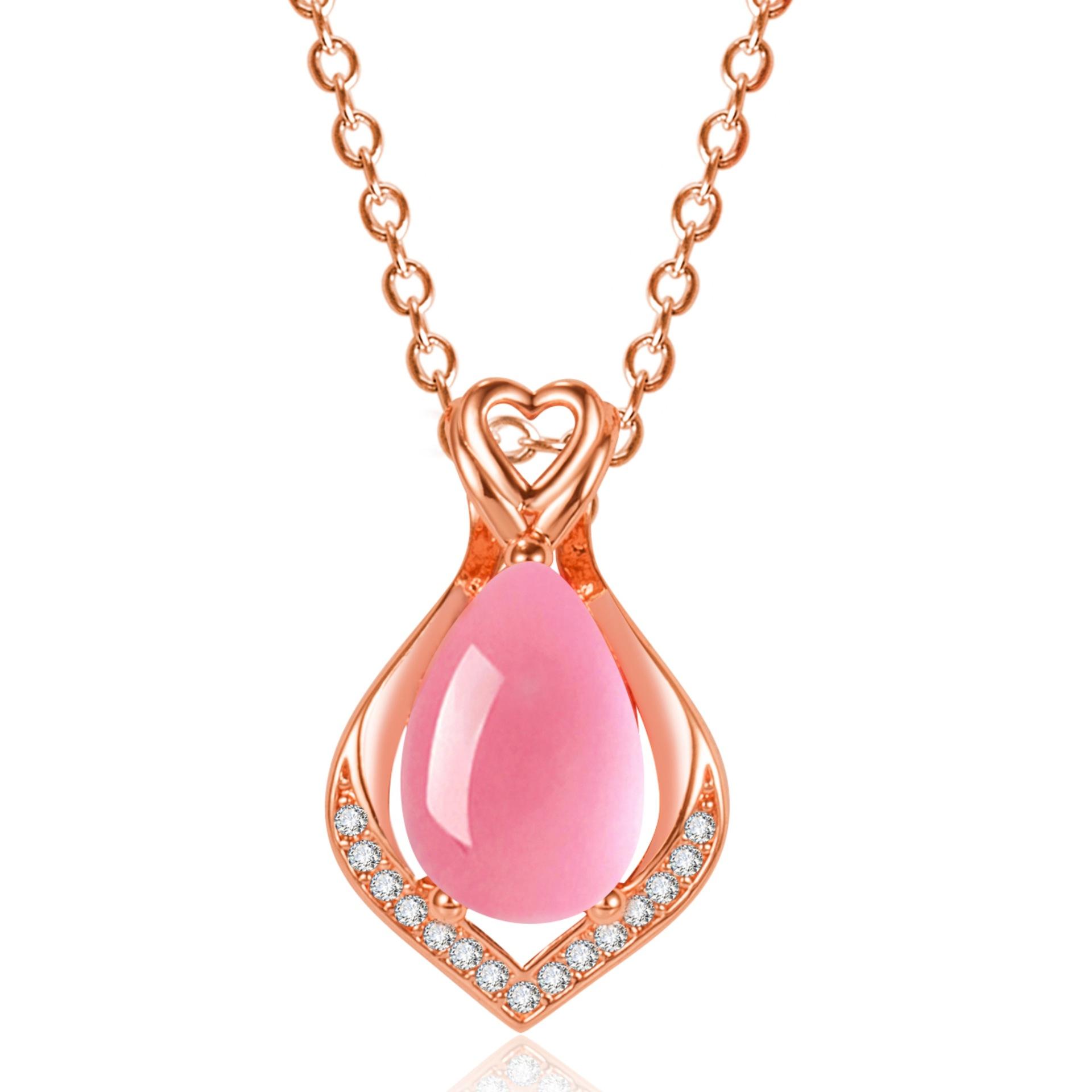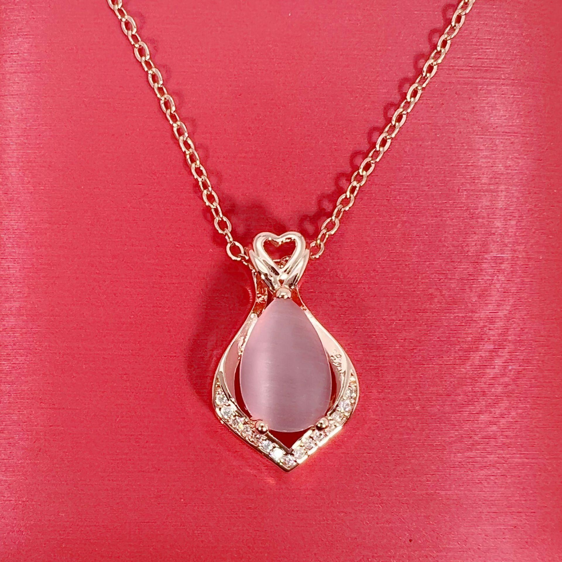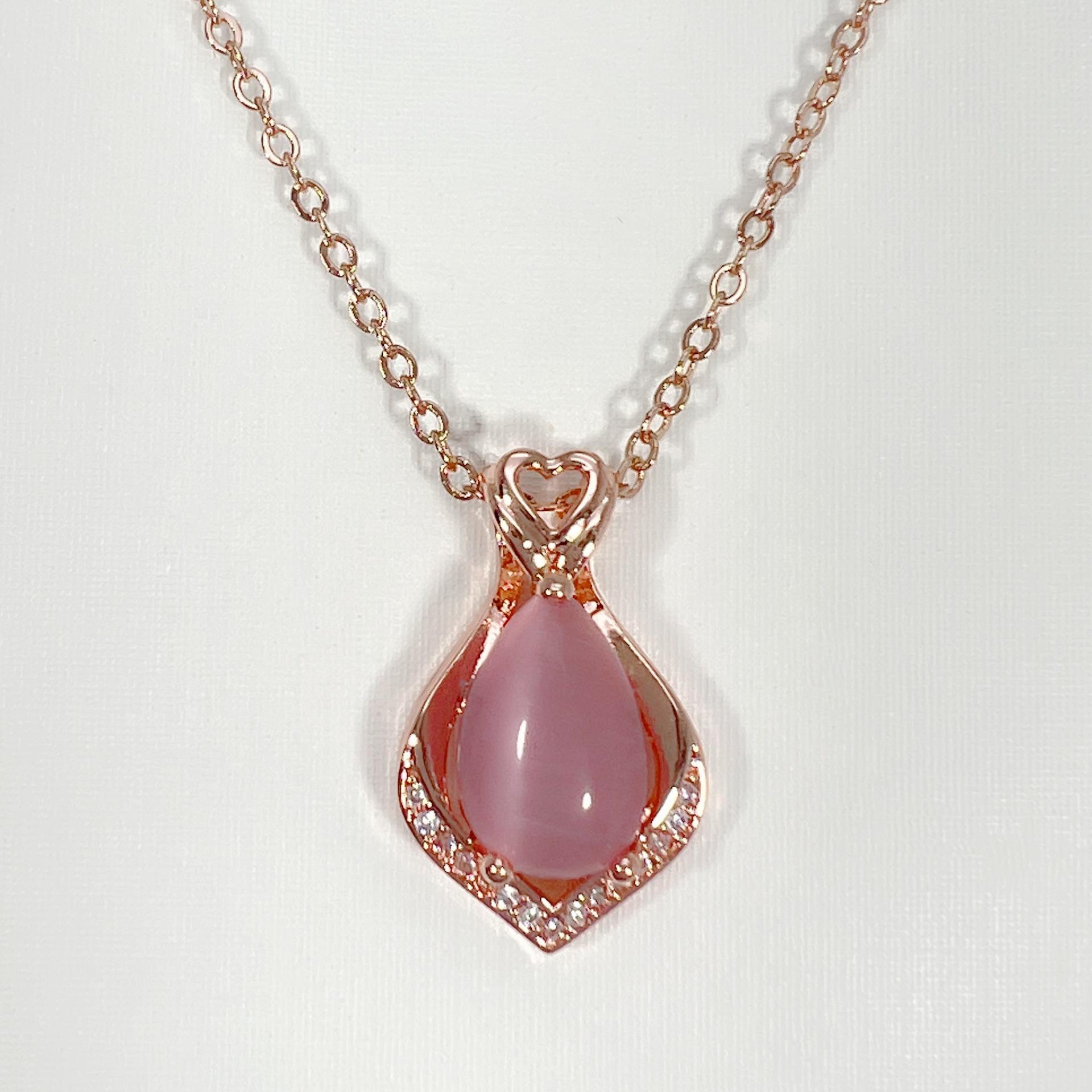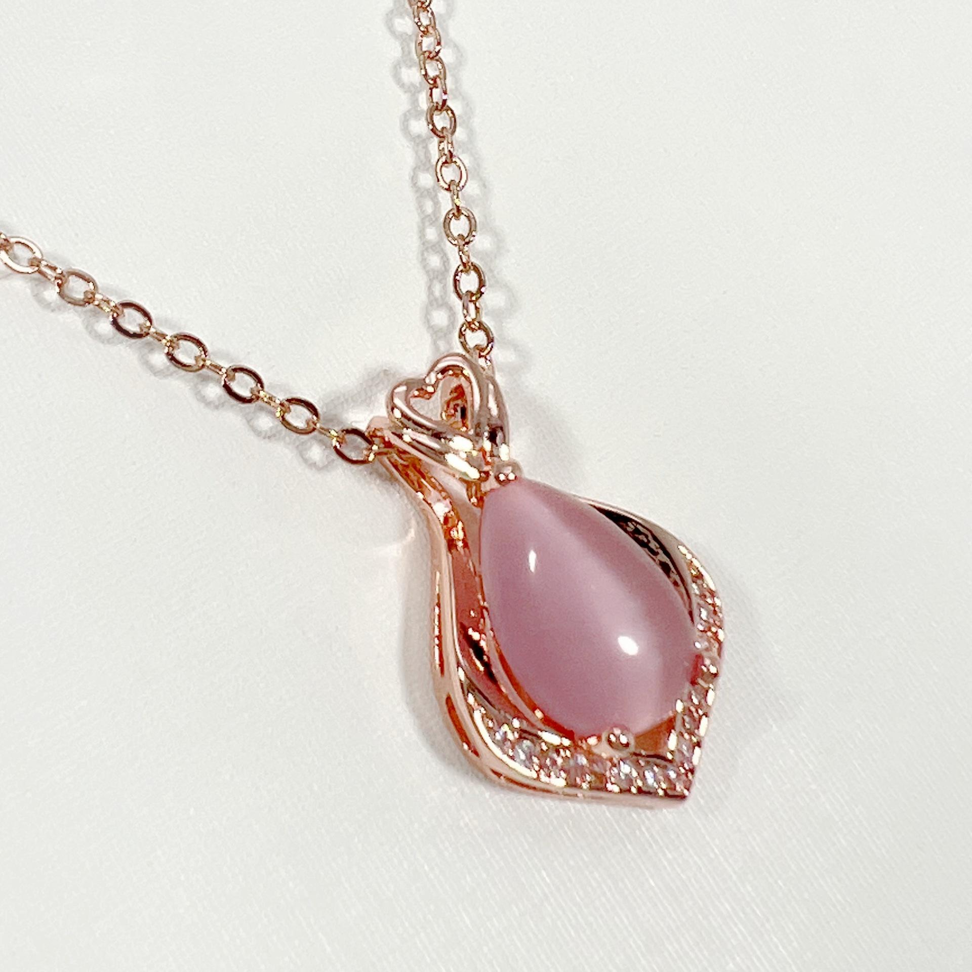 Colgante de cristal rosa con forma de corazón y gota de moda, cadena de clavícula, temperamento, diamante en forma de pera, hibisco, piedra, corazón hueco.
