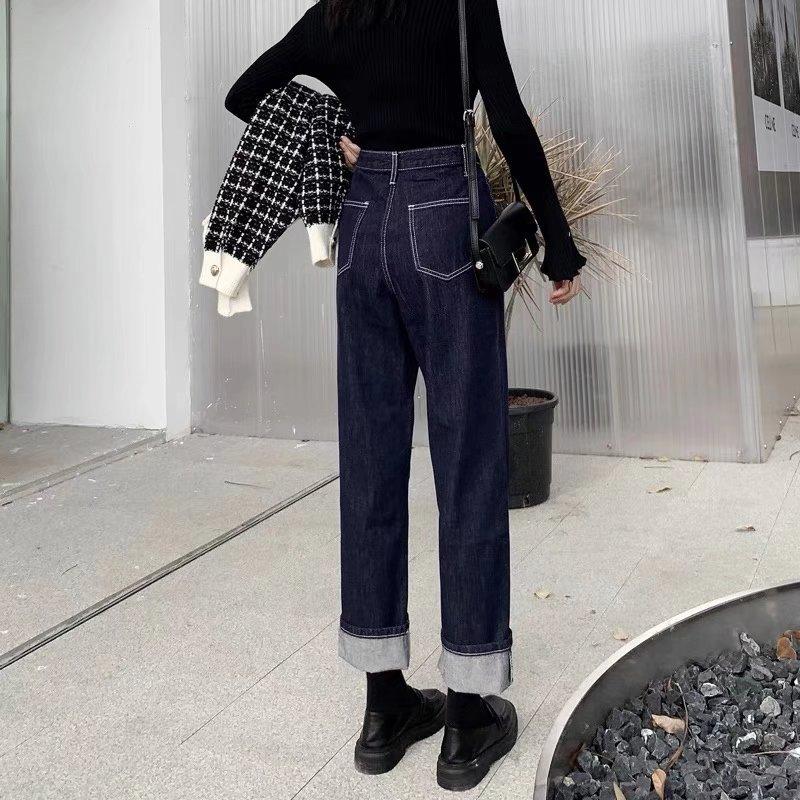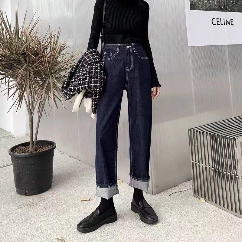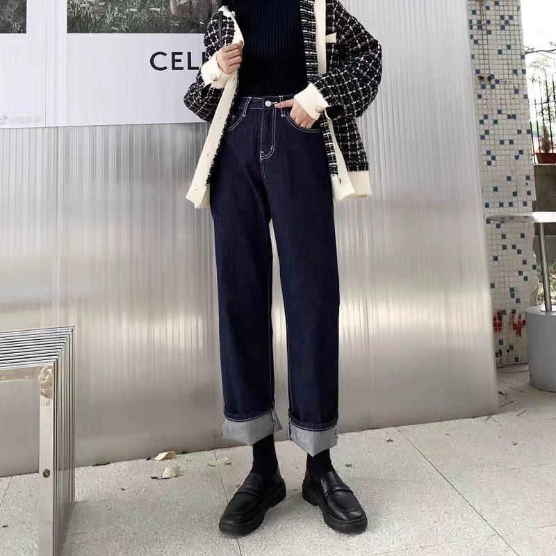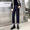 Pantalones rectos cortos casuales de moda holgados adelgazantes de cintura alta para mujer de primavera y otoño