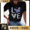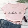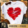 Nueva Camiseta de San Valentín Nuevo AMOR Impresión de Amor Camiseta de Comercio Exterior Europea y Americana Cuello Redondo Manga Corta para Mujer Camiseta de Comercio Exterior