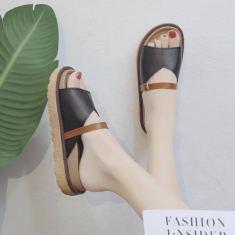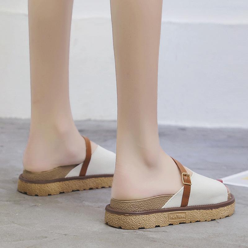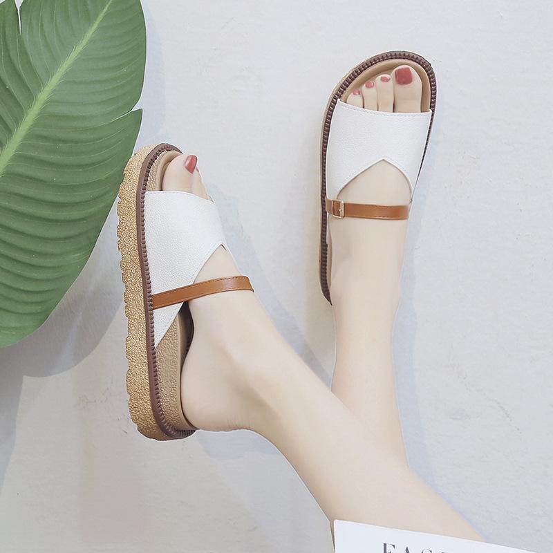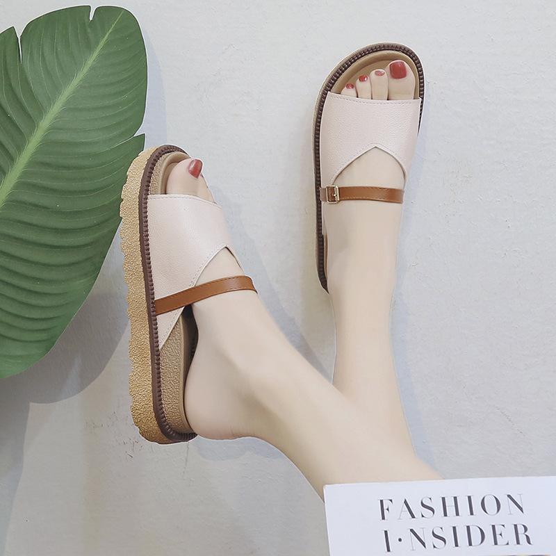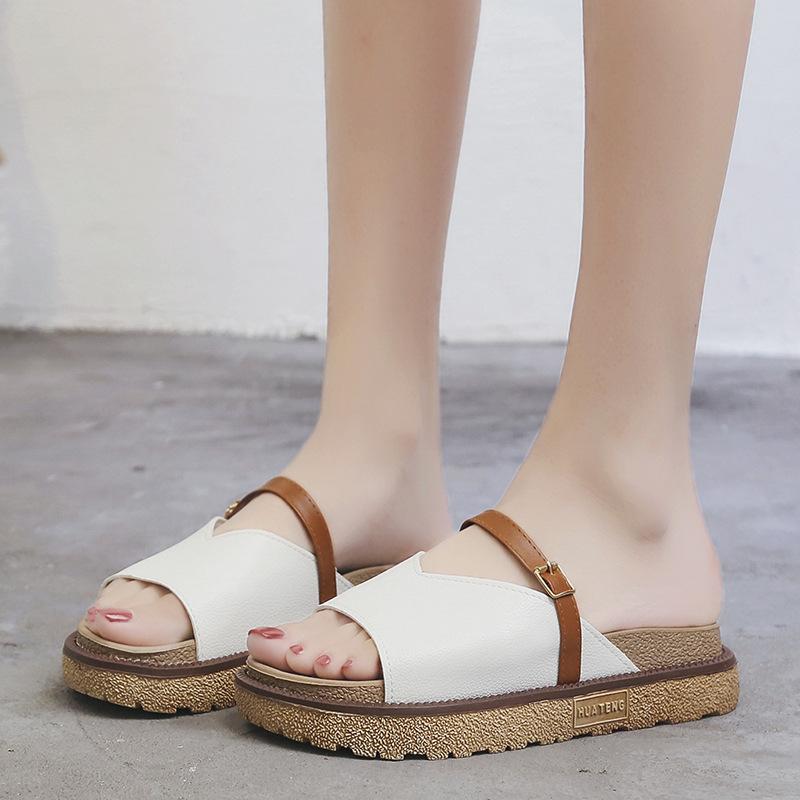 Pantuflas de una tira para mujer 2025 Verano Nuevo Suela blanda Exportación Retro Sandalias para mujer Pantuflas Plataforma Pantuflas de playa para mujer