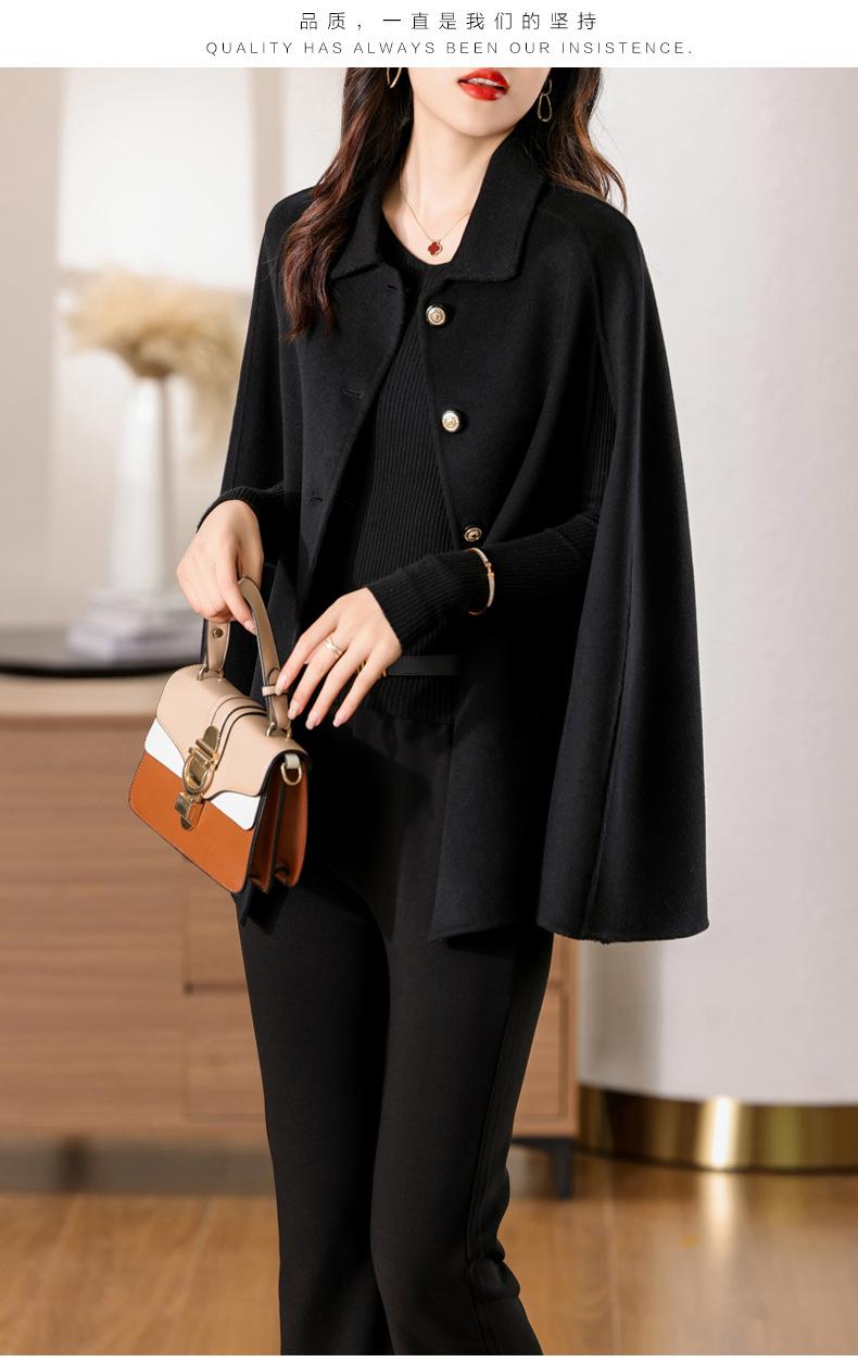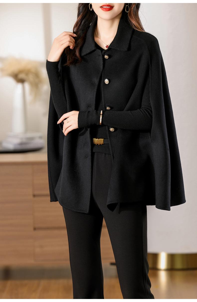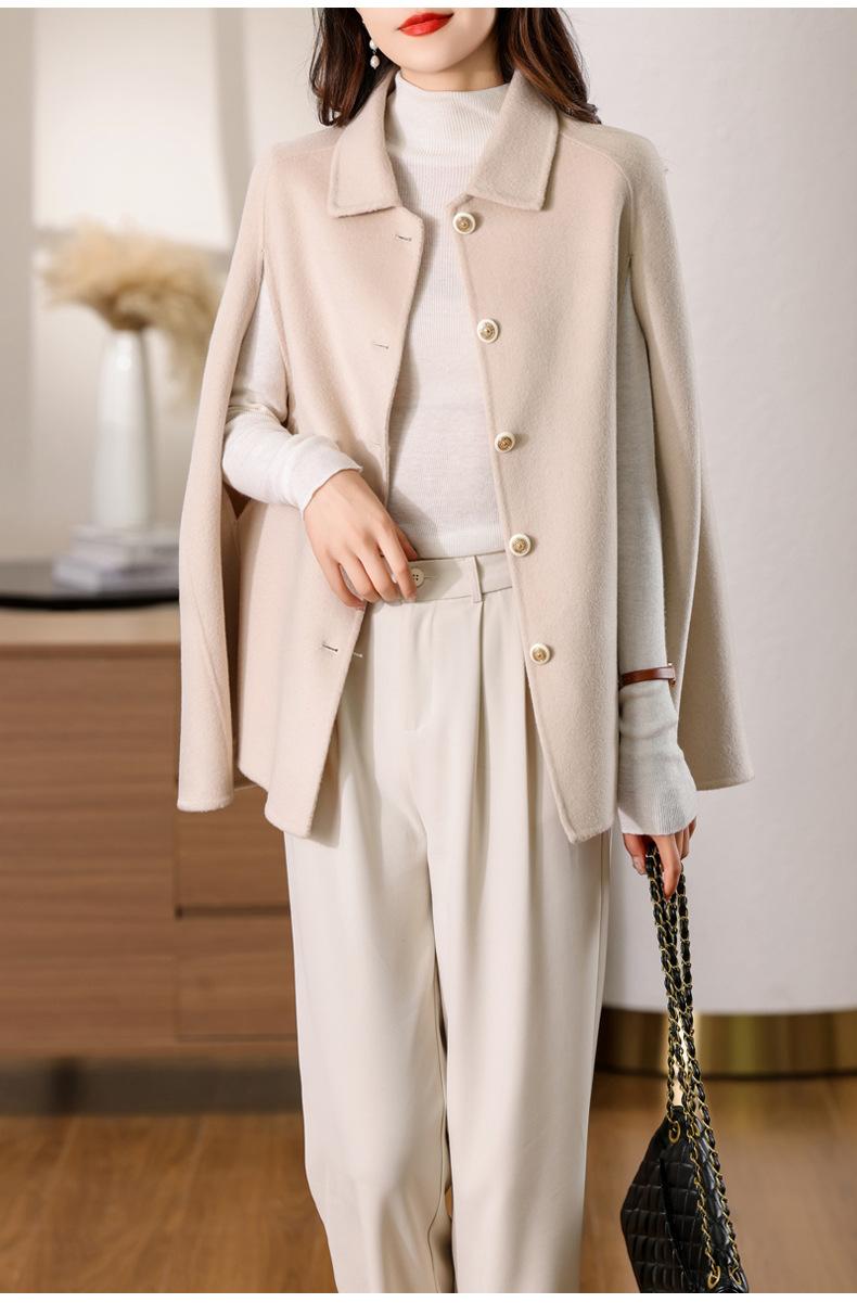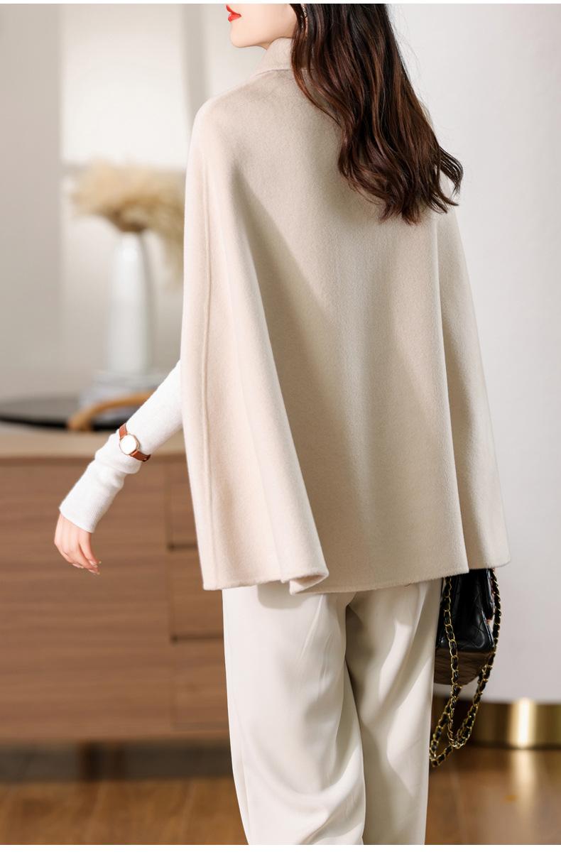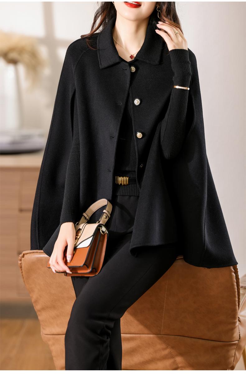 Abrigo de Lana Grande Tipo Capa de Doble Cara para Mujer de Largo Medio Otoño e Invierno 2024 Abrigo de Lana Suelto para Mujeres Pequeñas