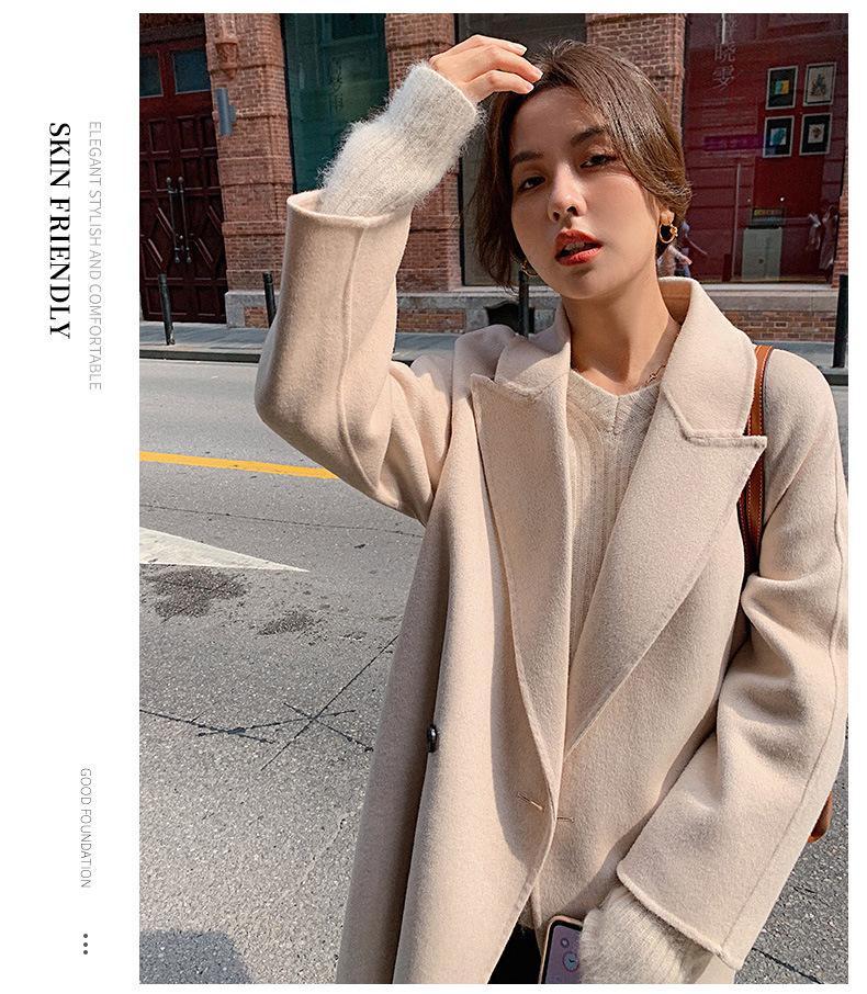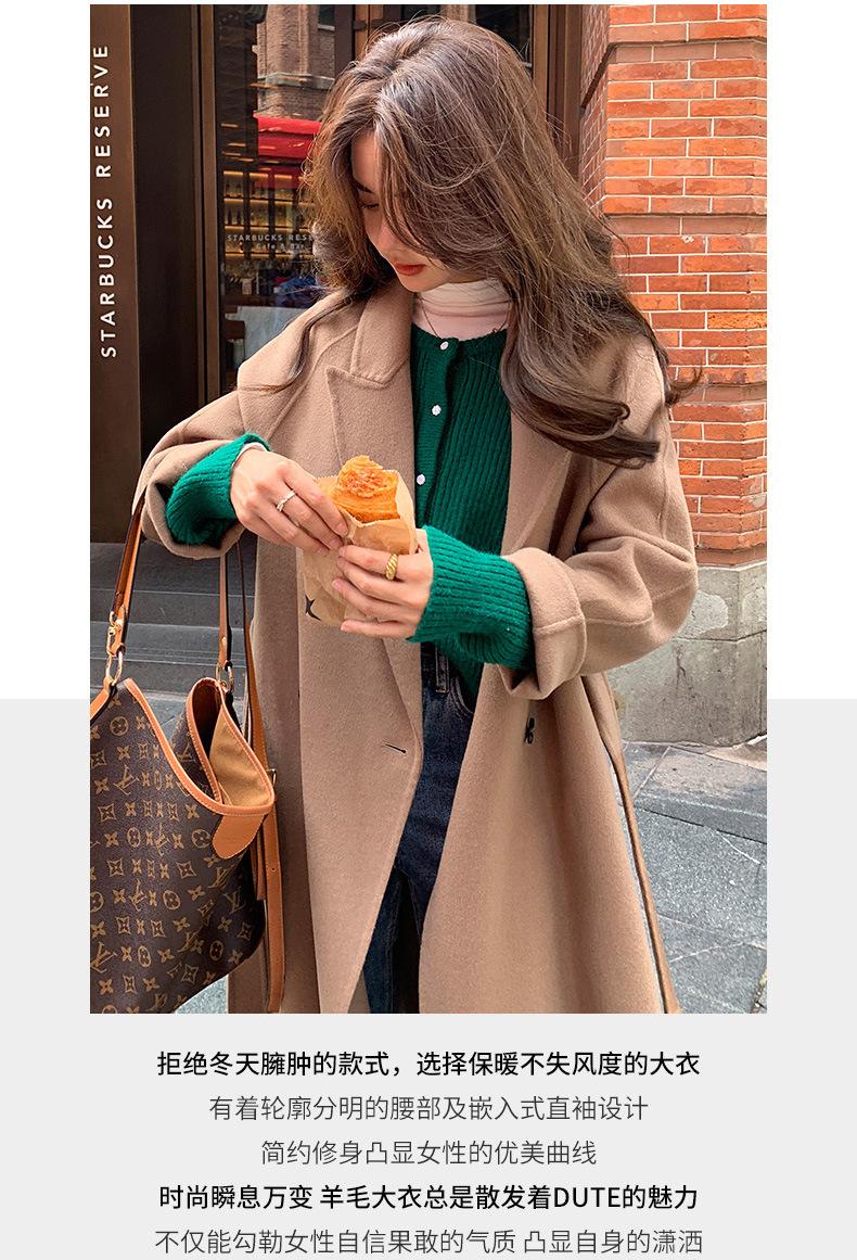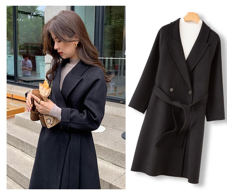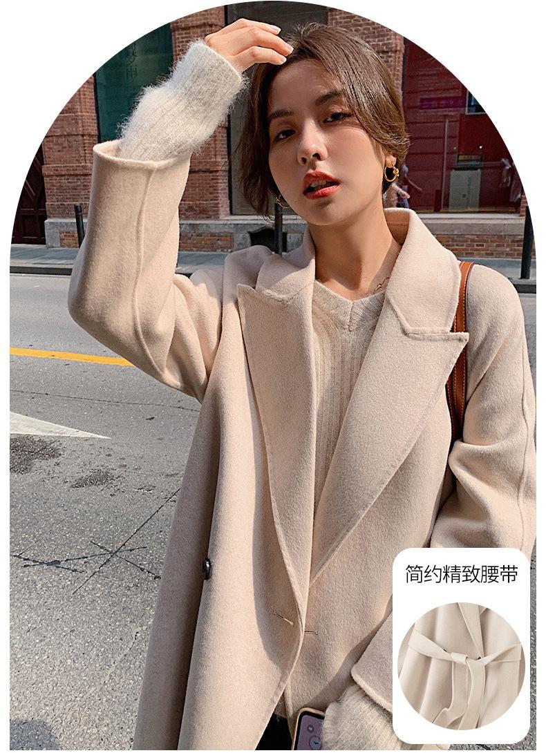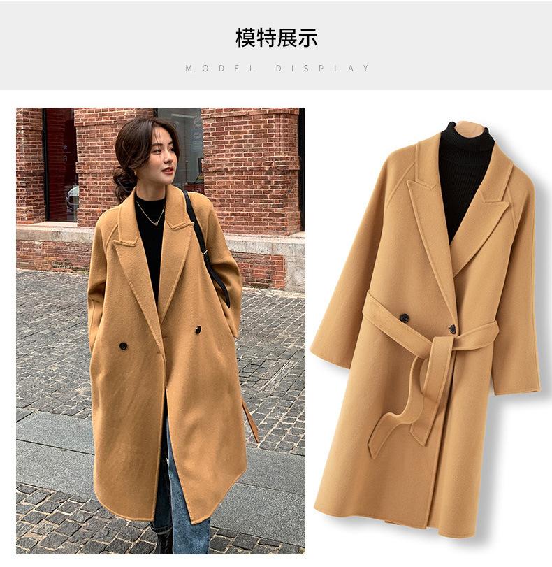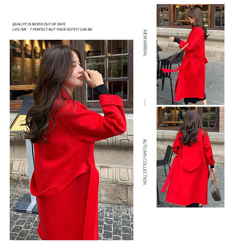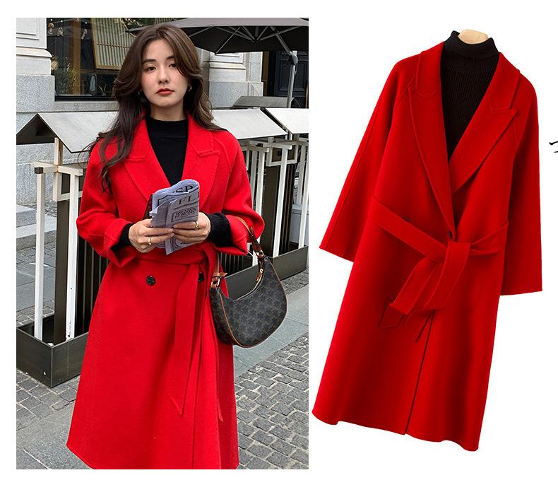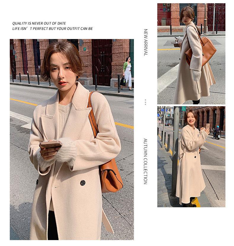 24 Otoño e Invierno Abrigo de Lana de Doble Vista de Largo Medio para Mujer con Cinturón Abrigo de Lana Estilo Coreano Cuello de Traje Abrigo Elegante Casual
