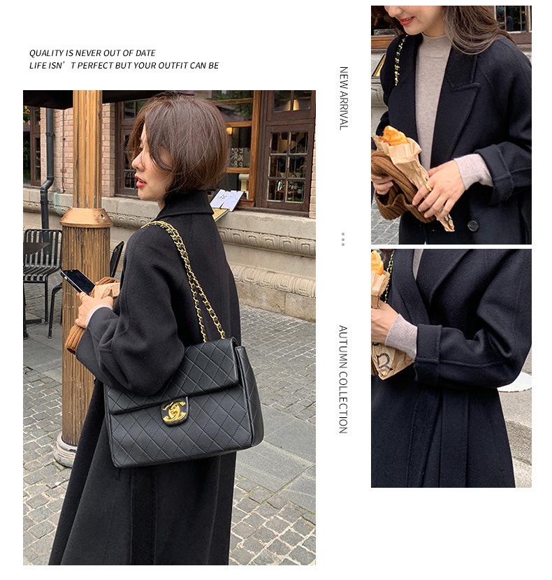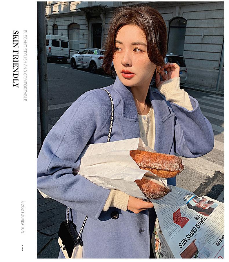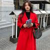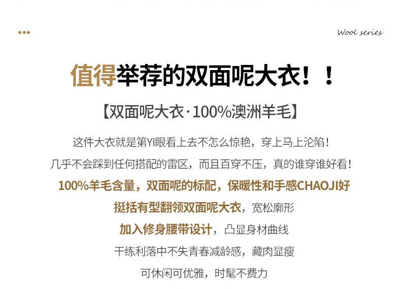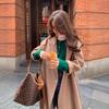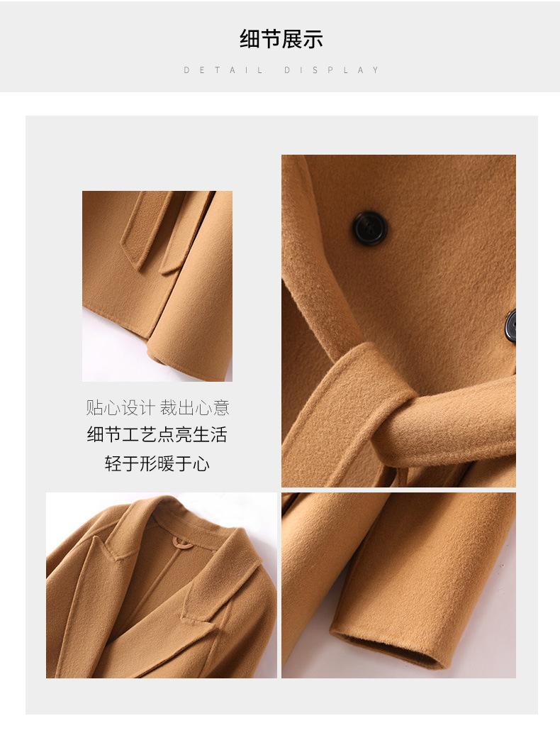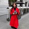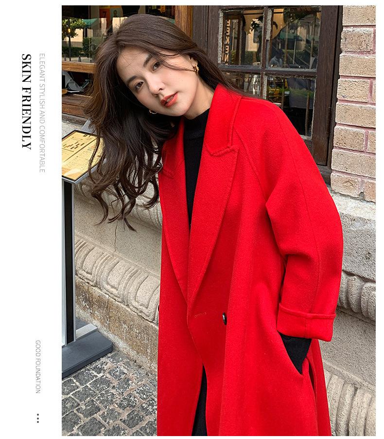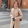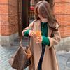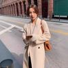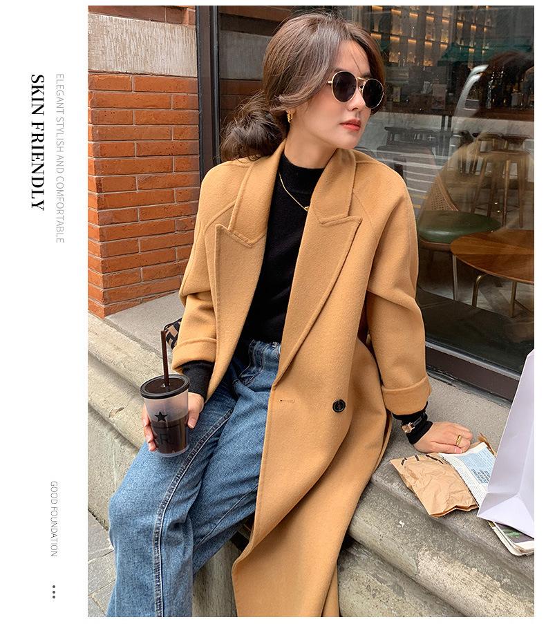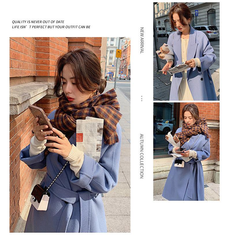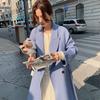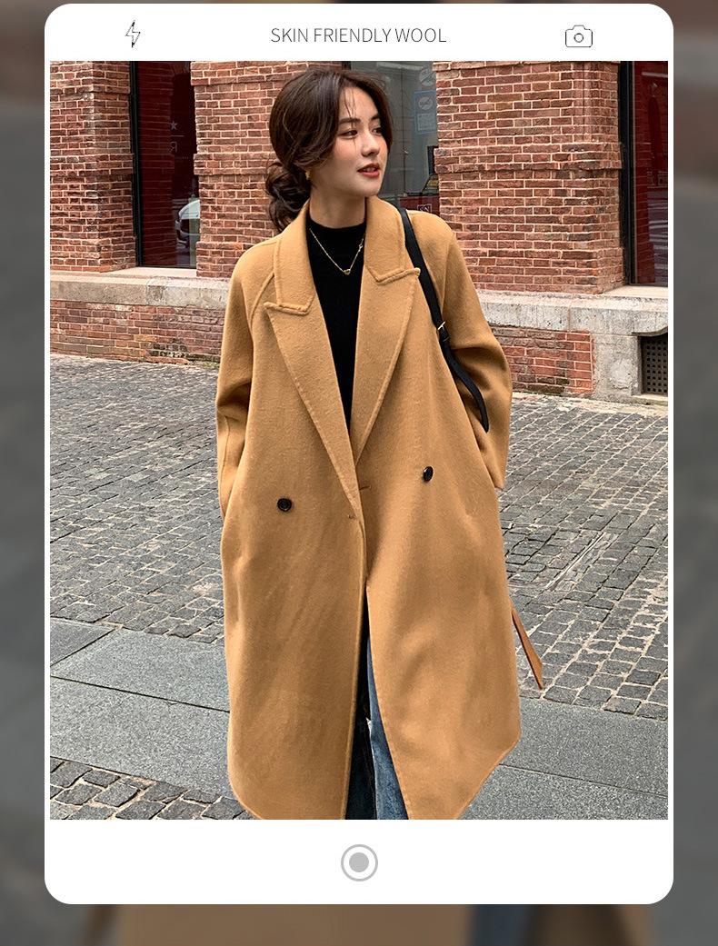 24 Otoño e Invierno Abrigo de Lana de Doble Vista de Largo Medio para Mujer con Cinturón Abrigo de Lana Estilo Coreano Cuello de Traje Abrigo Elegante Casual