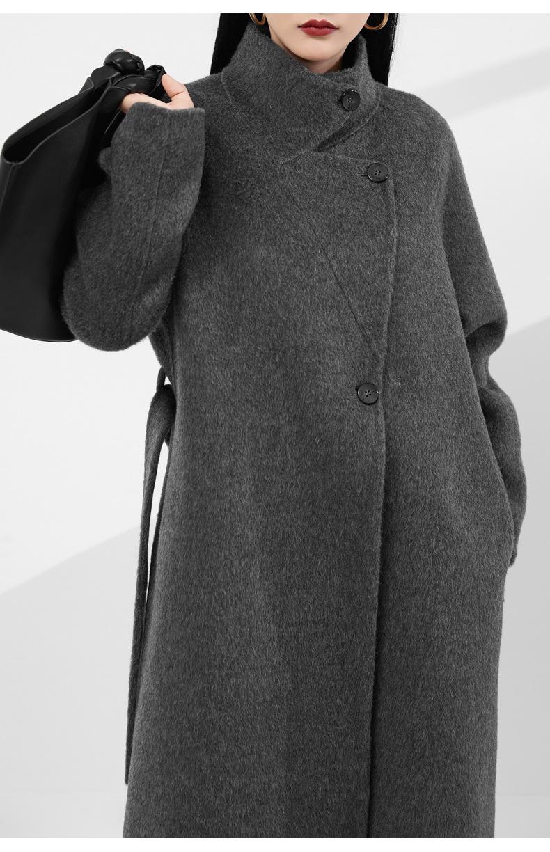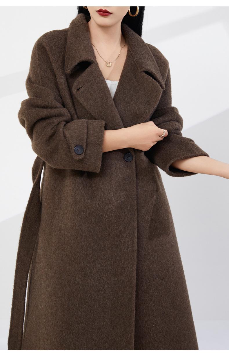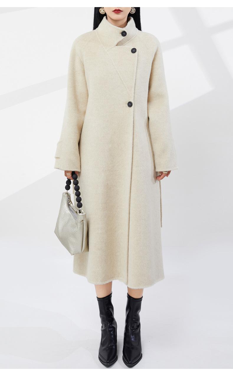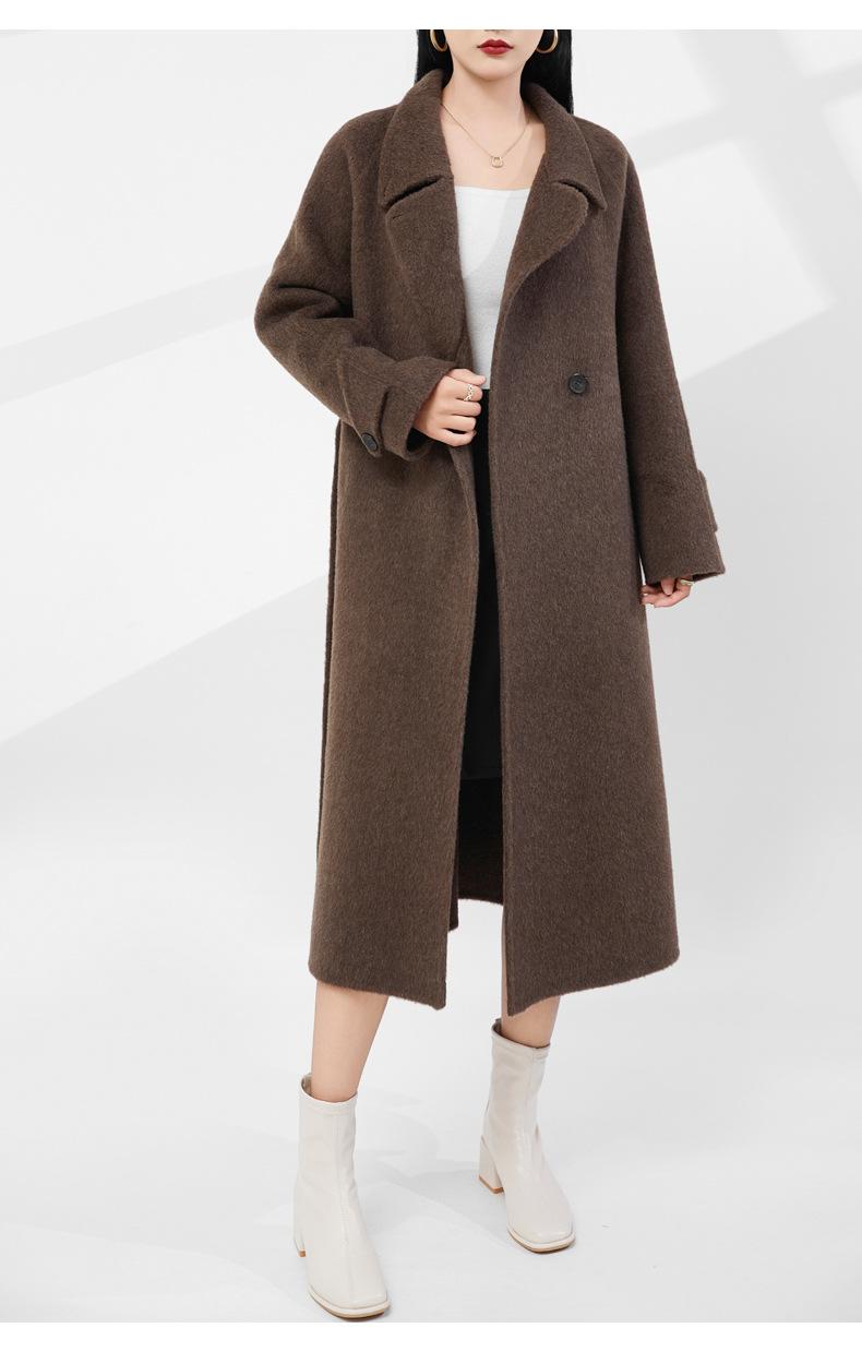 24 Otoño e Invierno Nuevo Abrigo de Lana de Doble Cara para Mujer, Moda de Alta Gama, Grueso, de Lana de Yak