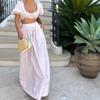 Traje Romántico Francés para Mujer 2025 Nuevo Top Corto de Cuello Cuadrado y Manga Abullonada + Falda Larga de Cintura Alta
