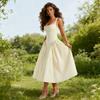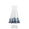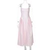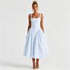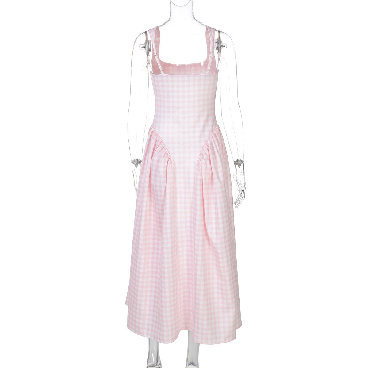 Moda Europea y Americana Nuevo Estilo Fresco Diseño de Estampado Sexy Espalda Descubierta Cuello Cuadrado Vestido de Tirantes Ropa de Mujer 2025