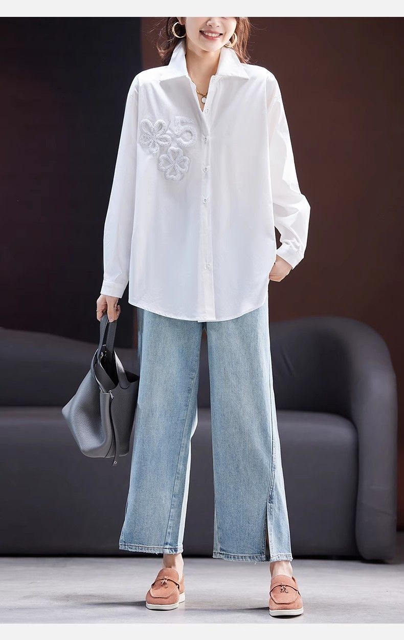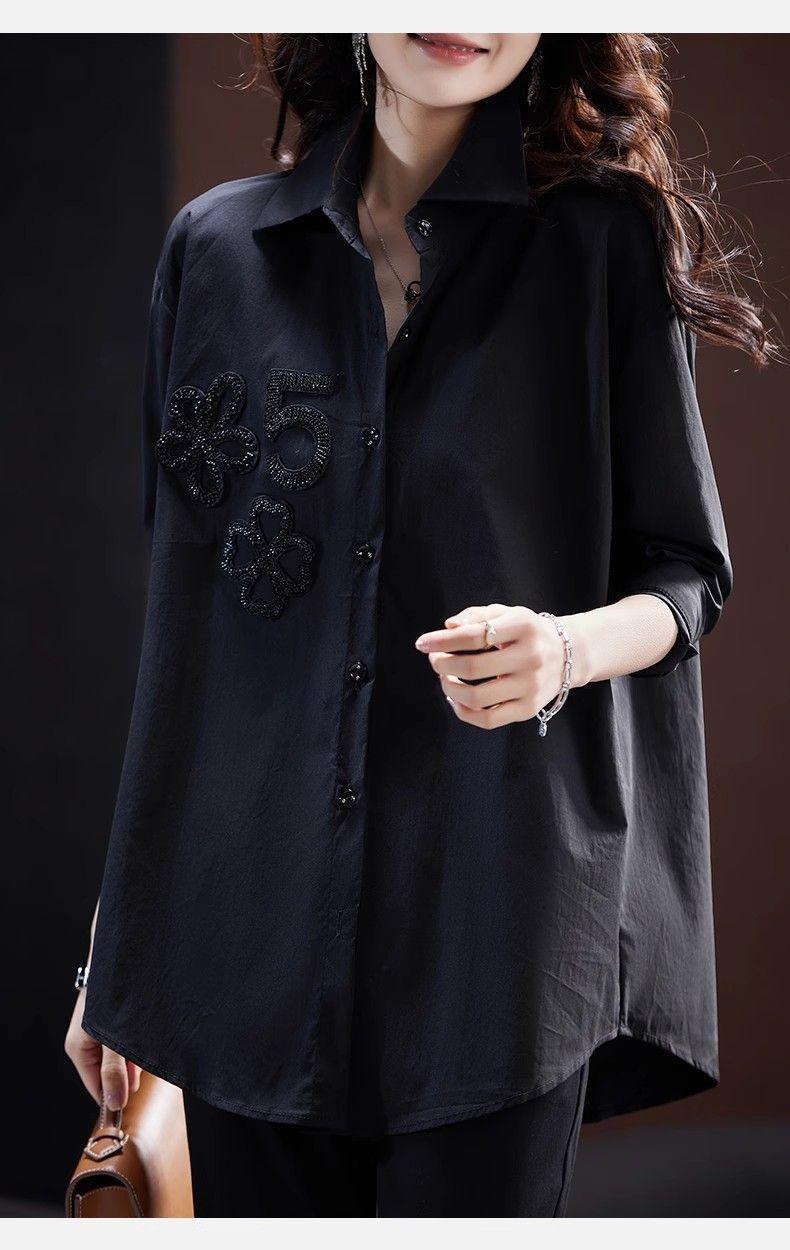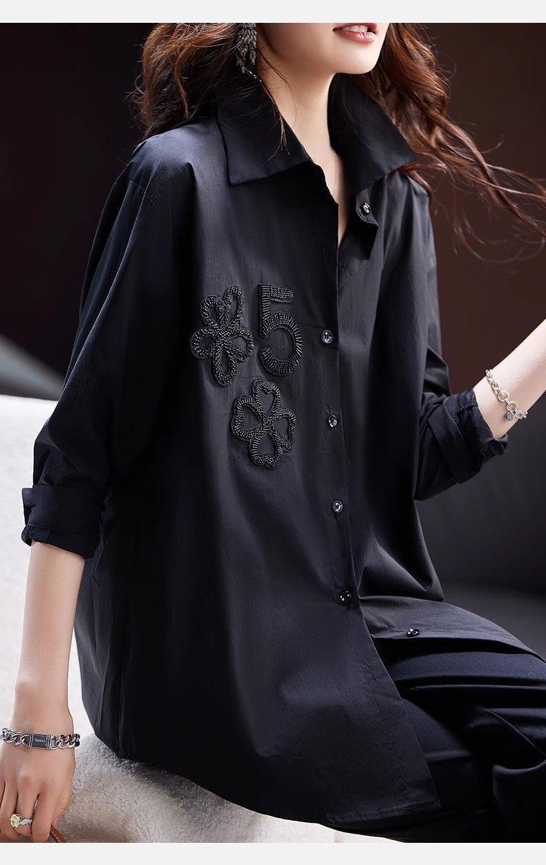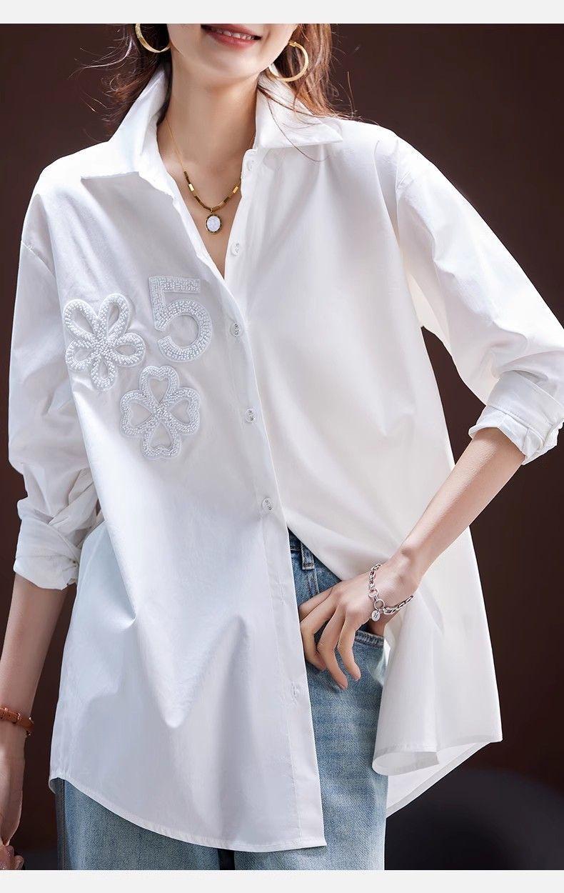 Camisa Blanca Elegante de Alta Gama con Cuentas para Mujer de Manga Larga Estilo Primavera Temprana Estación Europea Holgada y Versátil Ropa de Trabajo Top de Lujo Accesible